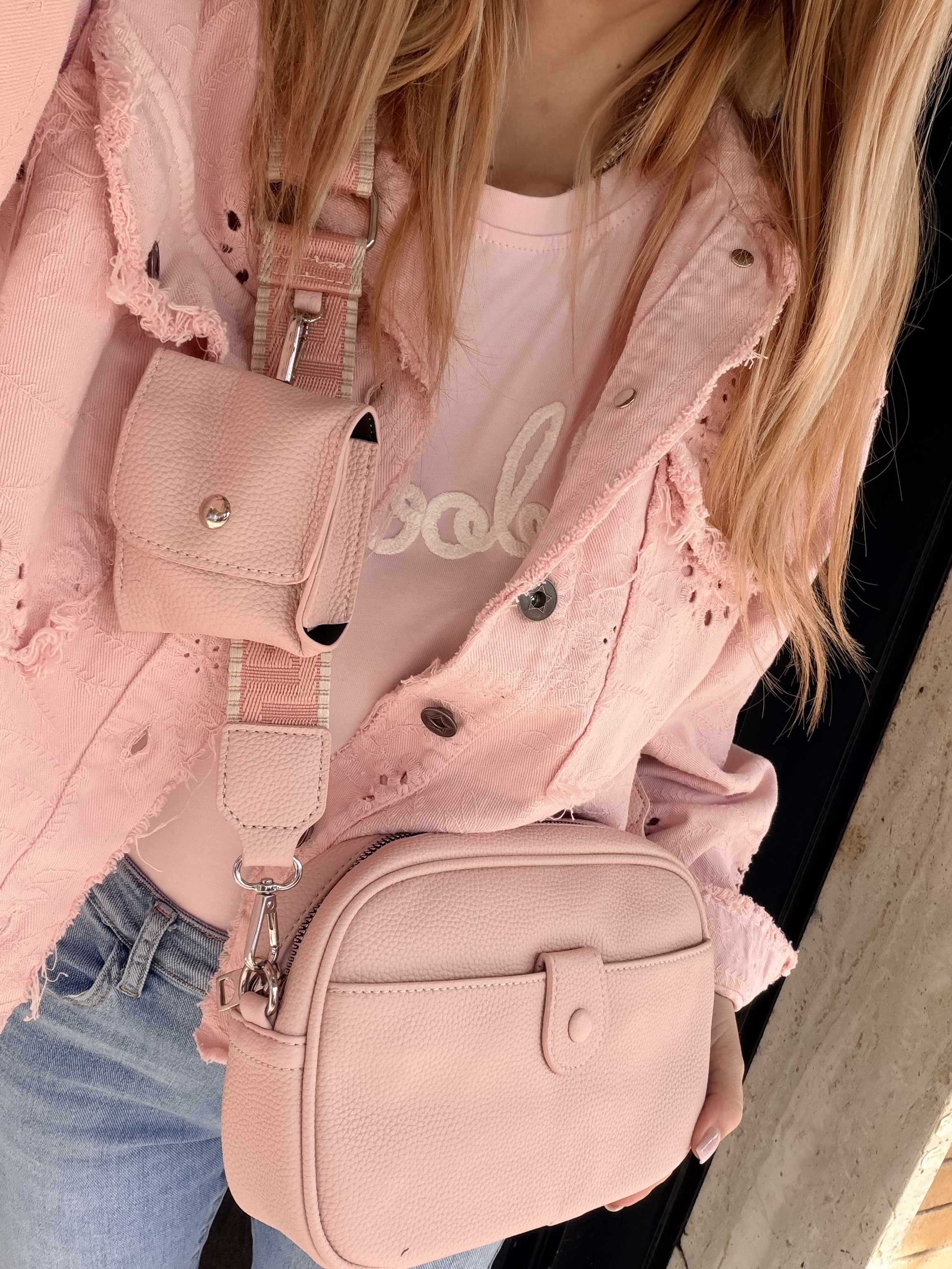 Una borsetta comodissima per tutti i giorni, con la tracolla in tessuto regolabile con agganciatura per il portamonete/ porta sacchettini ...