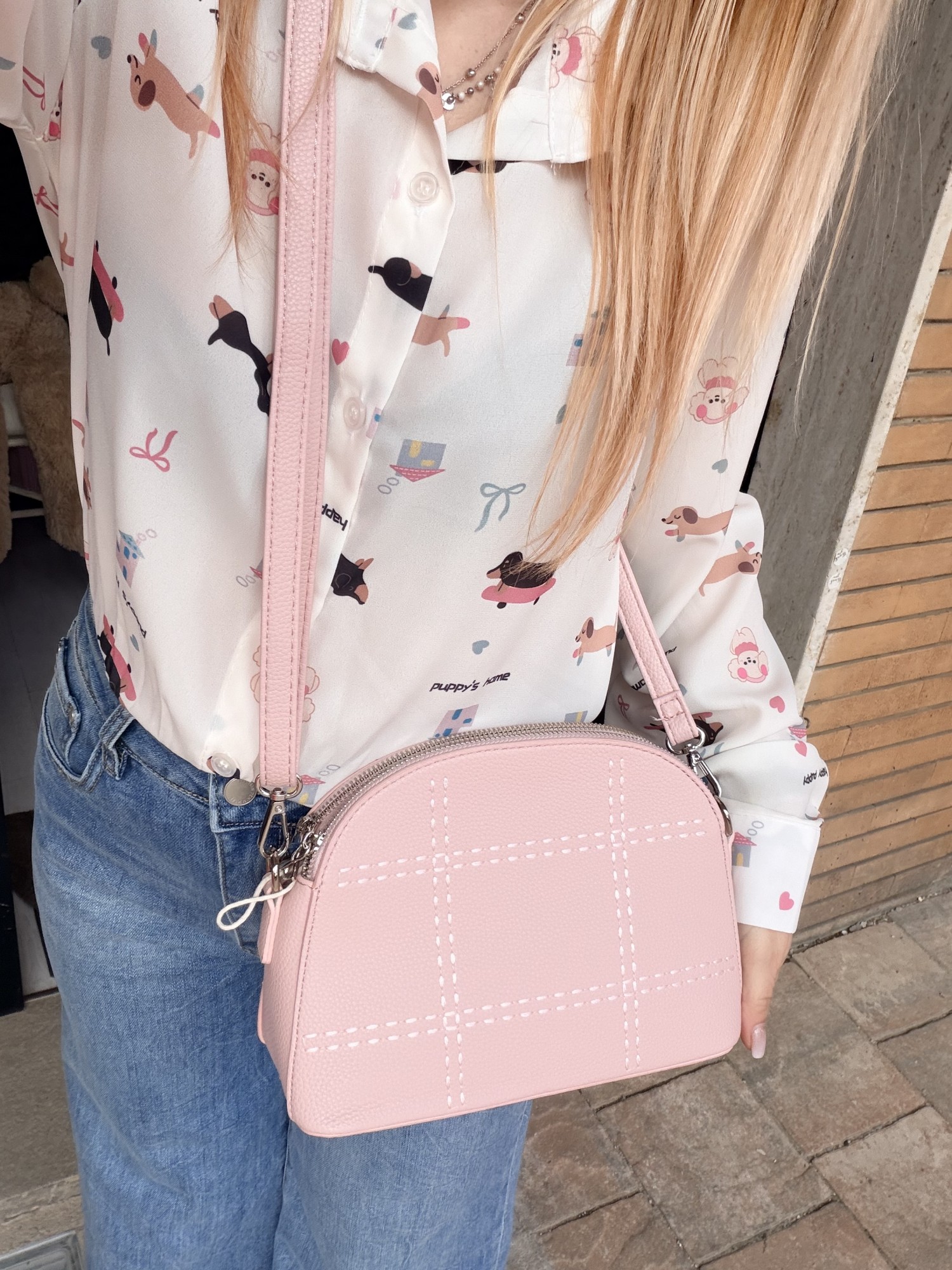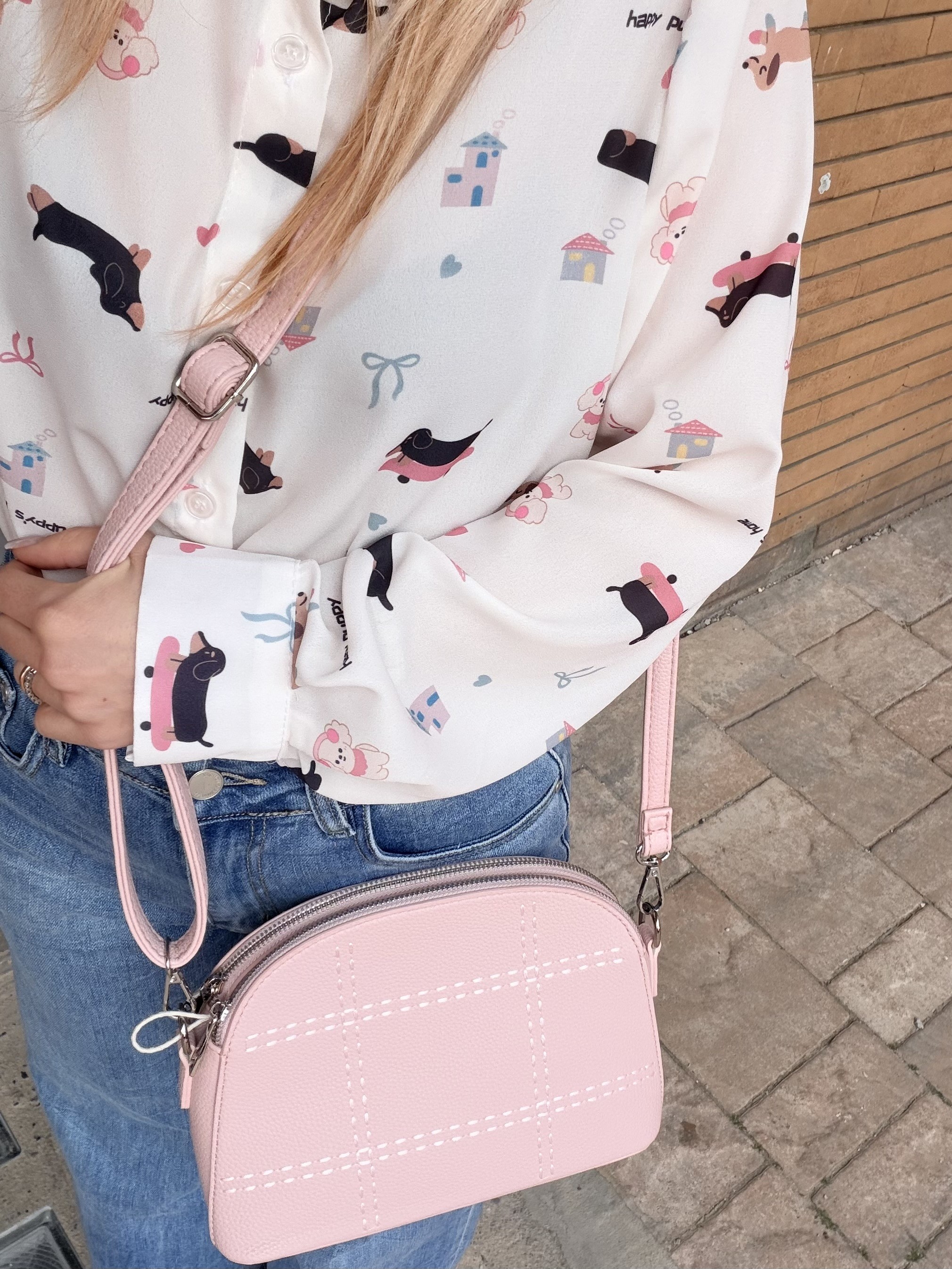 Borsetta rosa finiture con tracolla