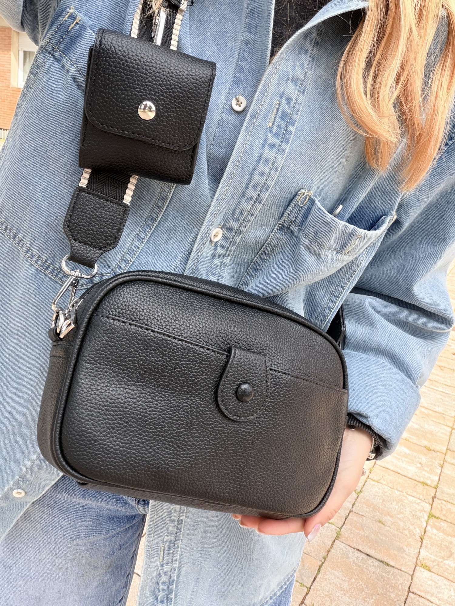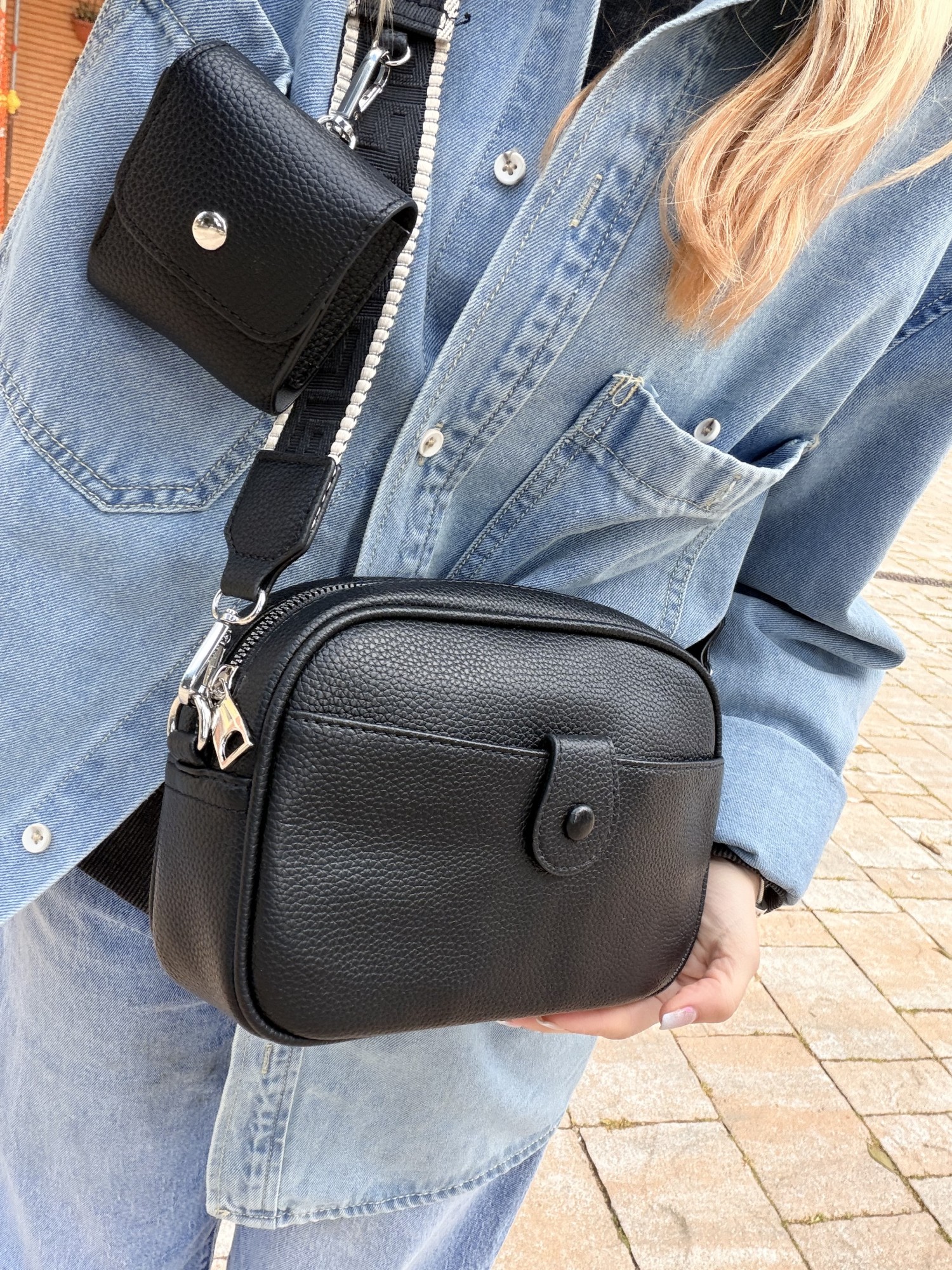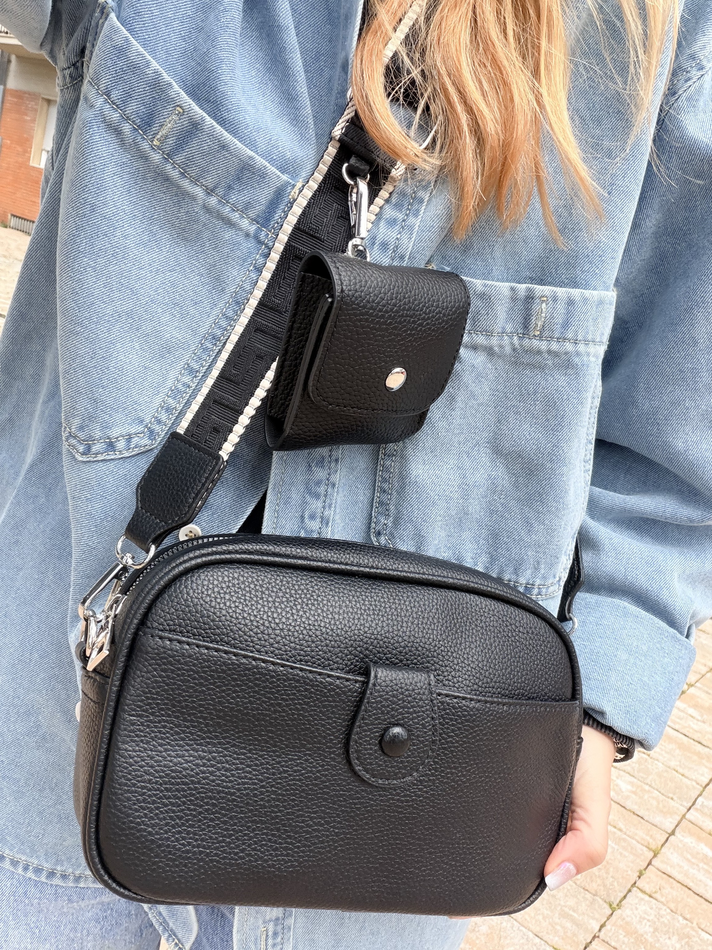 Borsetta nera con portamonete e tracolla