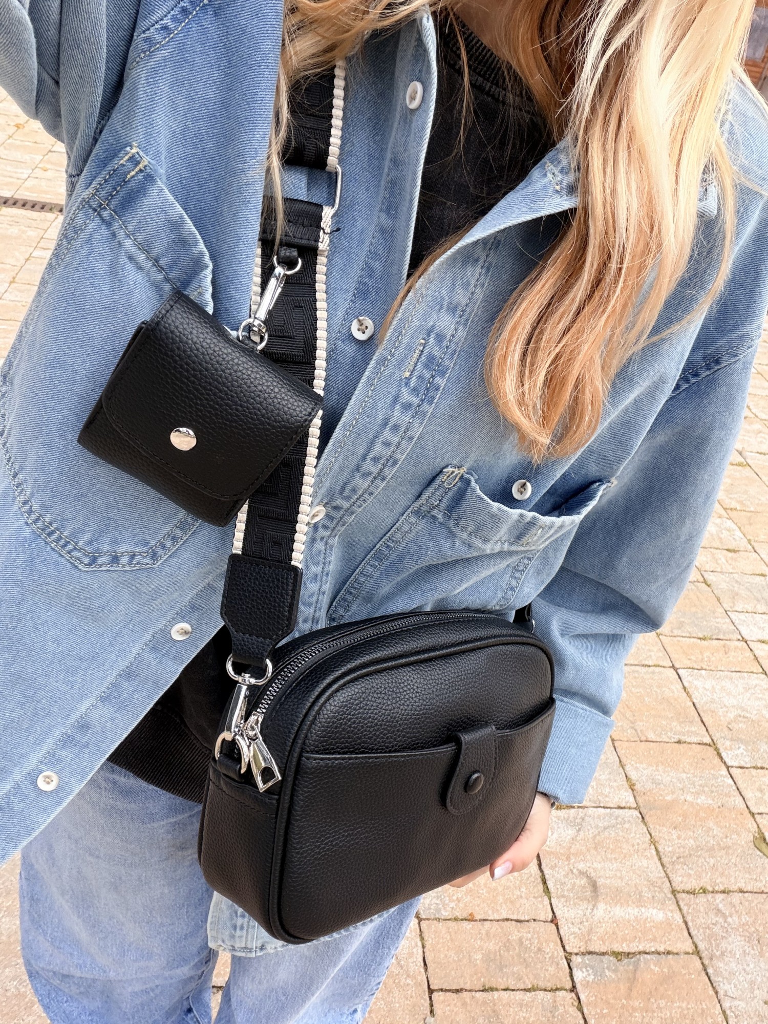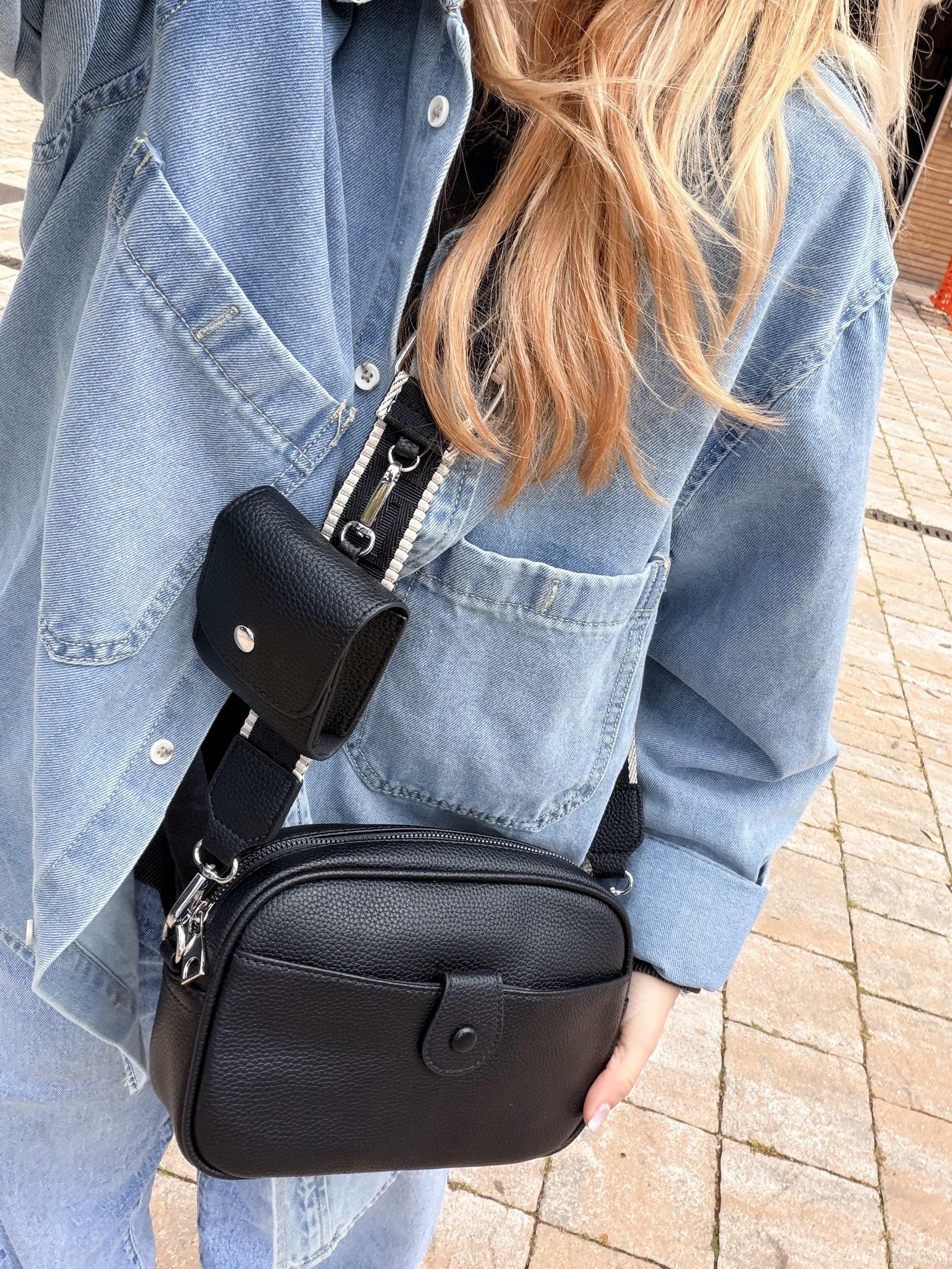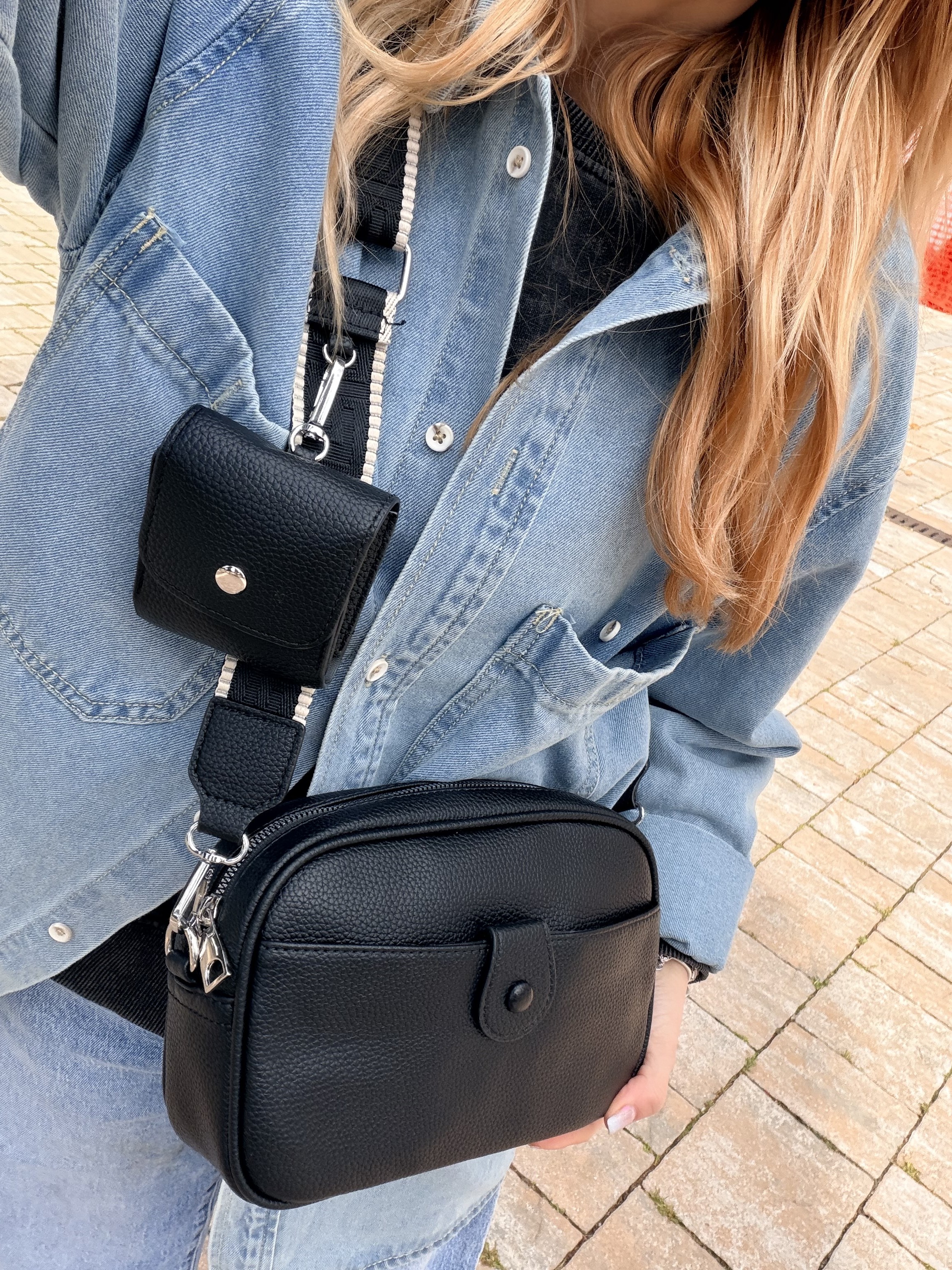 Borsetta nera con portamonete e tracolla