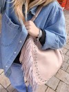 Borsa frange e borchiette rosa