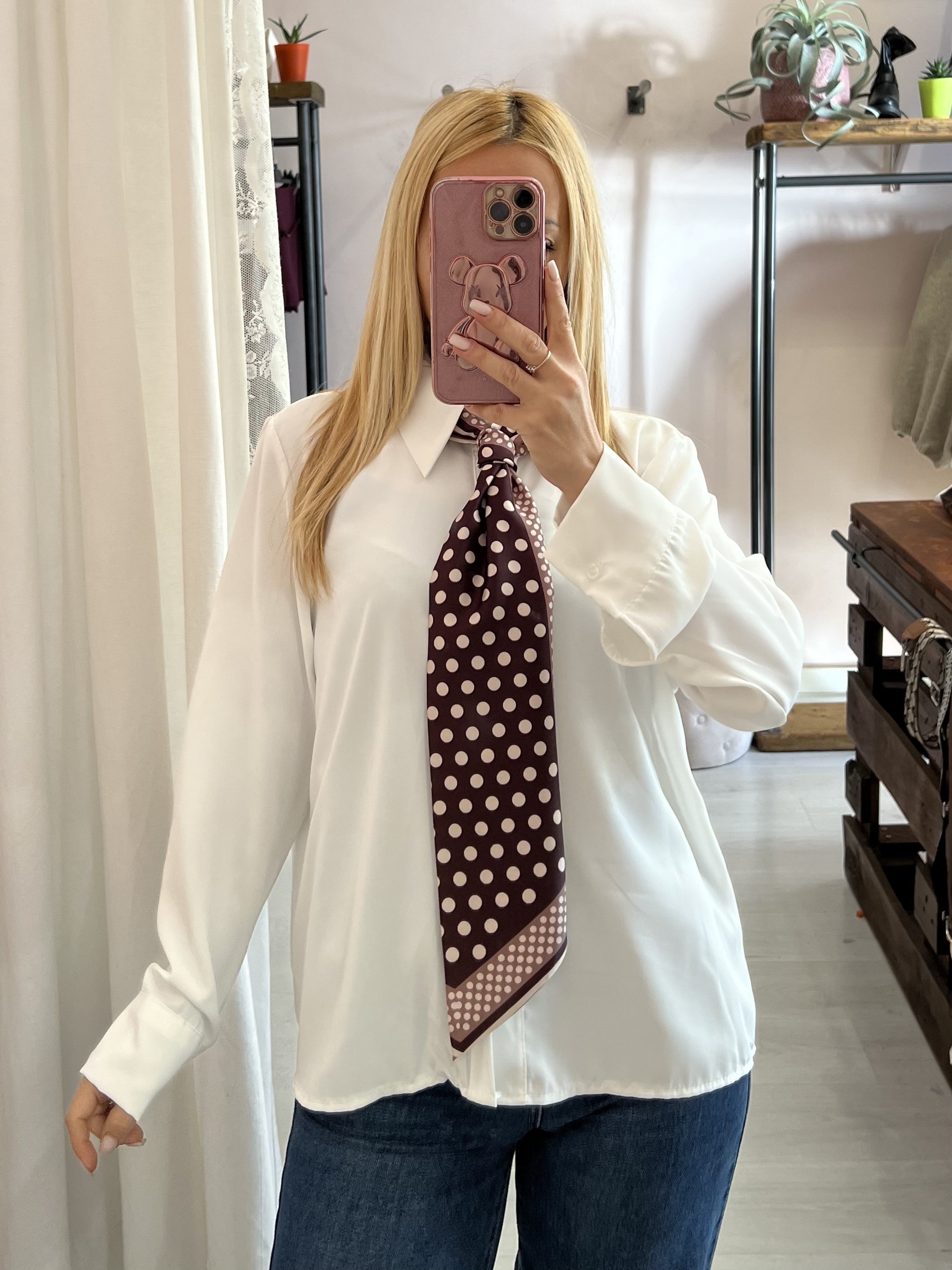 arricchita da un bellissima foularino che si può legare a piacimento come carvattino o foulard