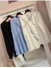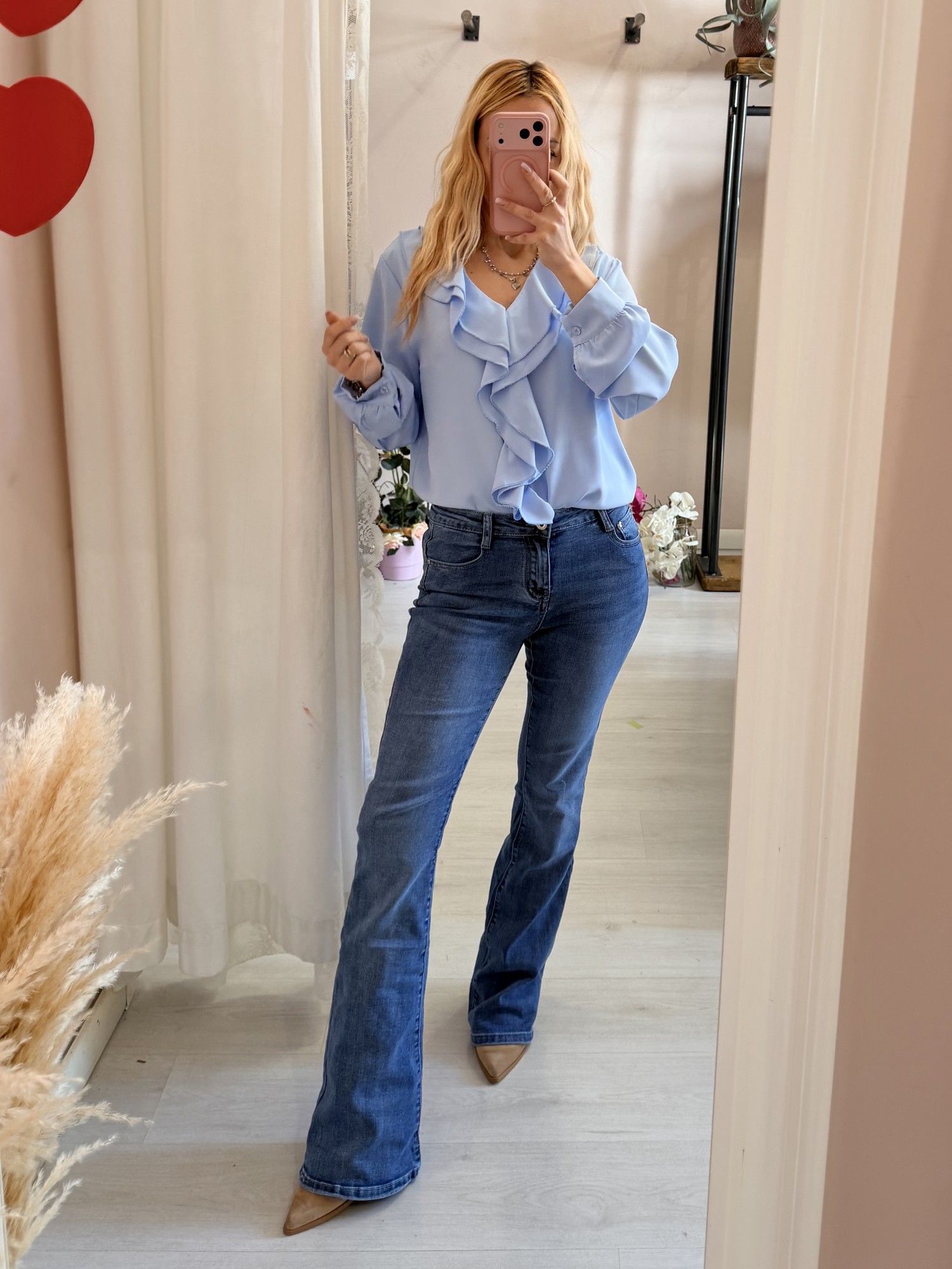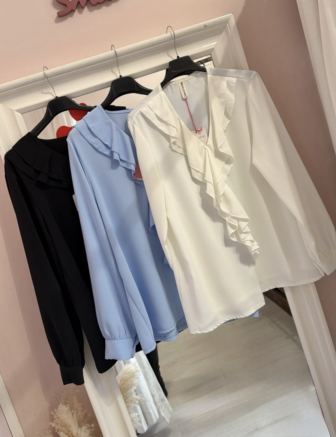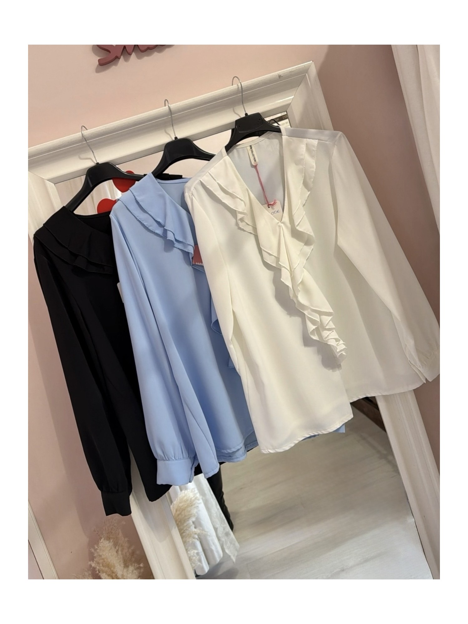 Camicetta fine ed elegante con questa ruches sul davanti che arricchisce  lo scollo a v ed esalta la figura!