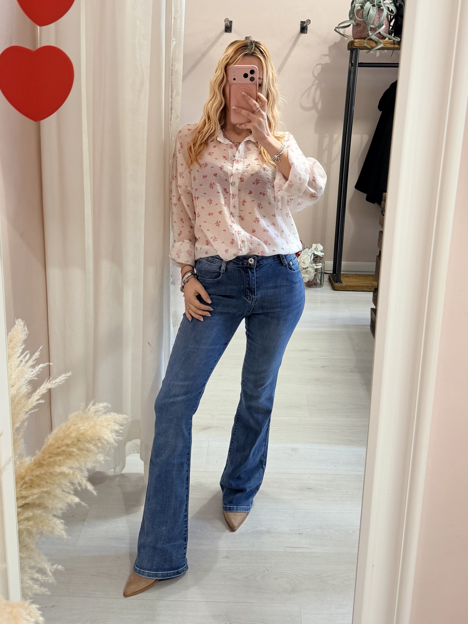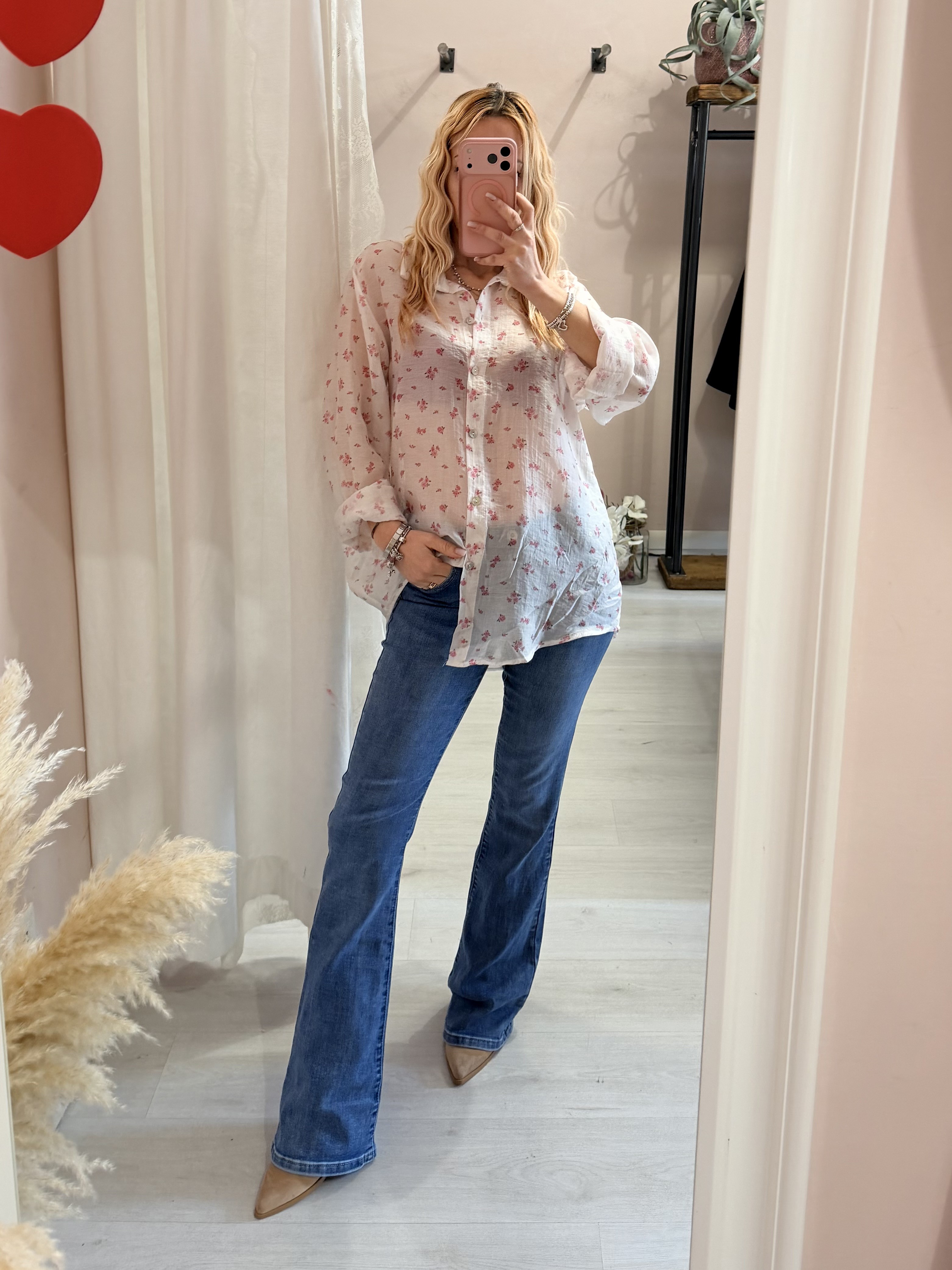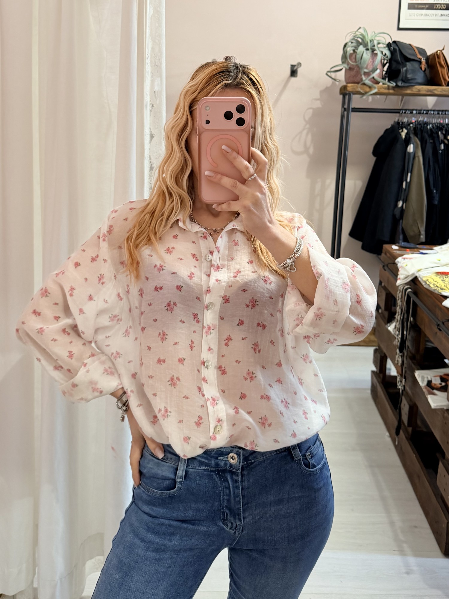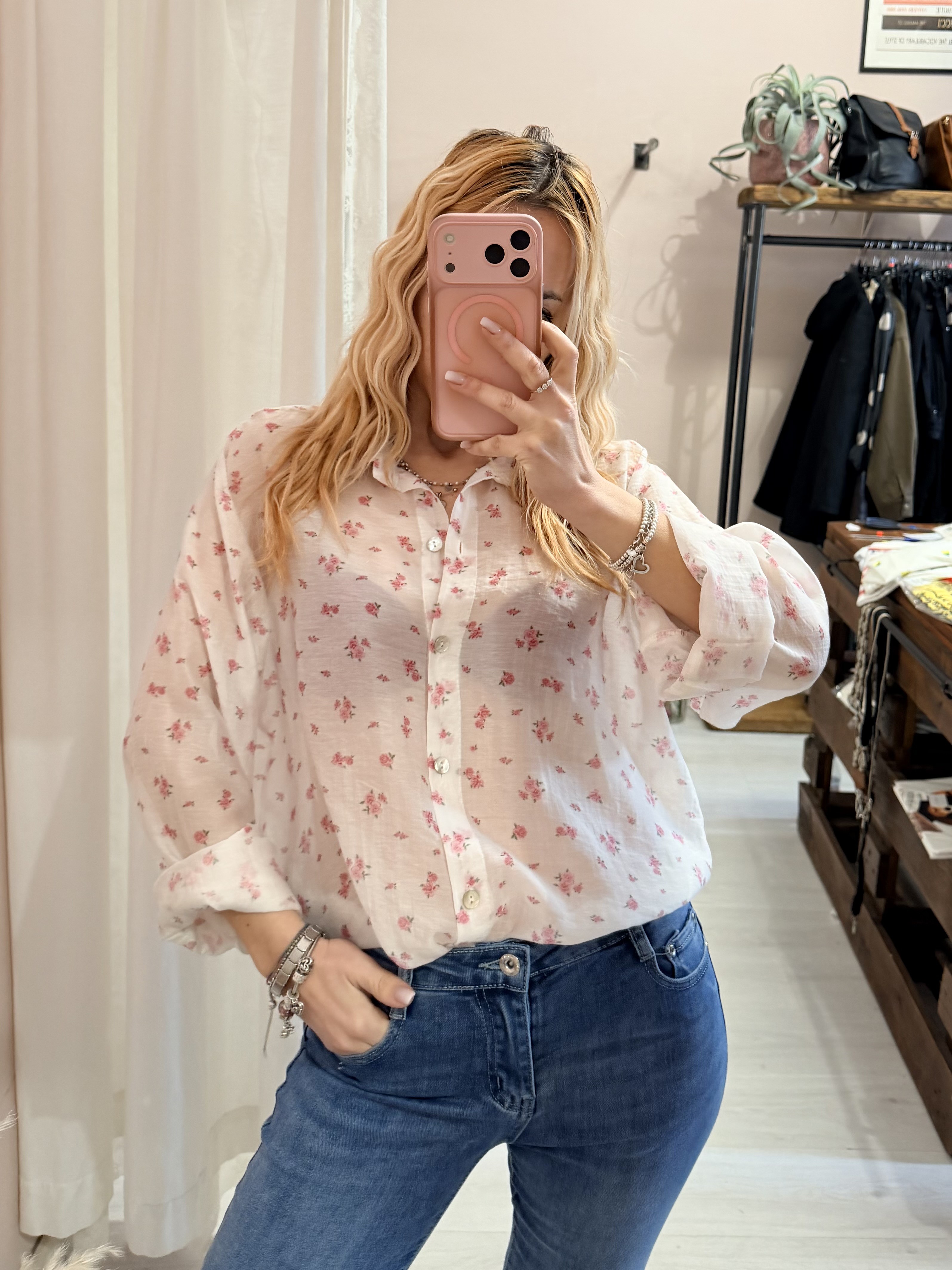 Scopri il fascino senza tempo di questa camicia a fiorellini in morbido fresco e leggero tessuto velato