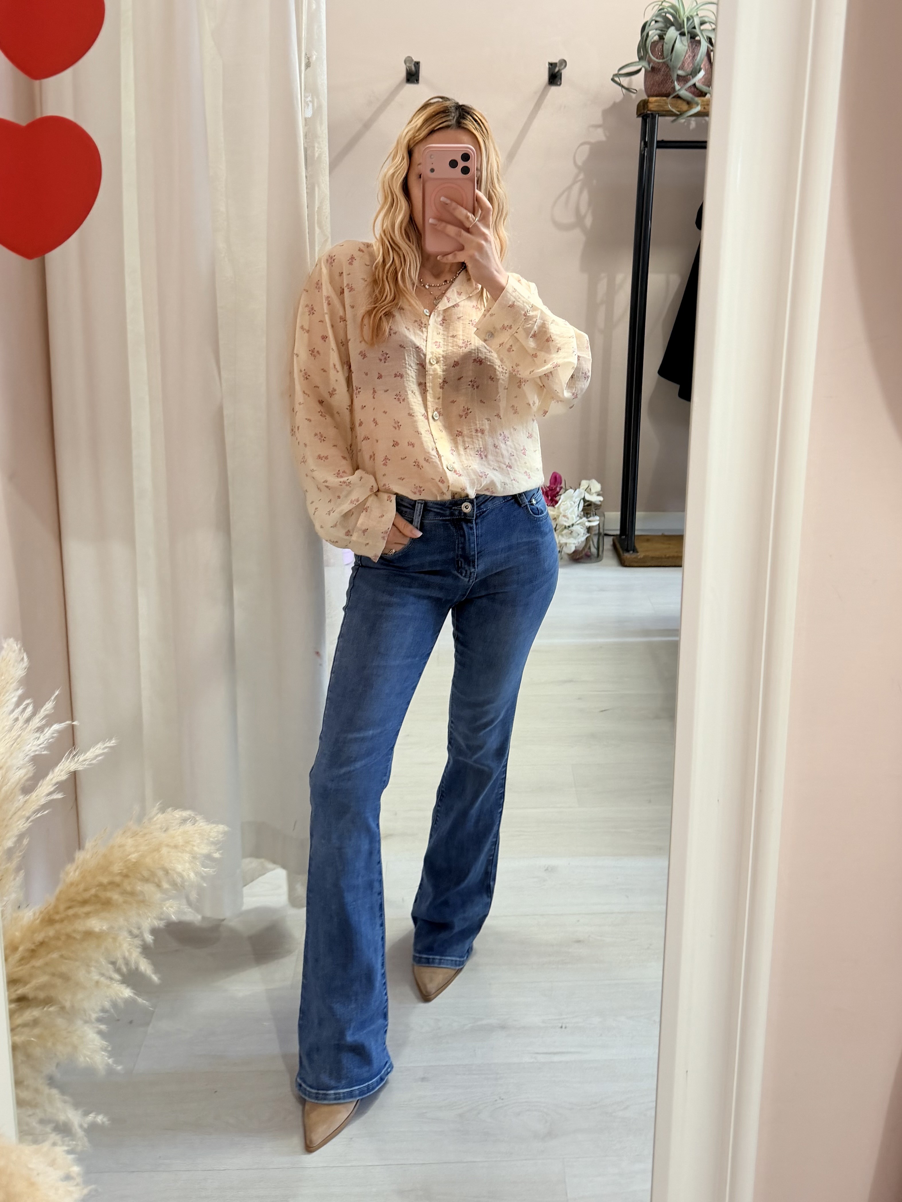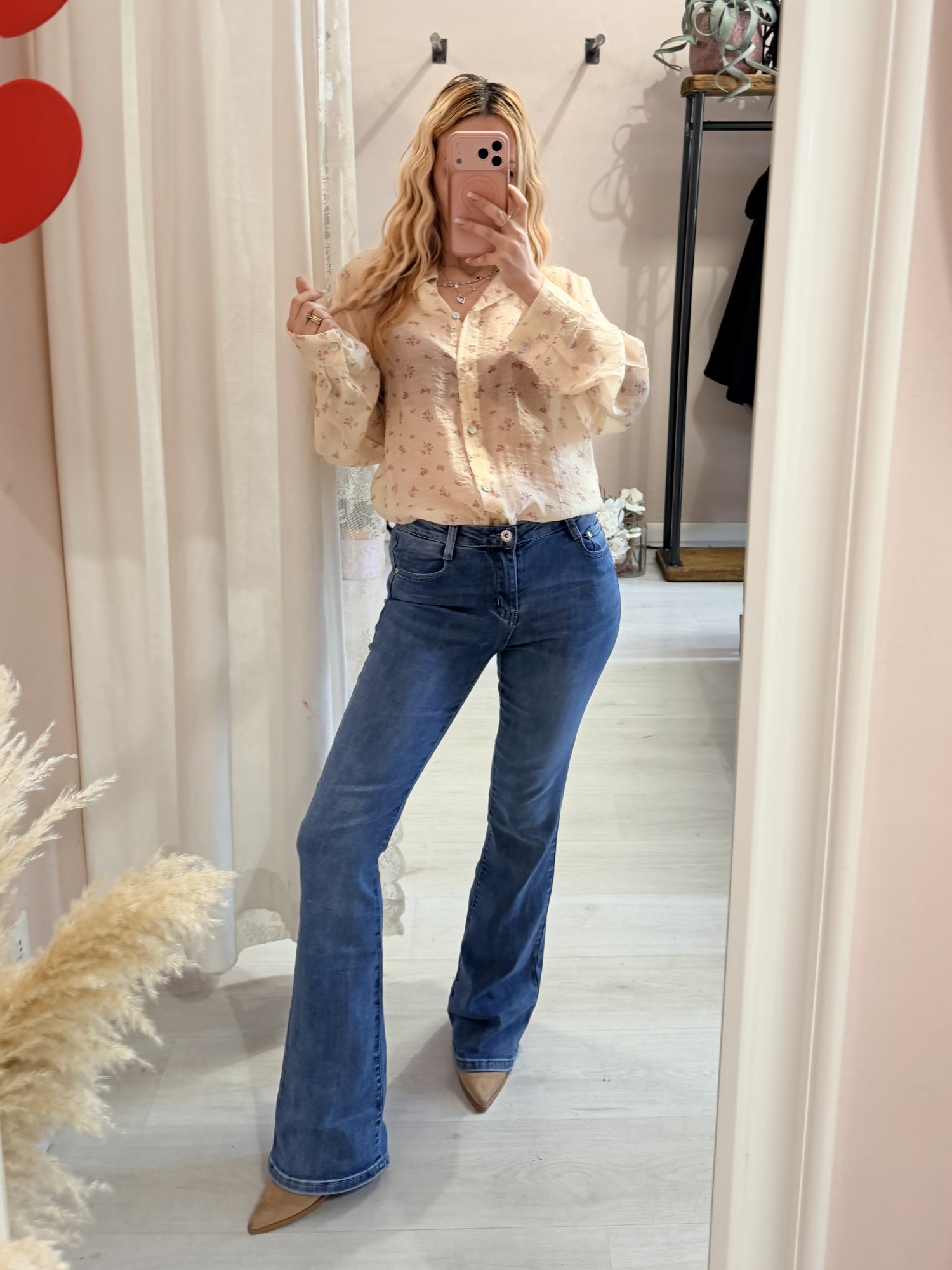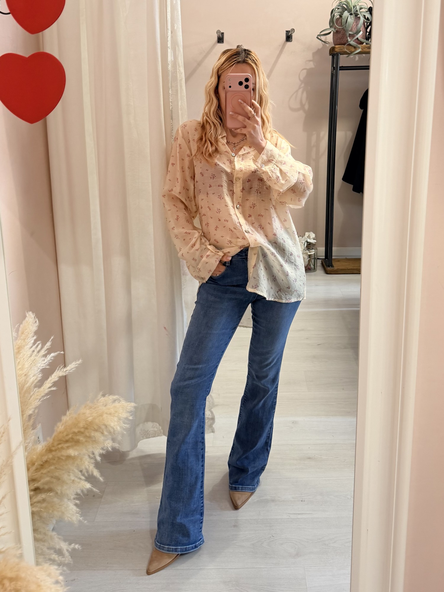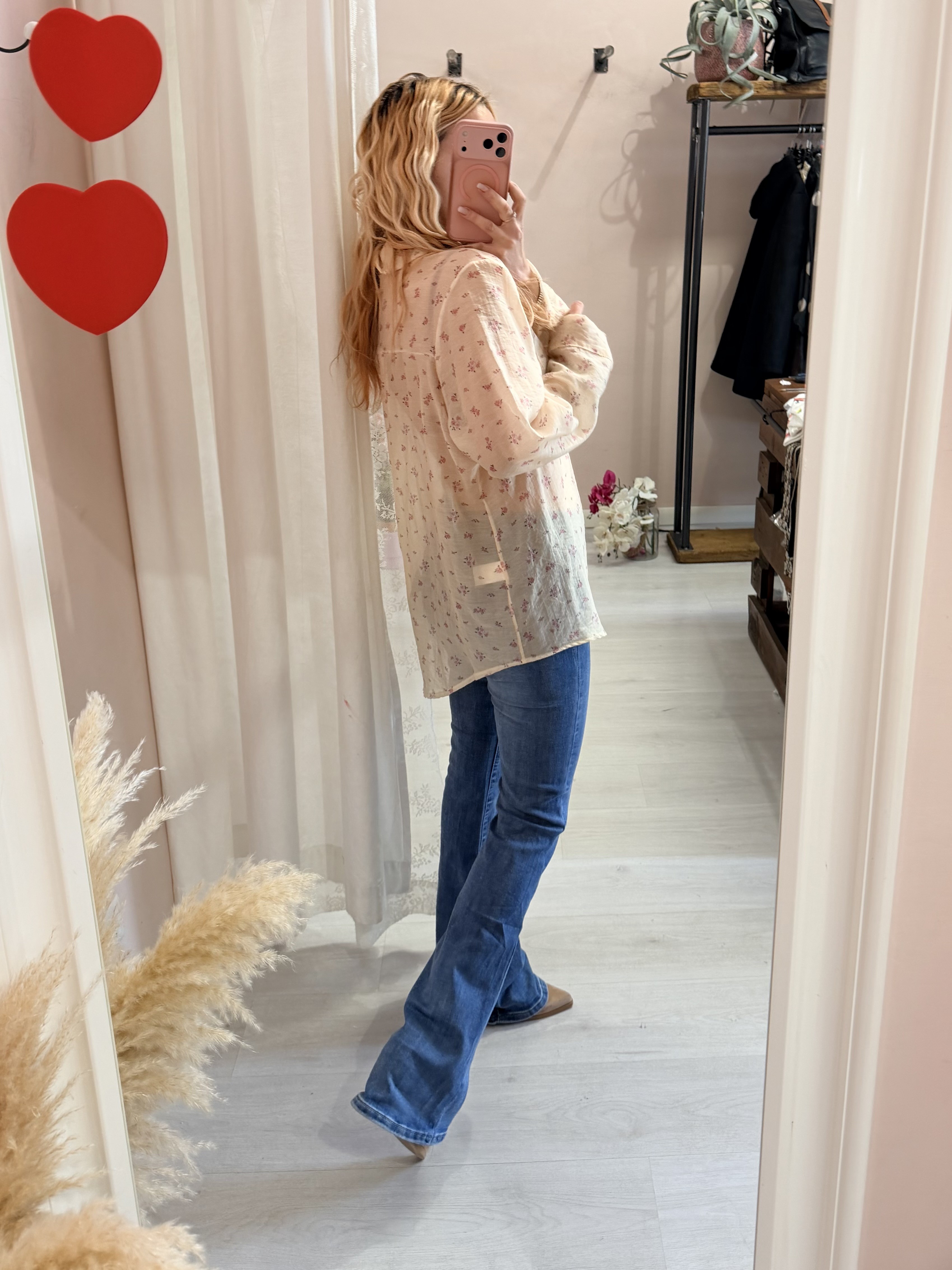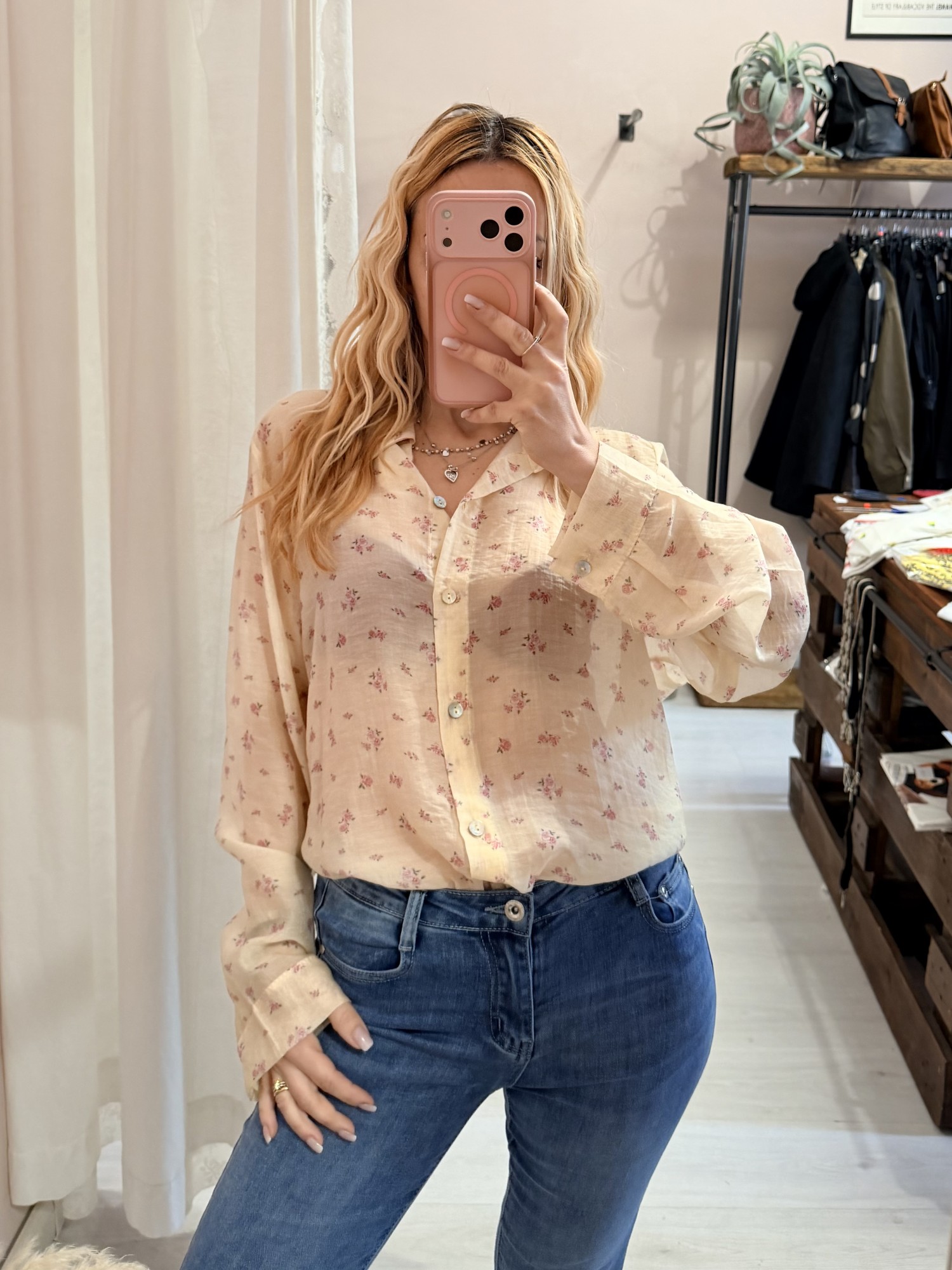 Scopri il fascino senza tempo di questa camicia a fiorellini in morbido fresco e leggero tessuto velato