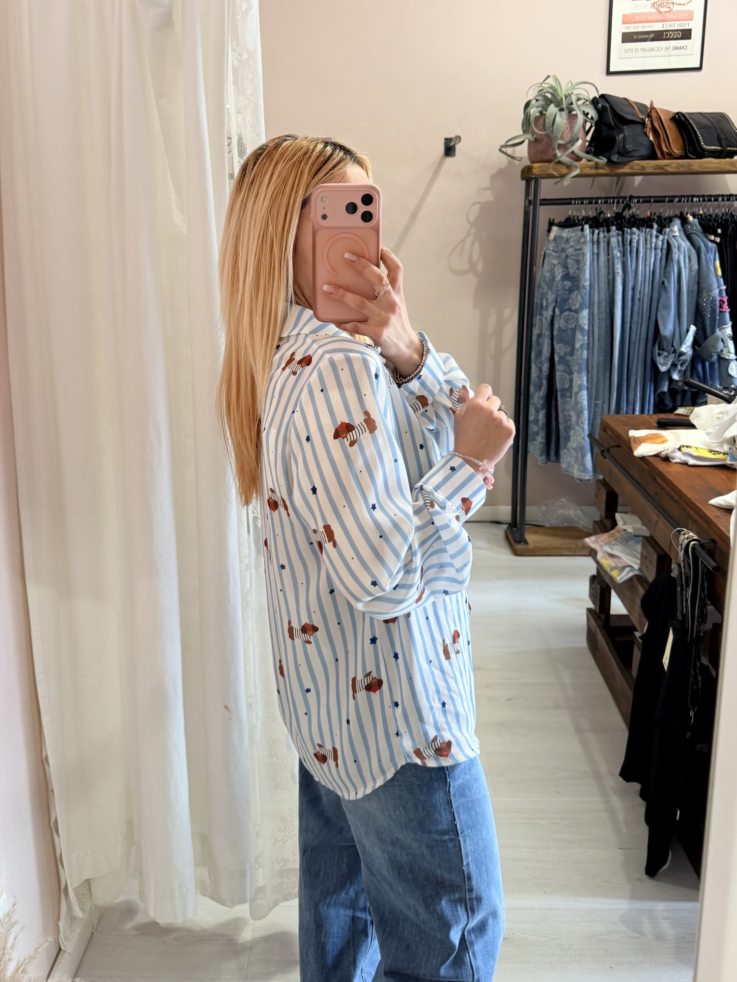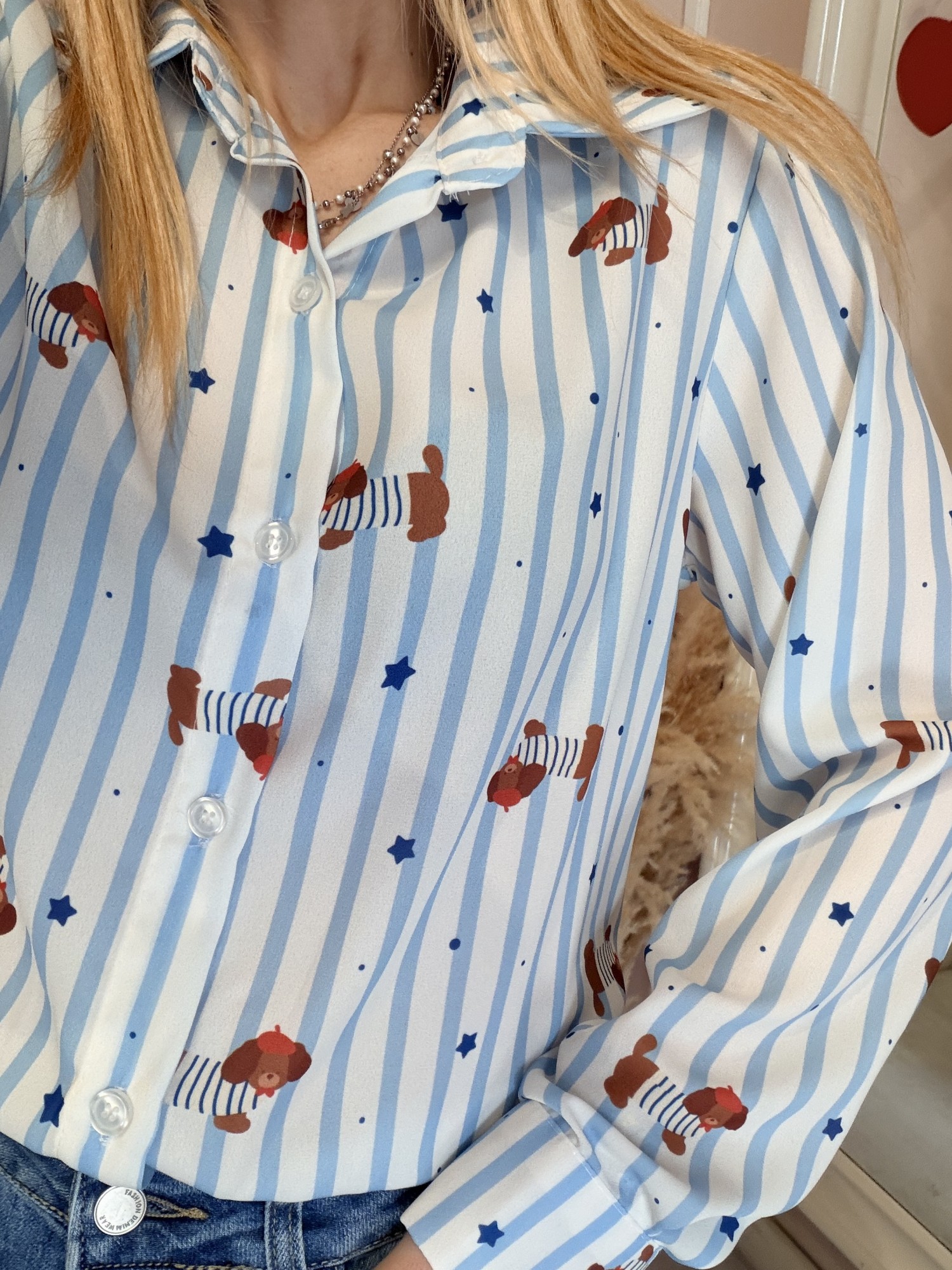 Aggiungi un tocco di brio al tuo guardaroba con questa camicetta a fantasia super carina e simpatica!