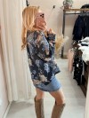 Scopri il fascino senza tempo di questa camicietta con fiori sui toni del blu azzurro  e beige