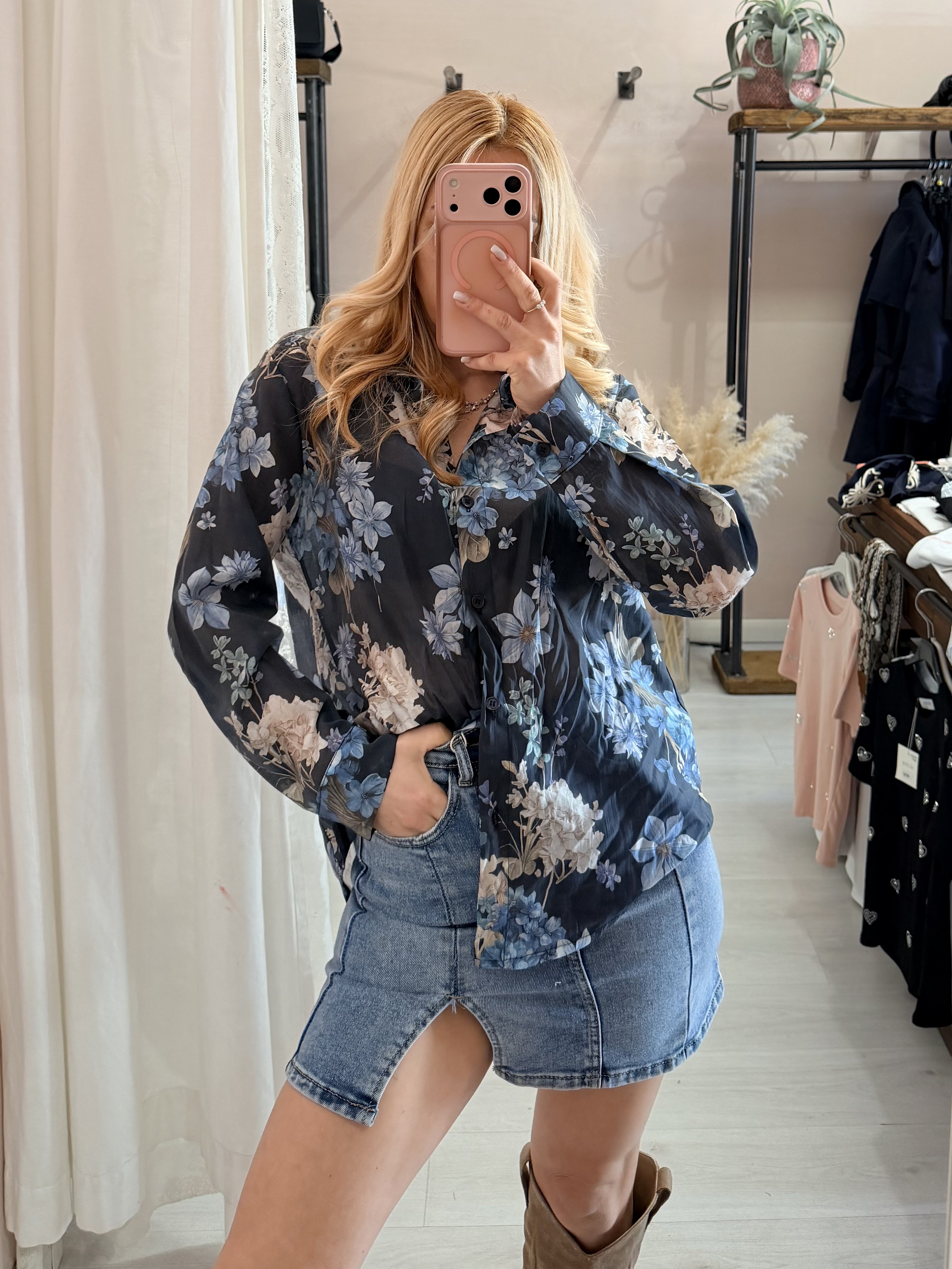 Camicia floreale blu