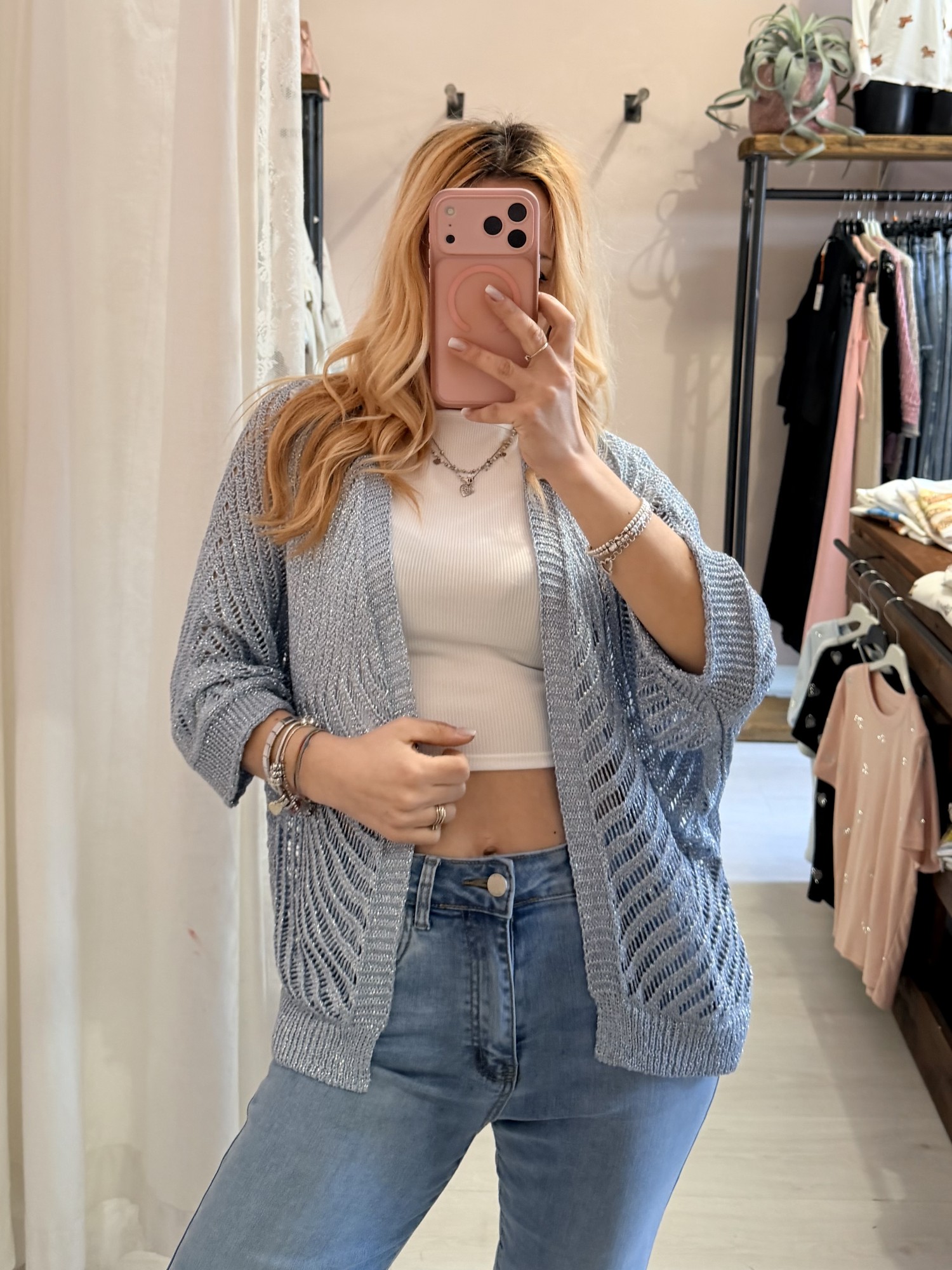 SUper carina questa giacchina a trama lurex