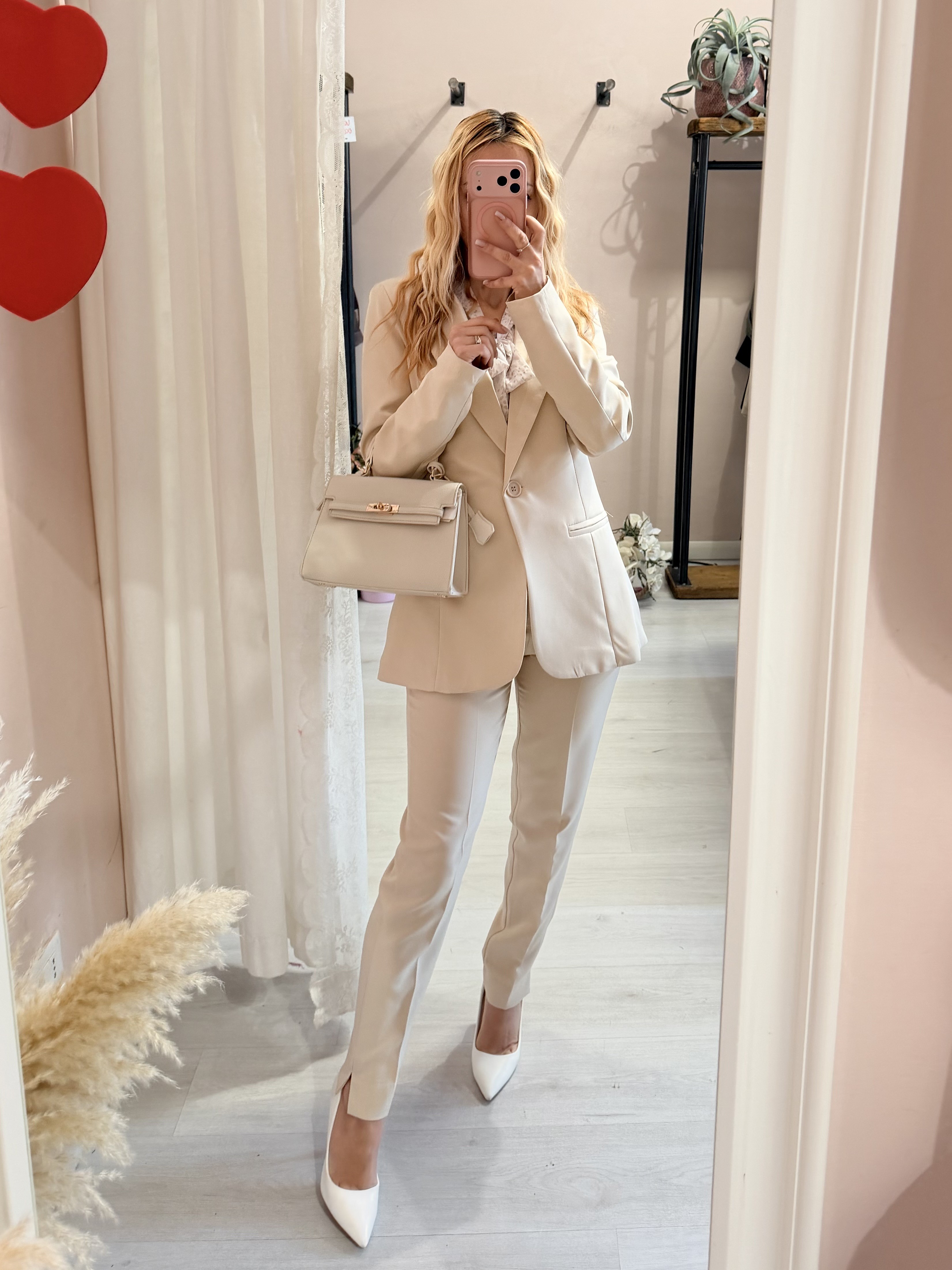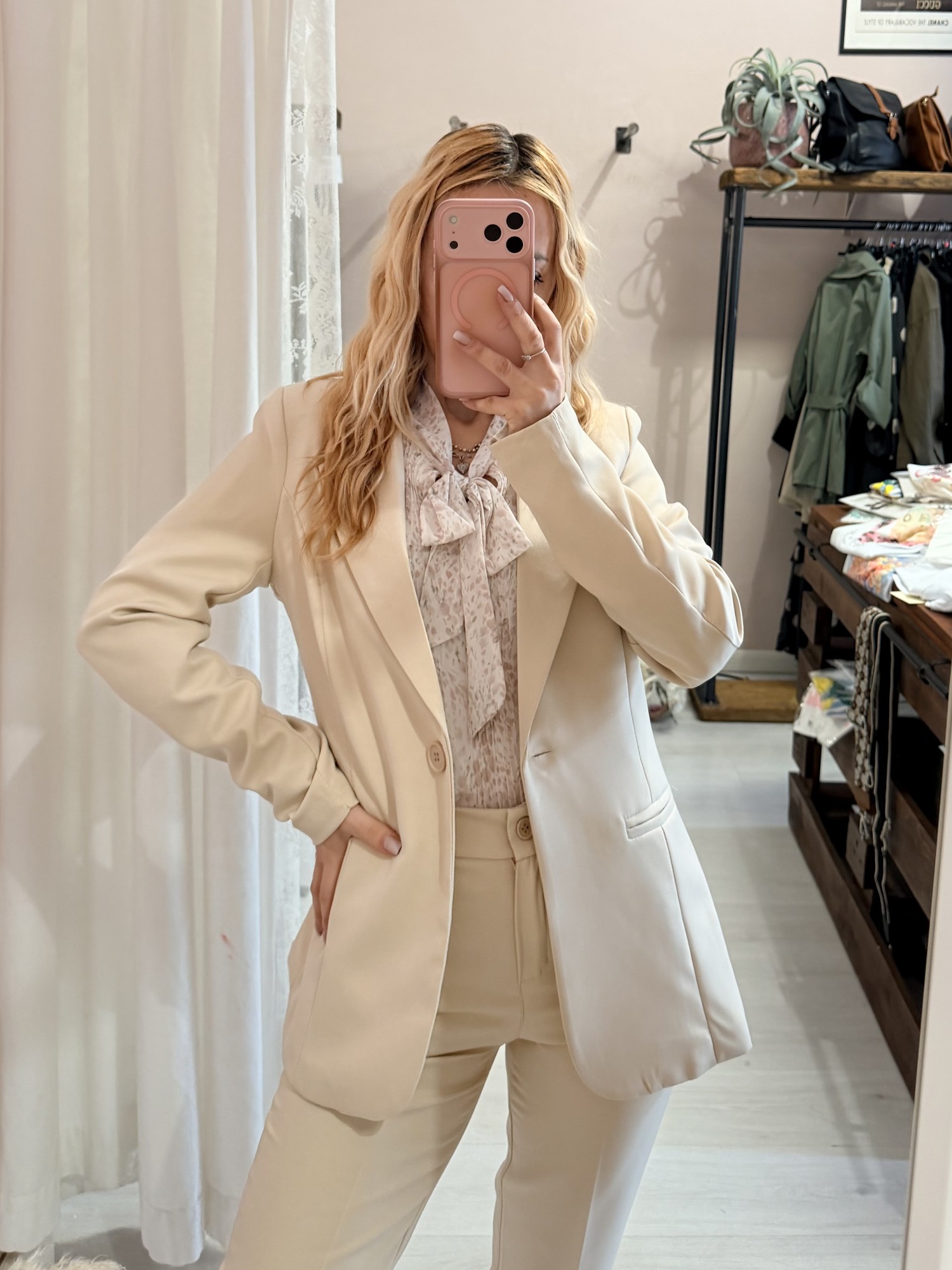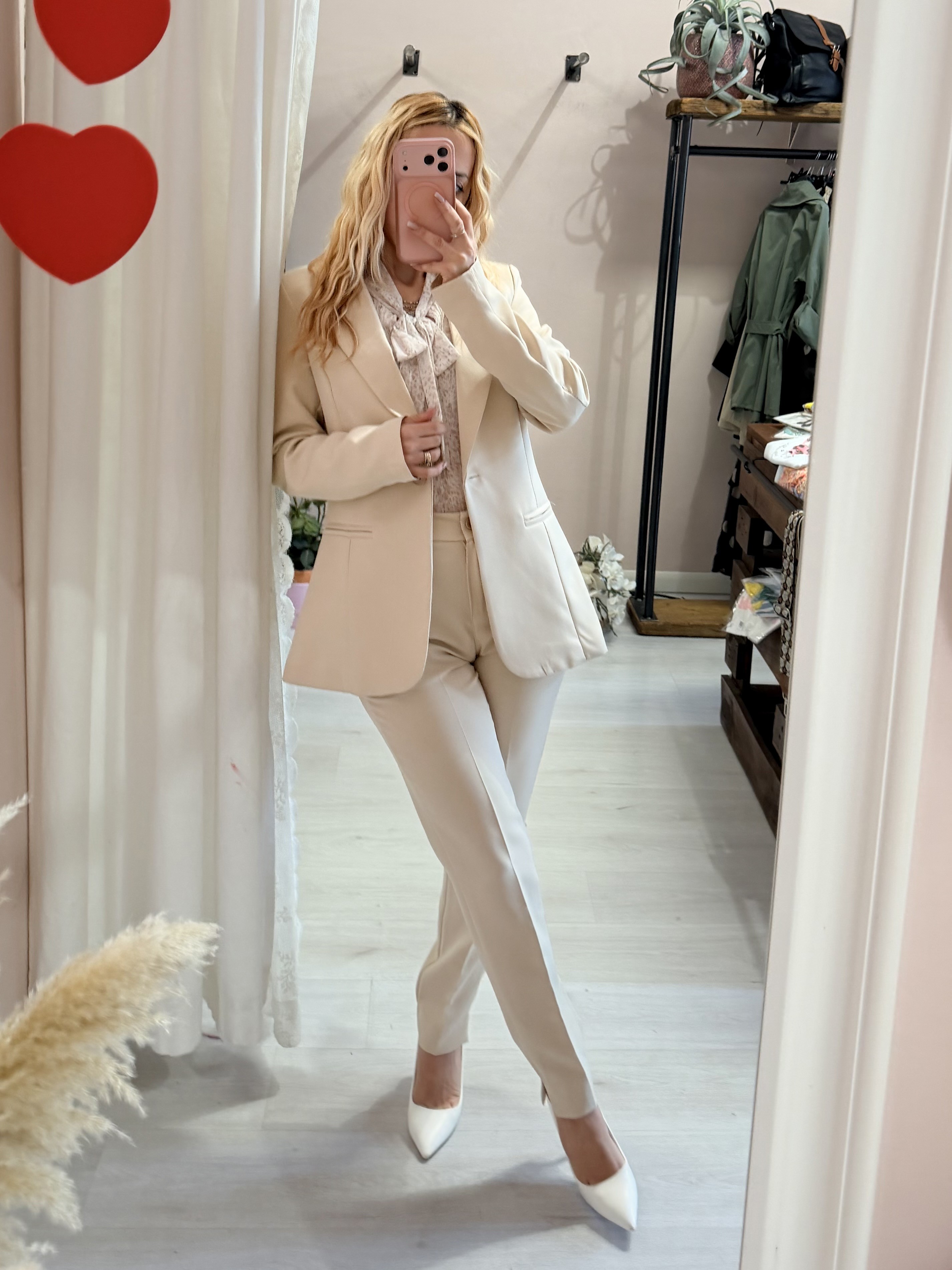 Questo elegante tailleur è il completo ideale per chic erca un look formale ma contemporaneo, perfetto per eventi speciali come matrimoni comunioni battesimi, party serali o o come abbigliamento da lavoro raffinato
