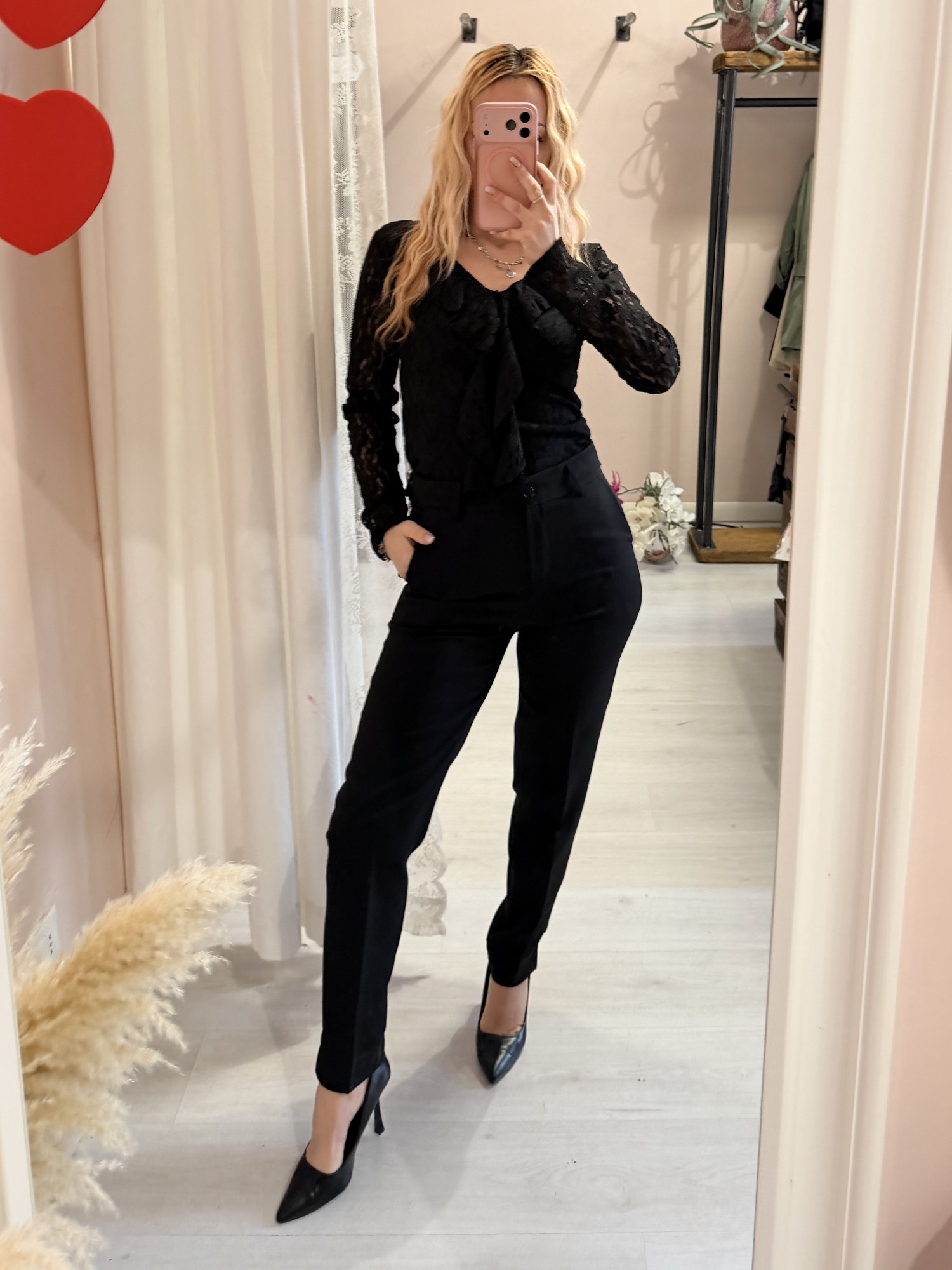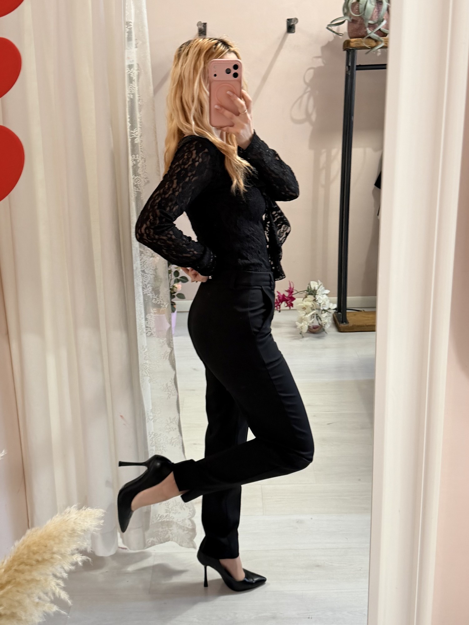 i pantaloni hanno un taglio a sigaretta con un piccolo spacchetto alal caviglia (in base alla vostra altezza potrete fare un orlo o lasciarli così)
