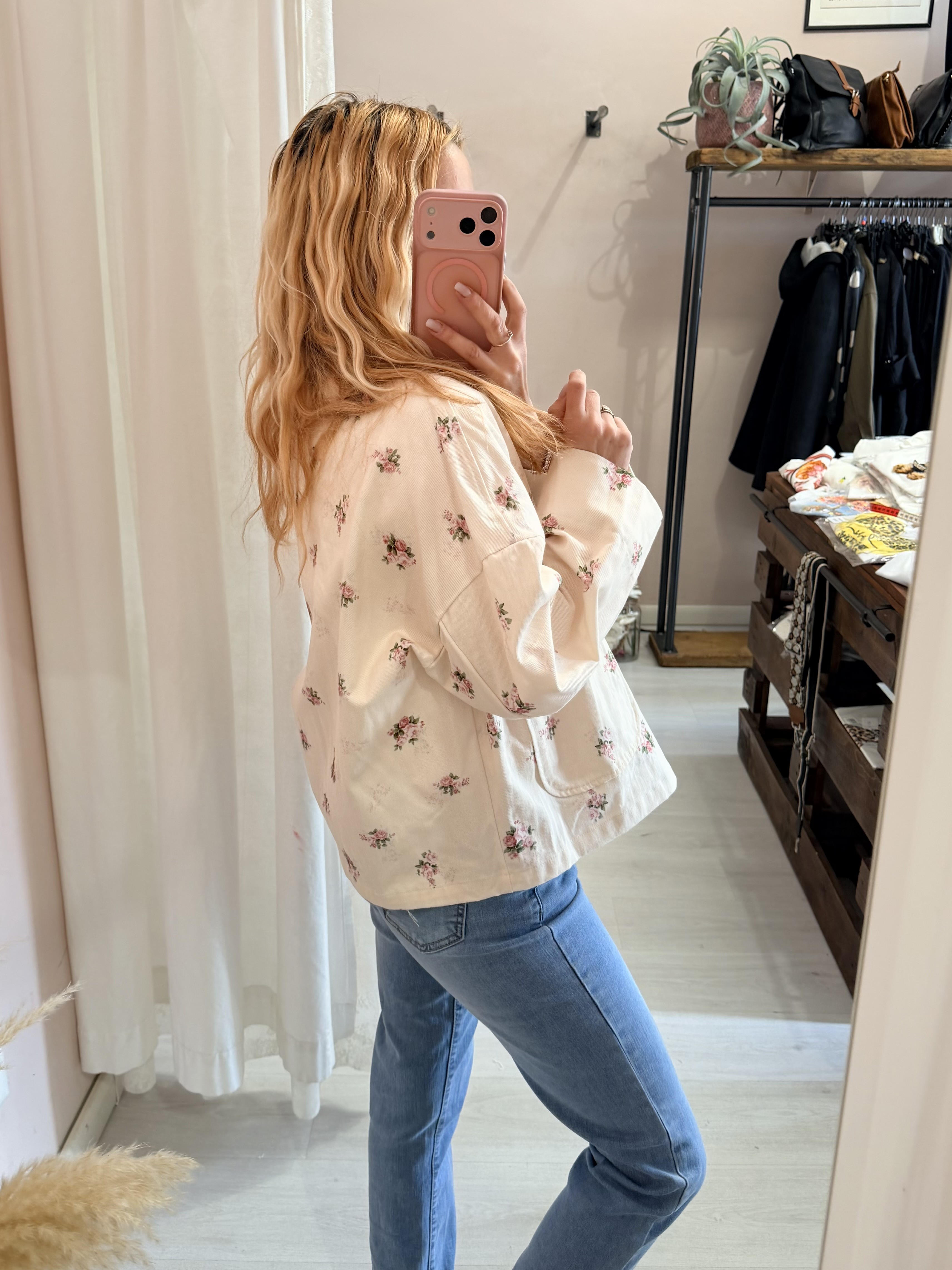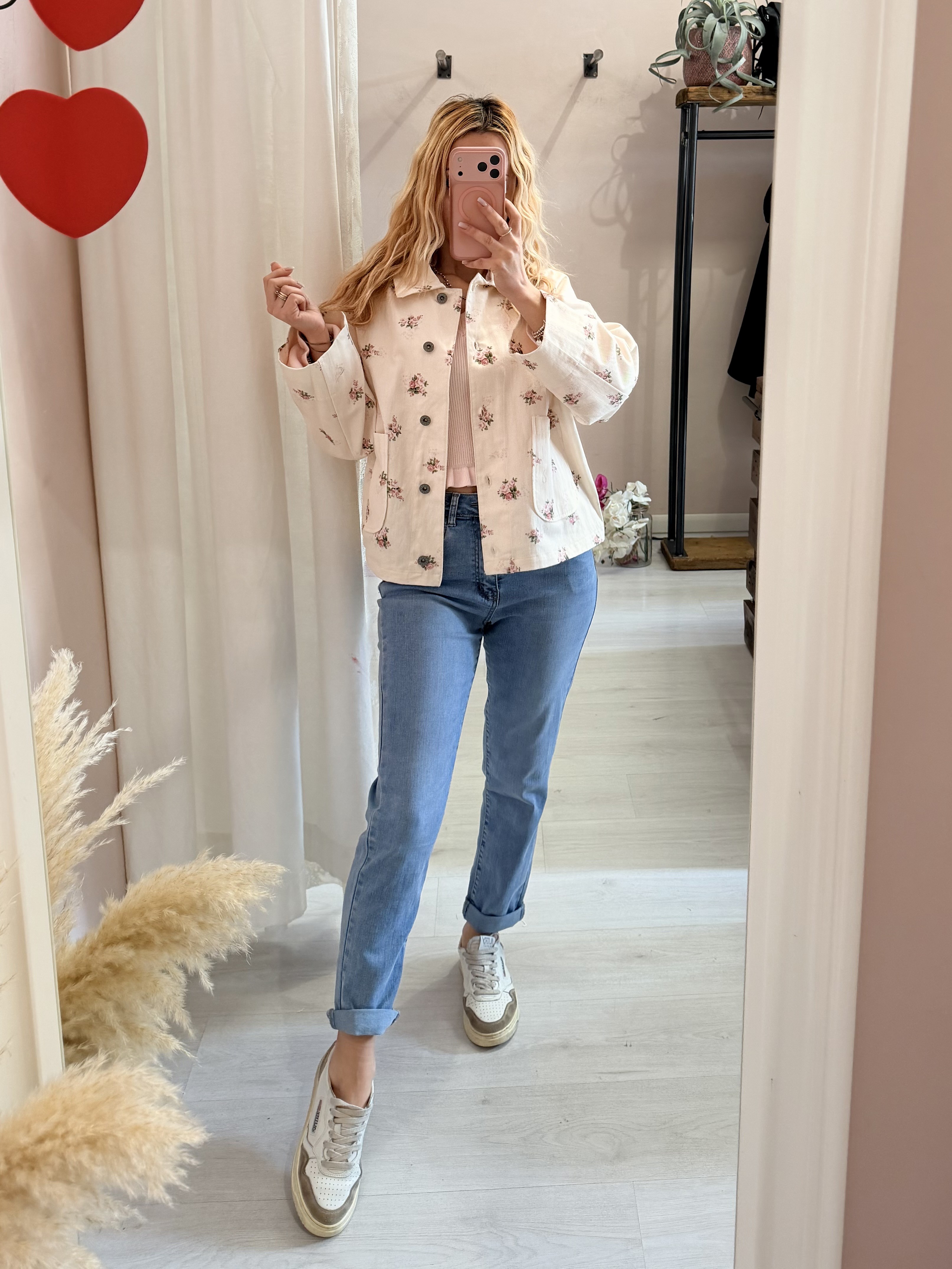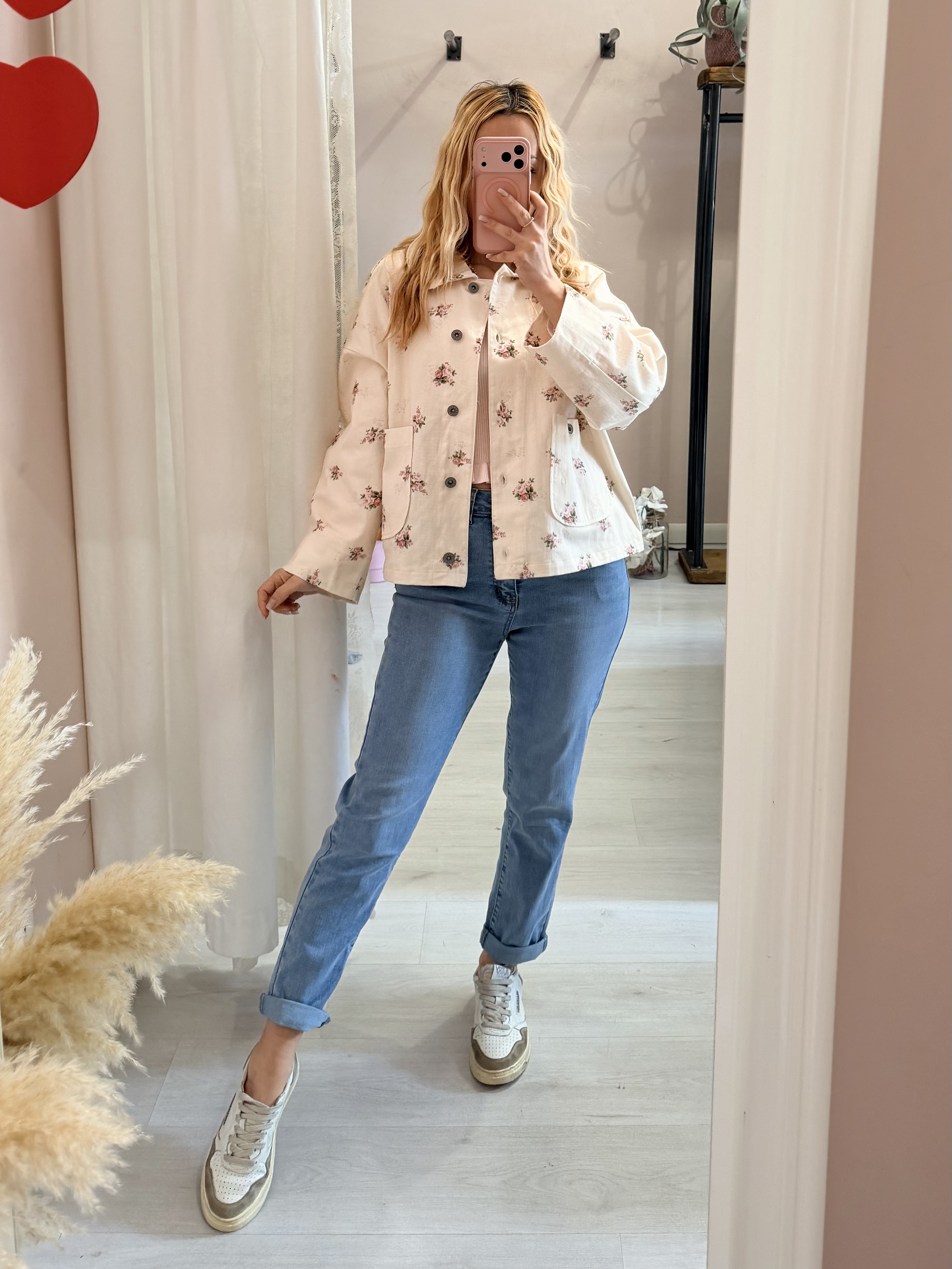 Giubbino di jeans burro fiorellini rosa