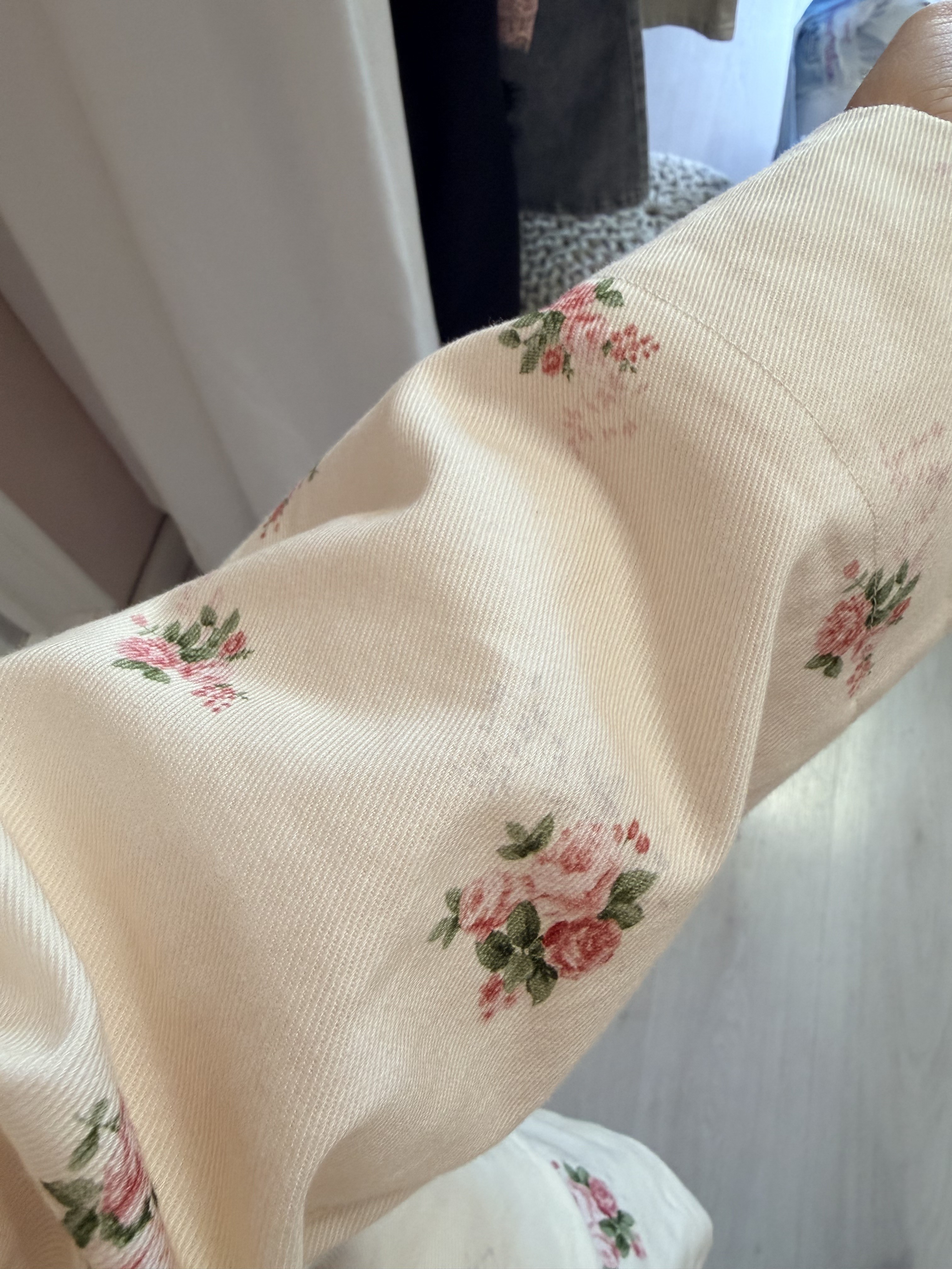 un capo romantico e chic, con questa base color burro e i fiorellini dai colori tenui del rosa