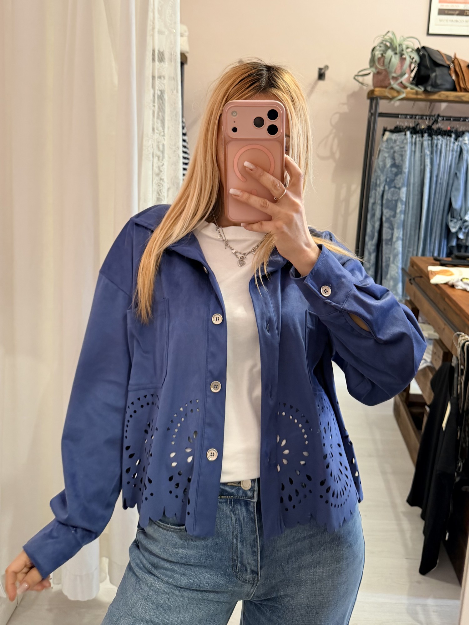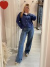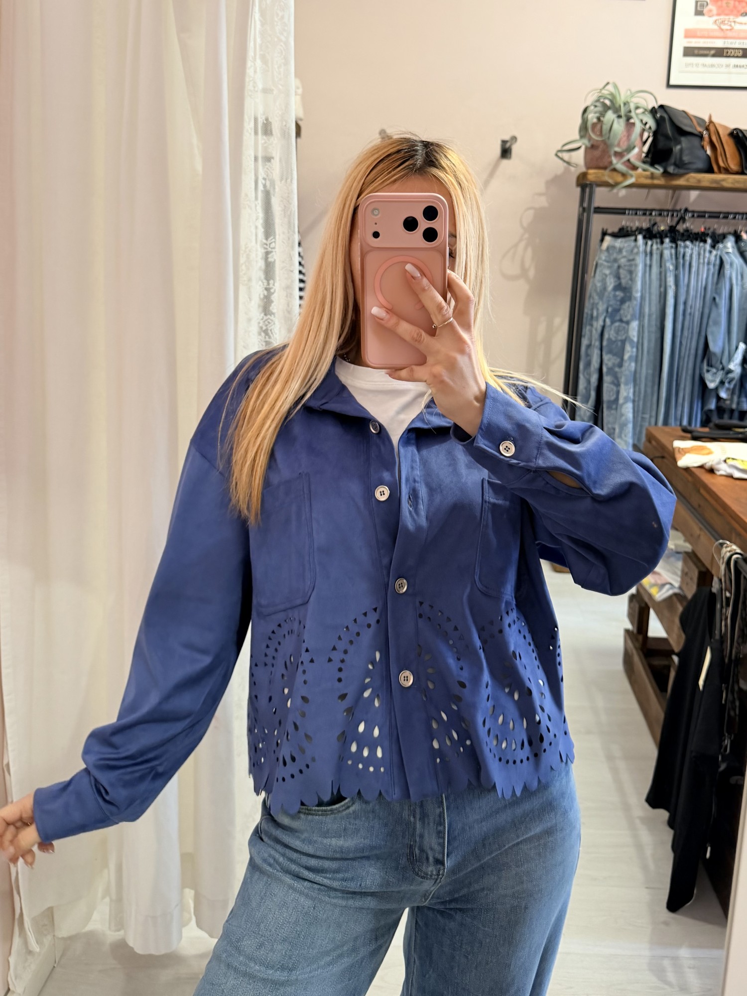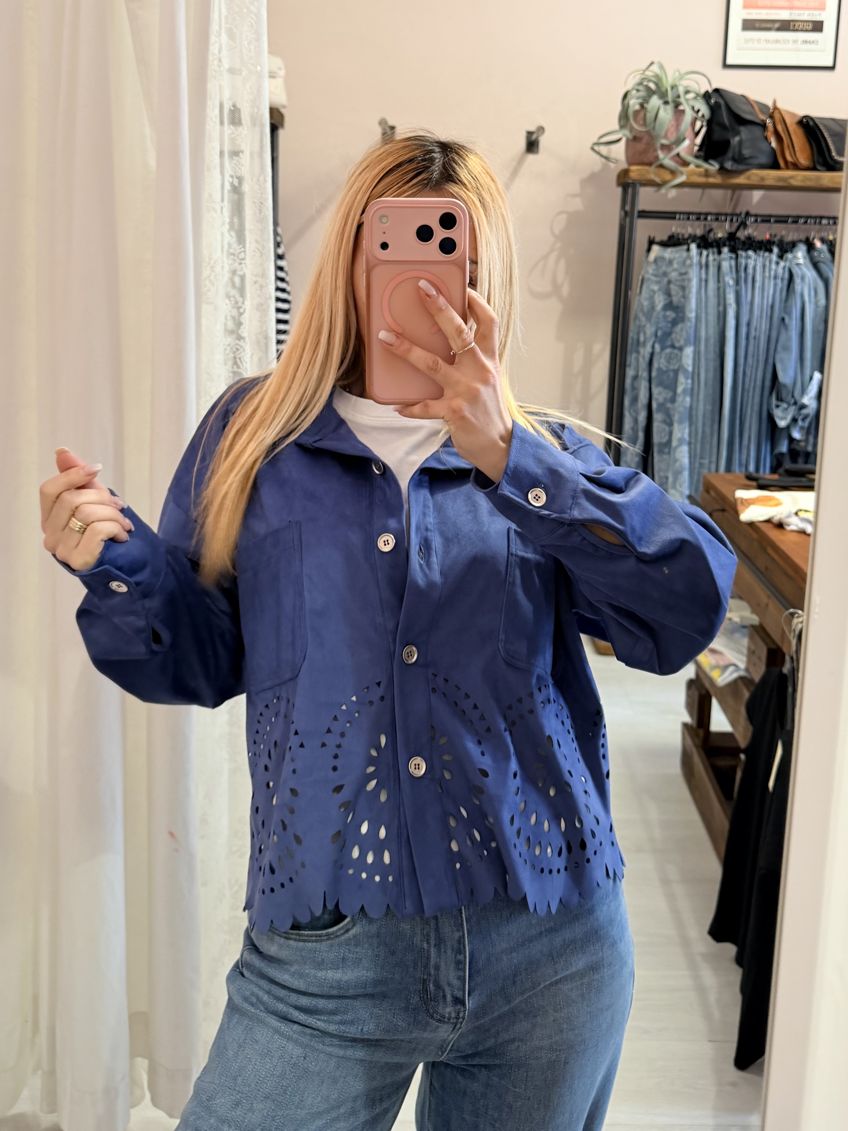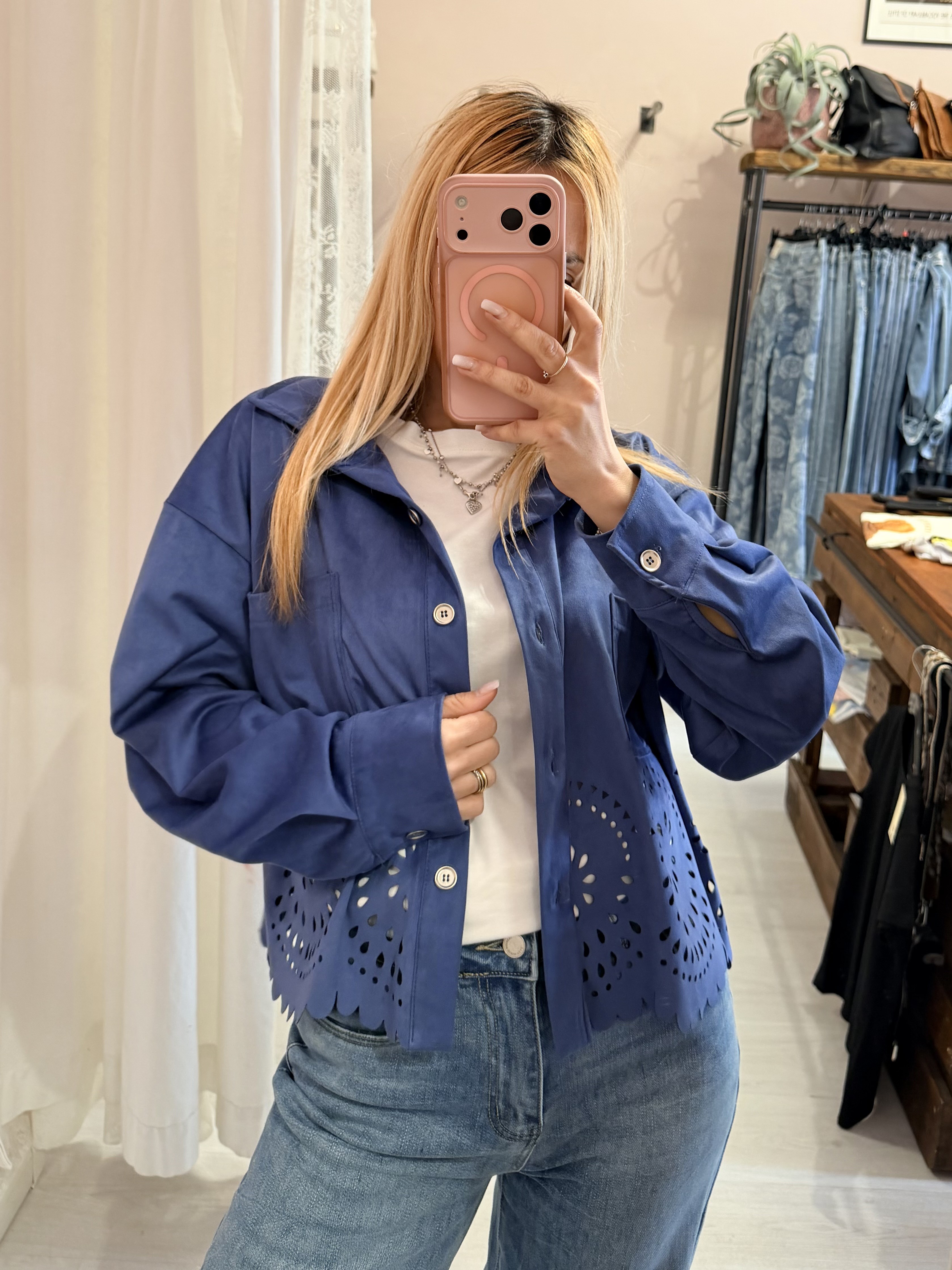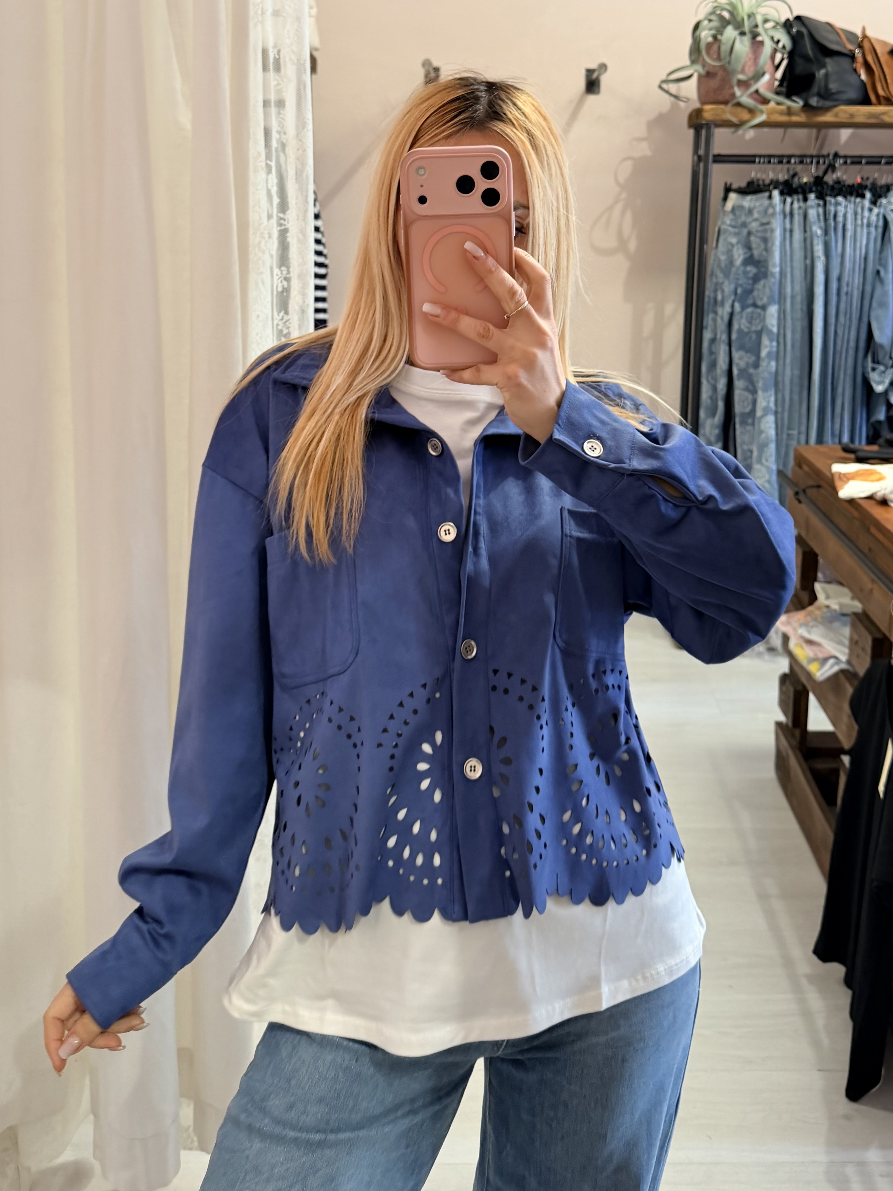 Giacchina camoscino ricamata blu