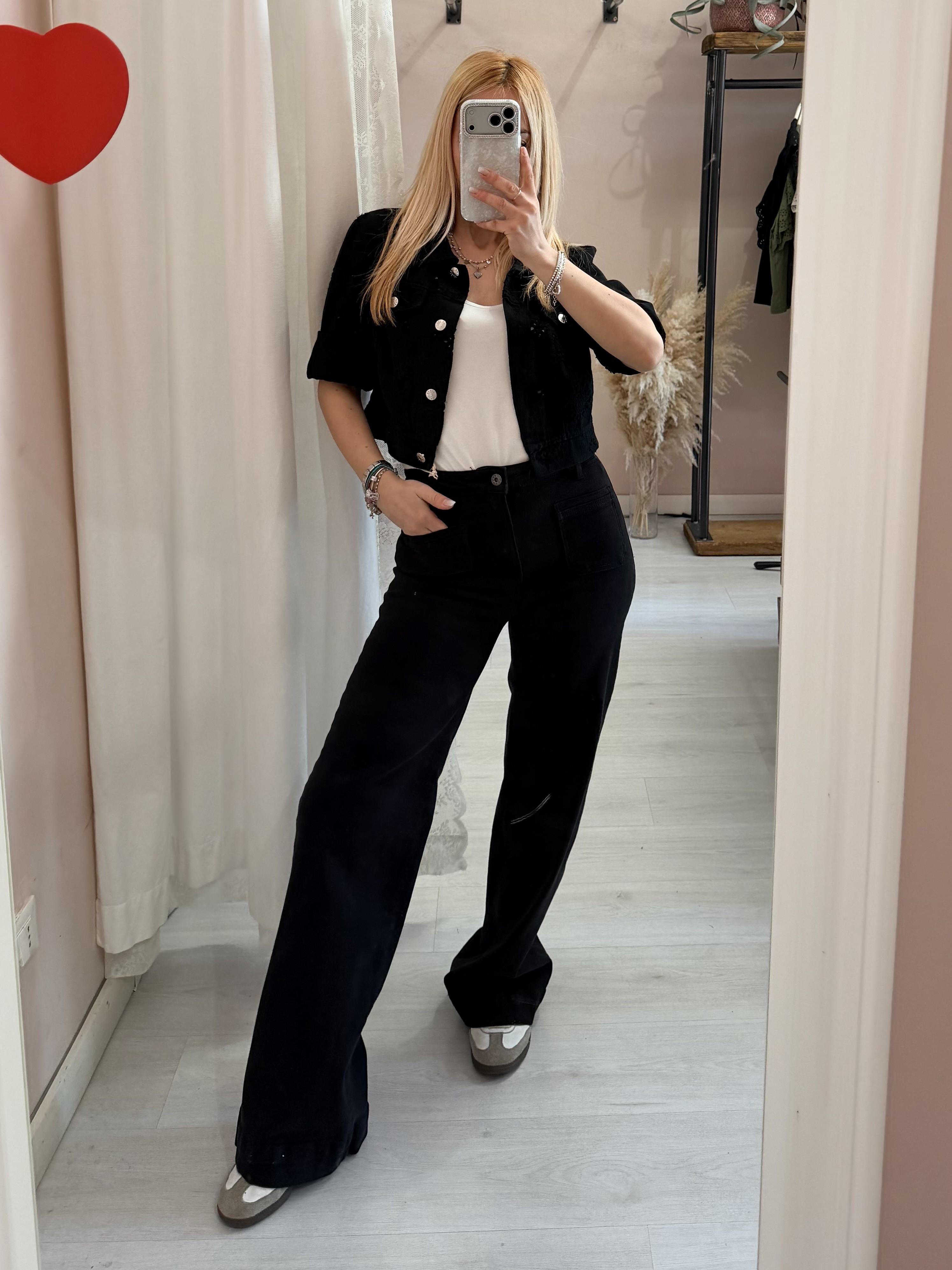 Giubbottino di jeans sangallo nero