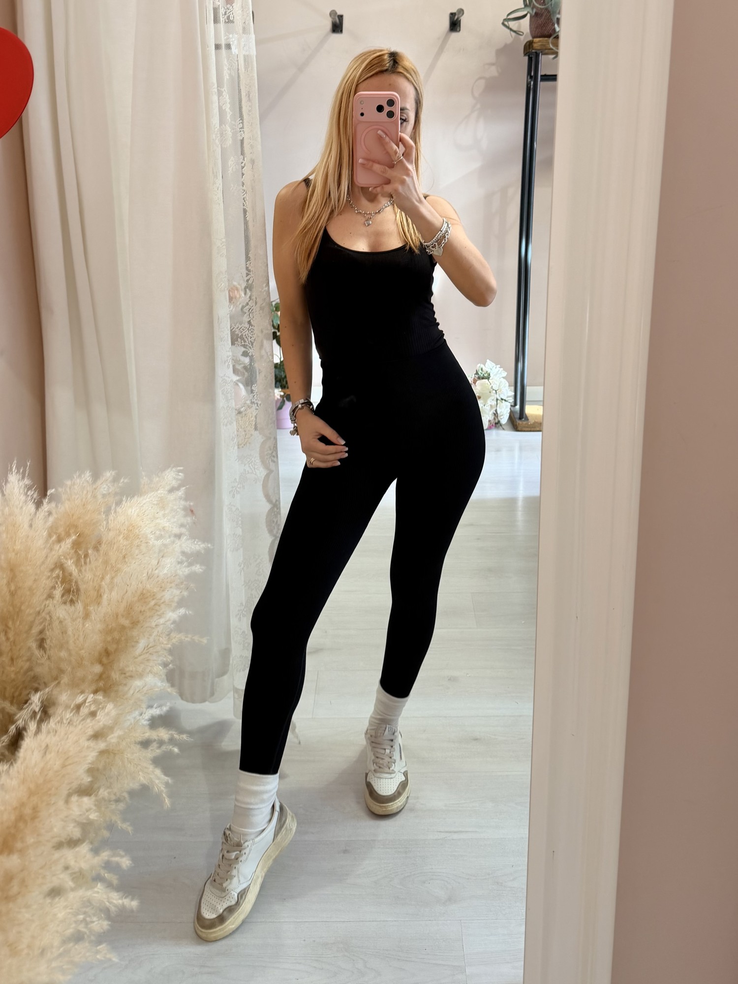Leggings fitline neri a costine