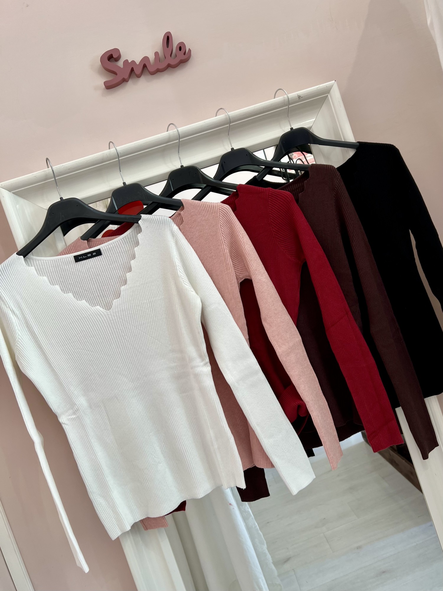 Maglioncino a costine  con scollo a V ondulato