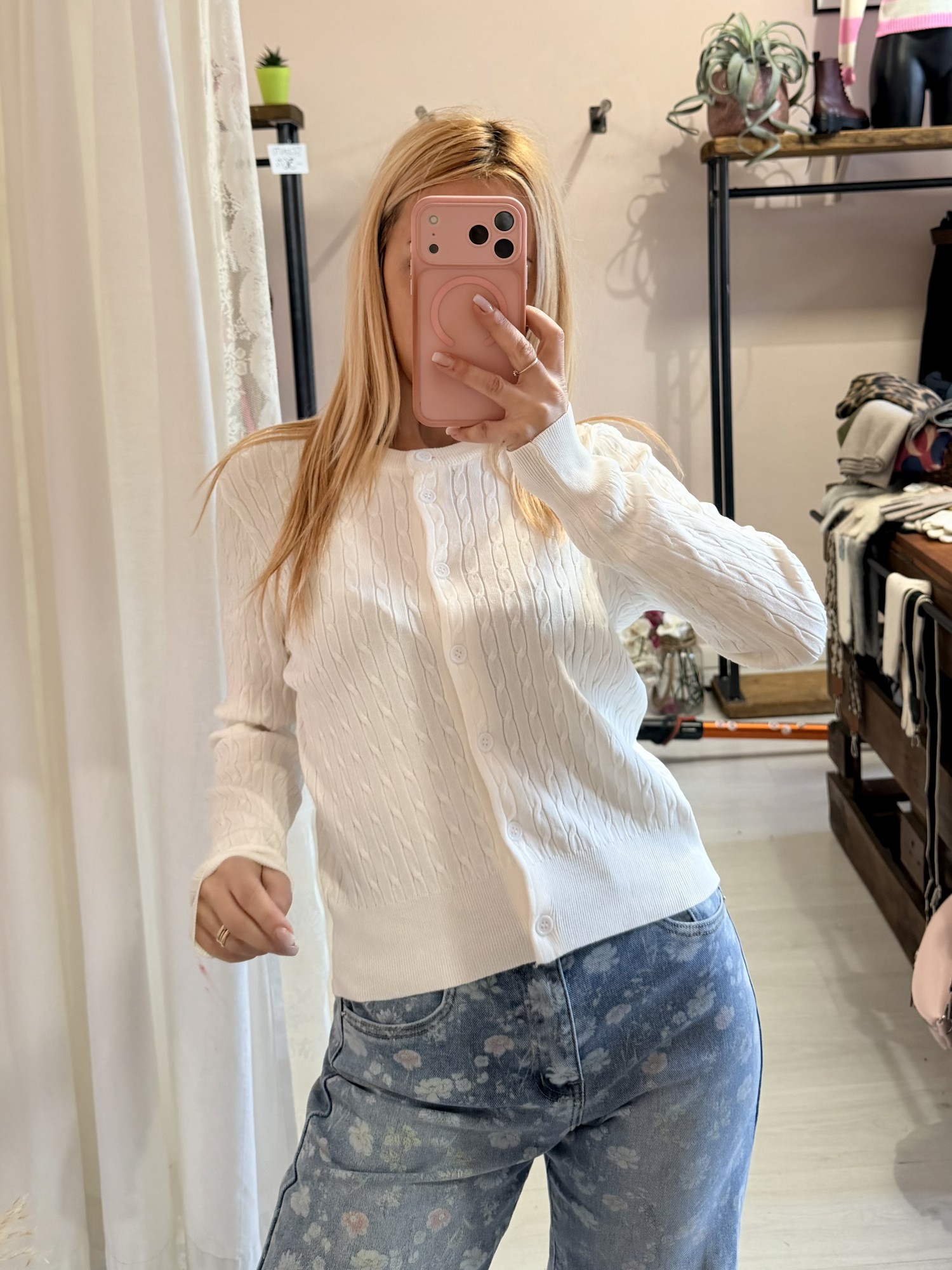 Maglioncino cardigan treccioline BIANCO