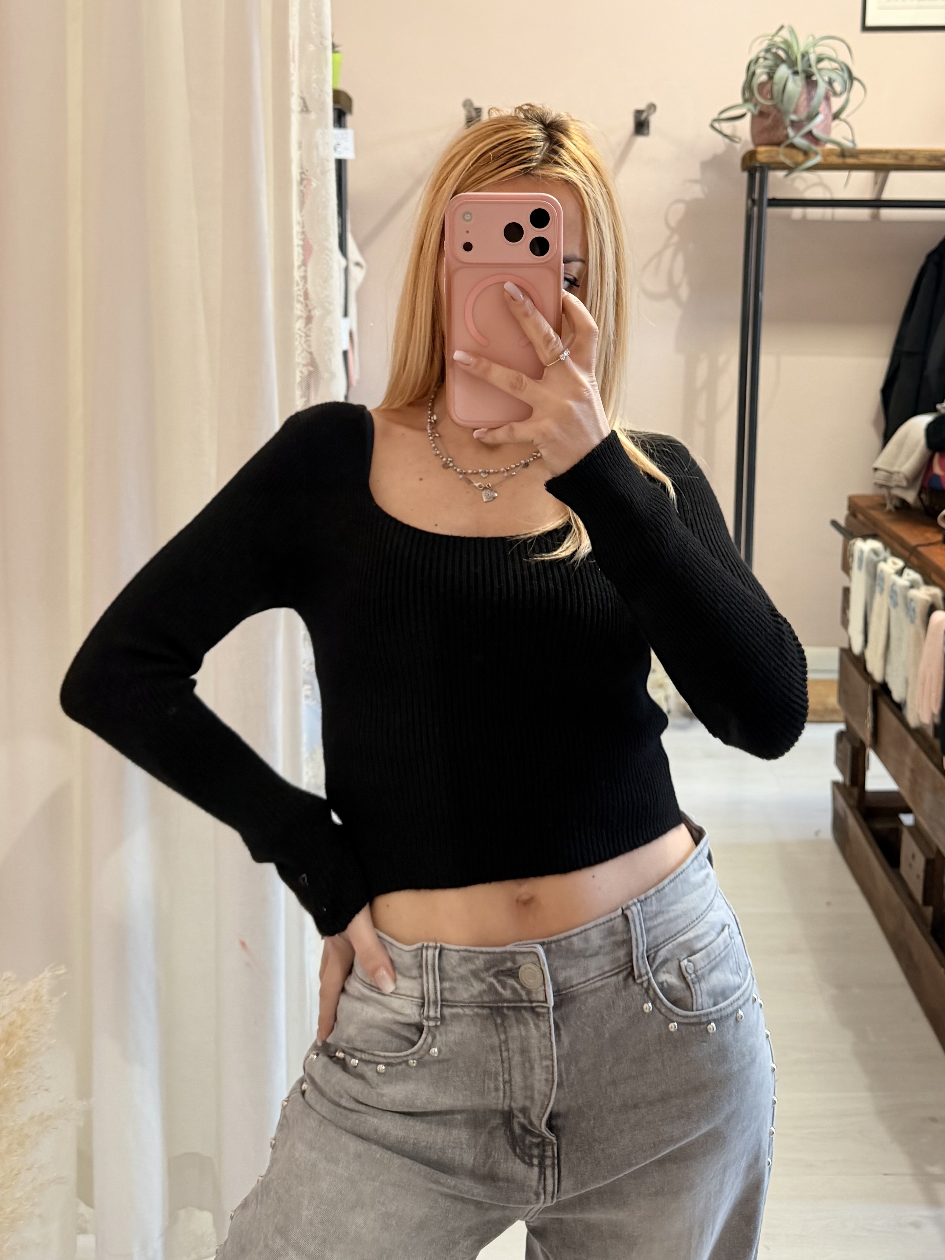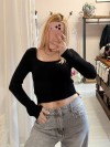 Maglioncino corto scollo quadrato nero