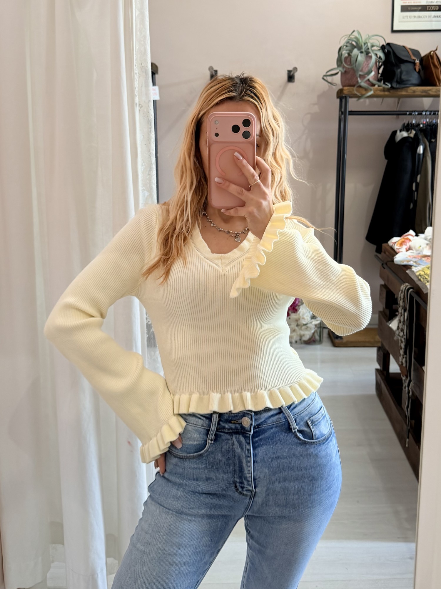 Maglioncino fru fru scollo a v giallo