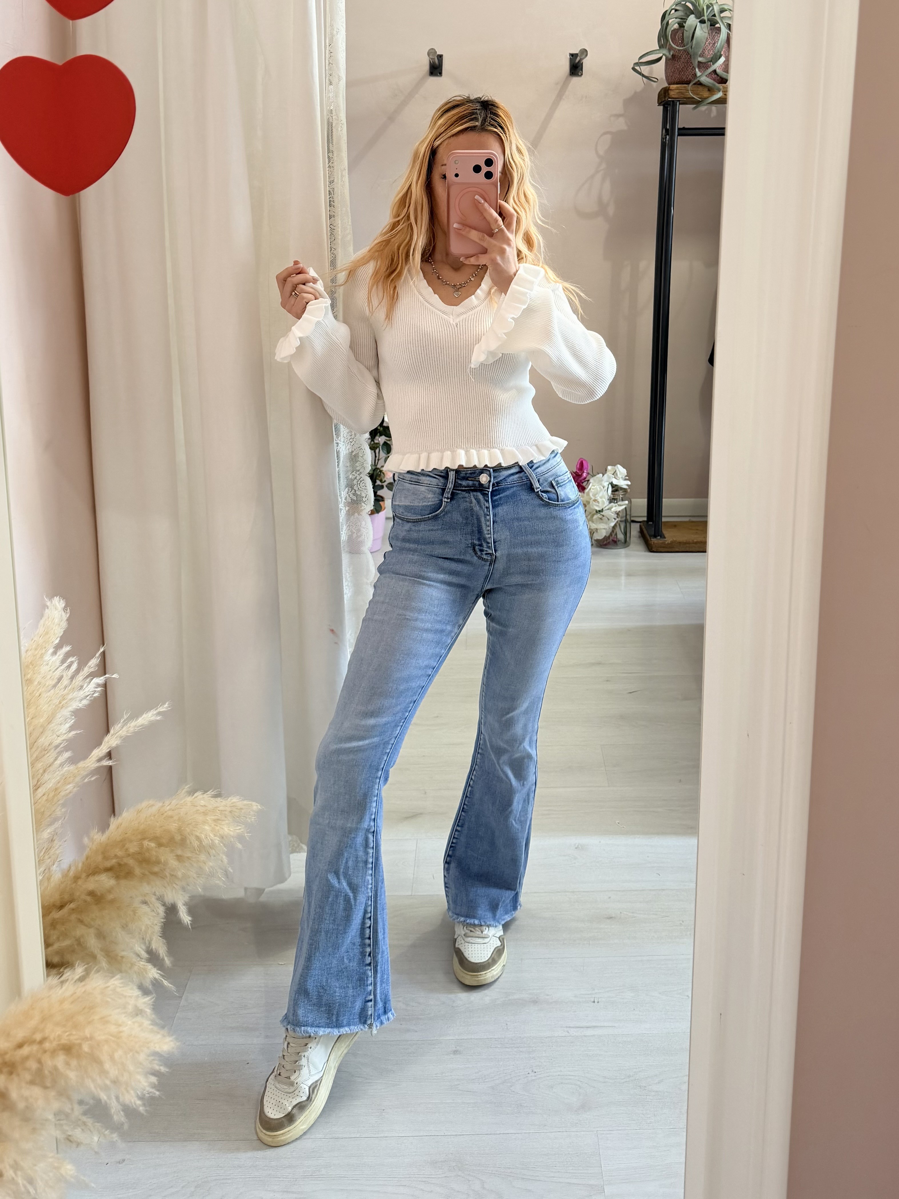 Dolce e romantico questo maglioncino con il bordino ondulato!