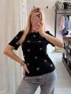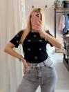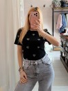 Maglia t shirt cuori strass nera