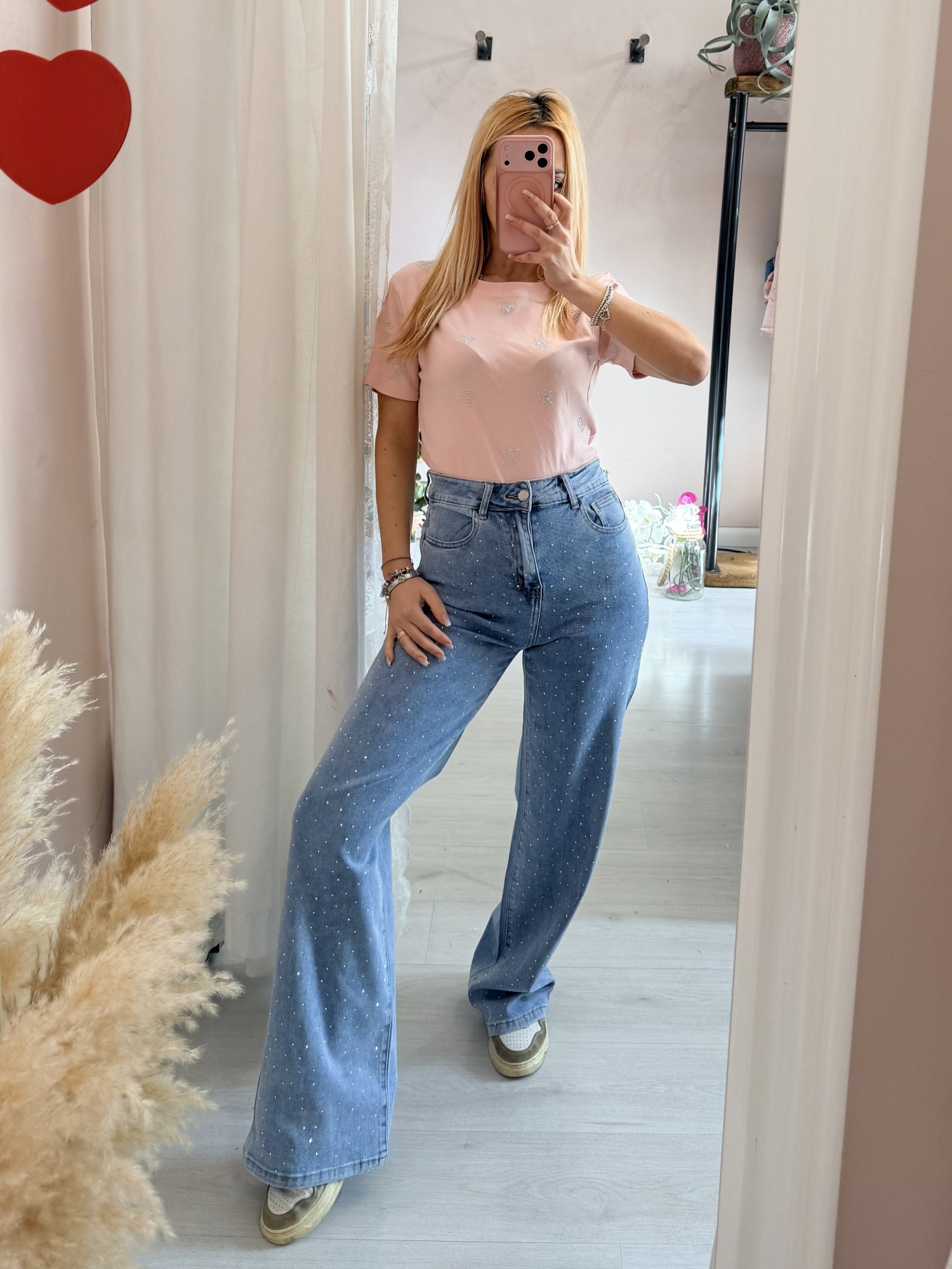 Maglia t shirt cuori strass rosa