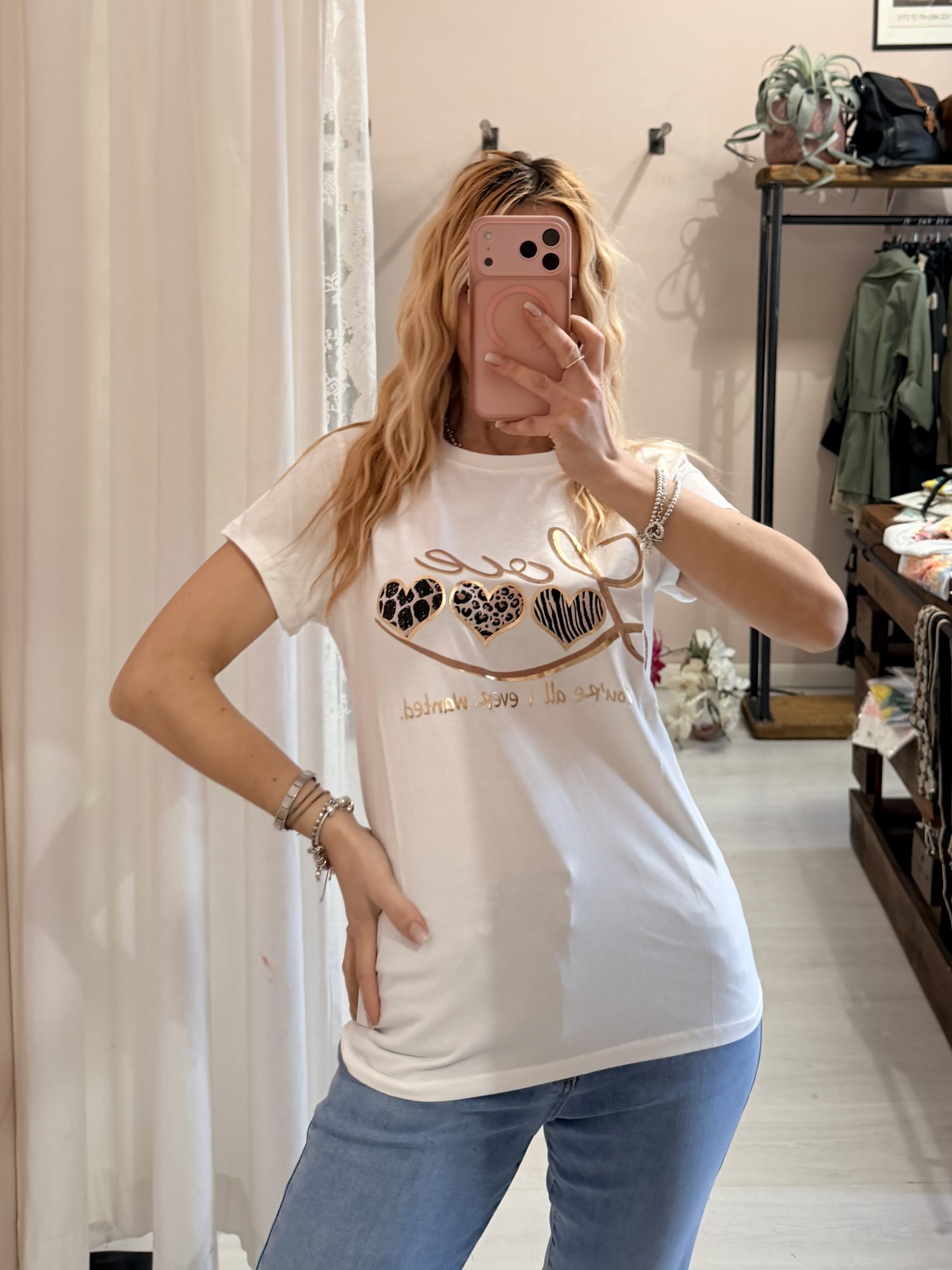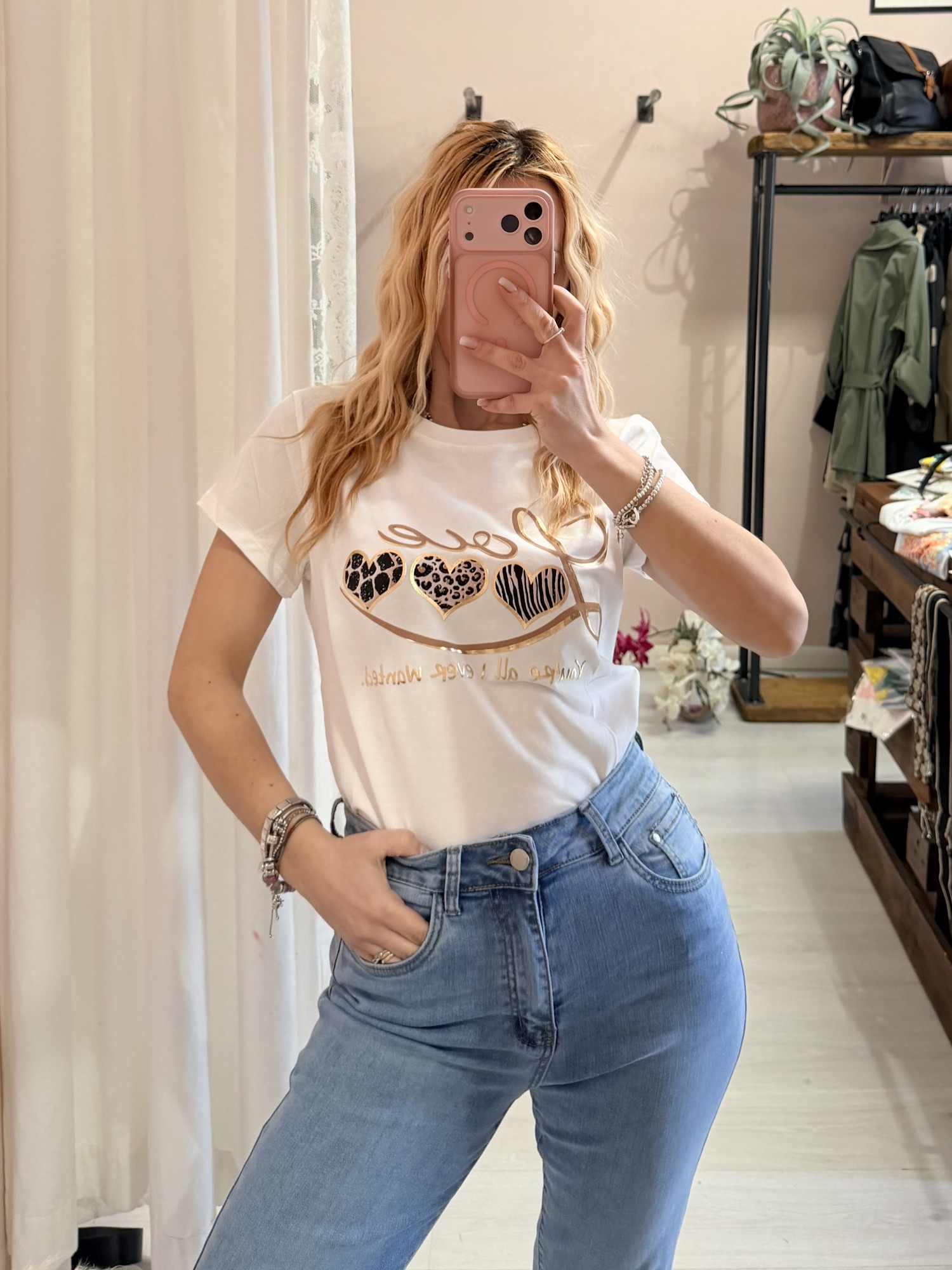 Maglia t shirt love cuori leopardati e zebrati tortota