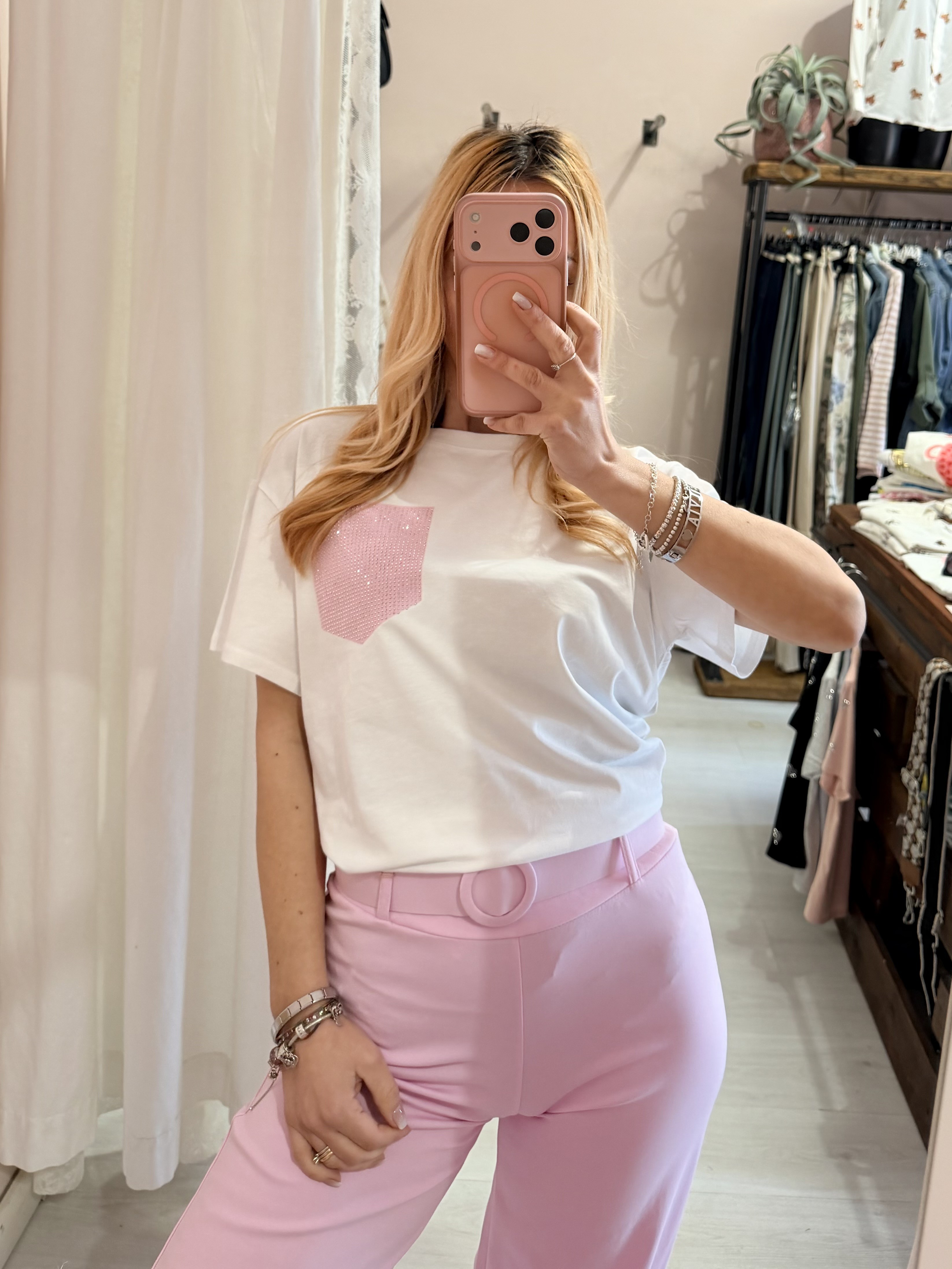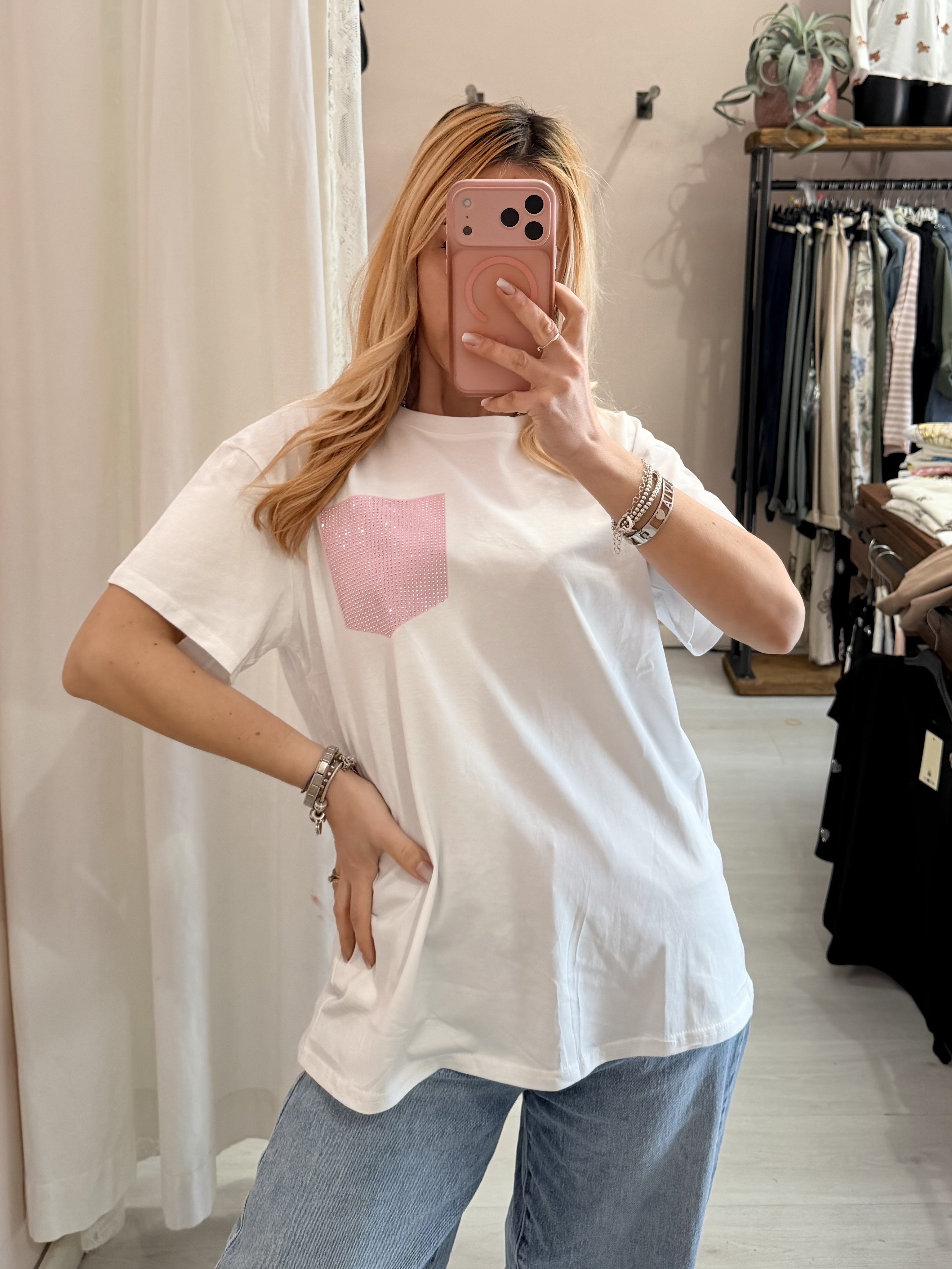 Maglia t shirt taschina strass rosa