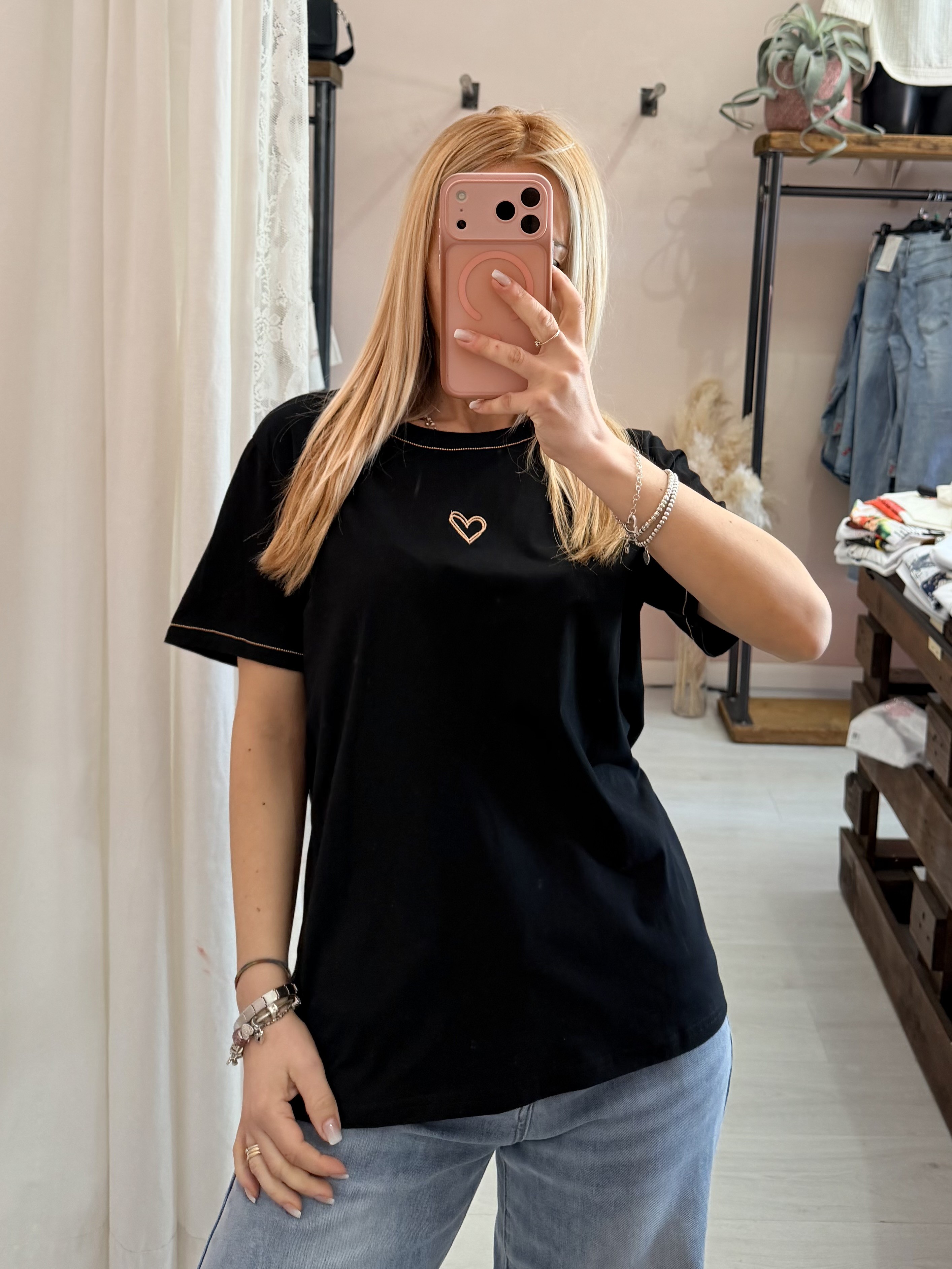 questo è un modello morbido con un cuoricino dorato ricamato centrale, e finitura al collo e alle maniche