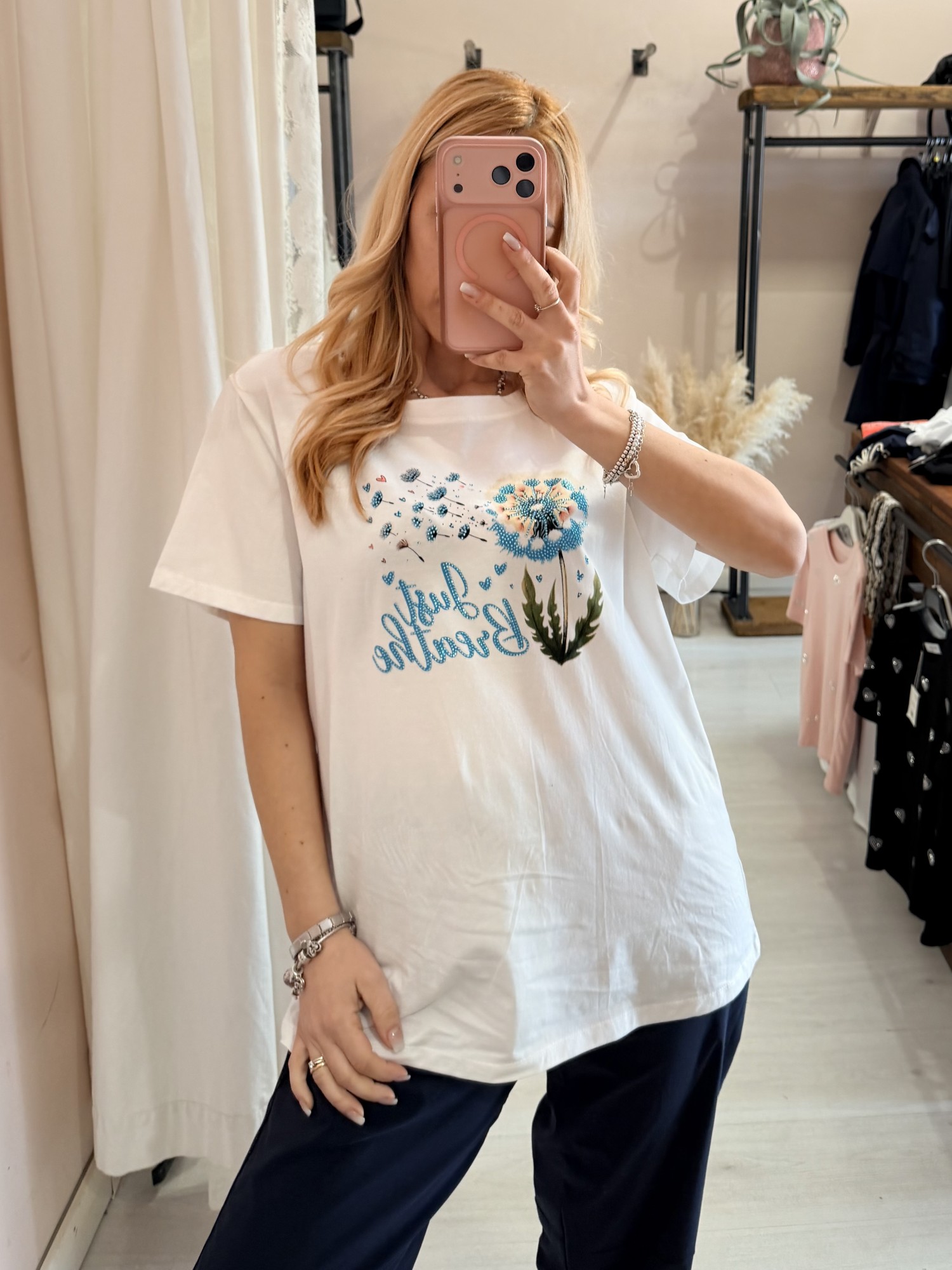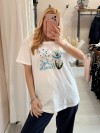 Maglia t shirt bianca soffioni blu