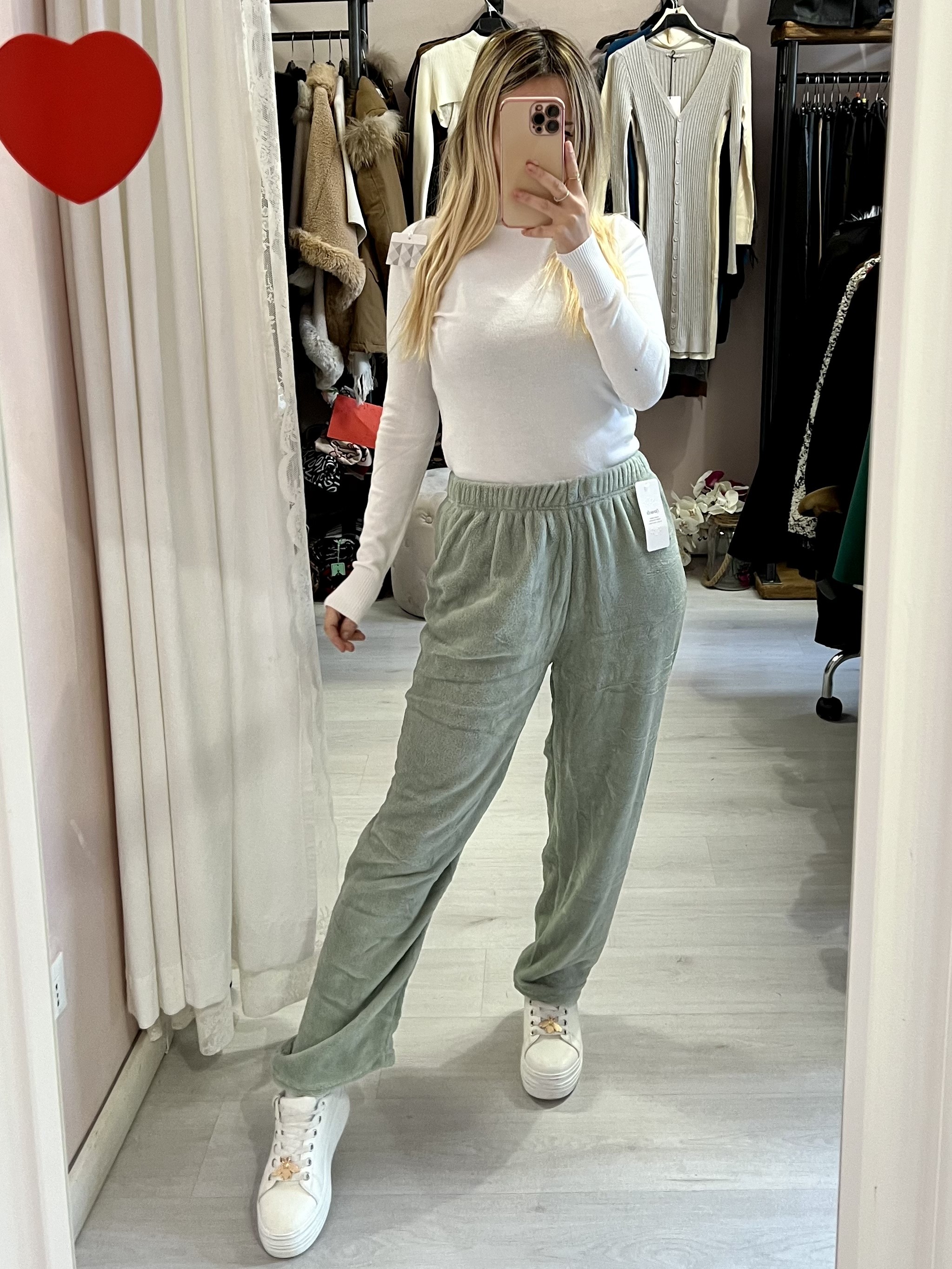 Pantaloni teddy tuta pelosini CALDI felpati verde acqua