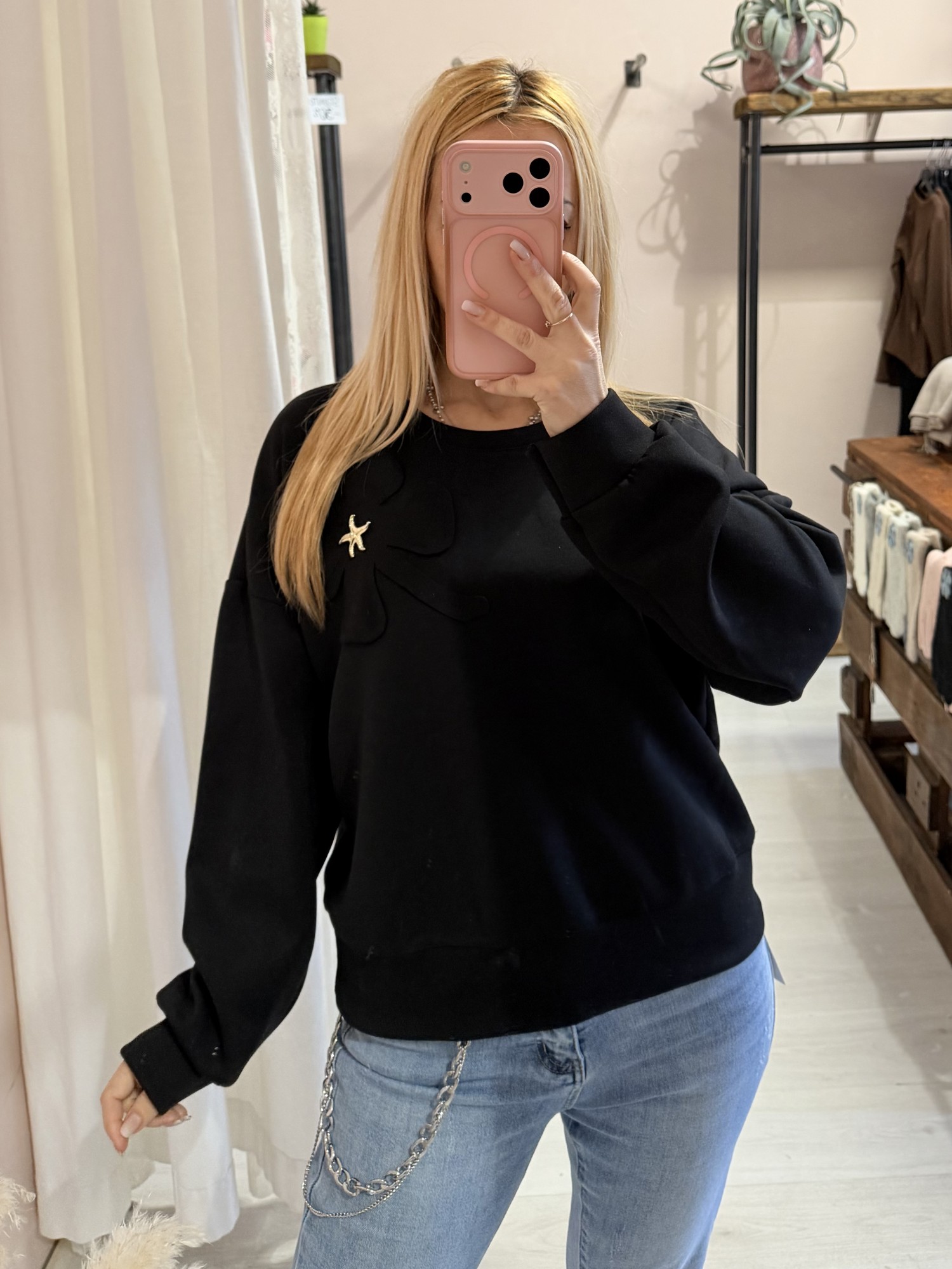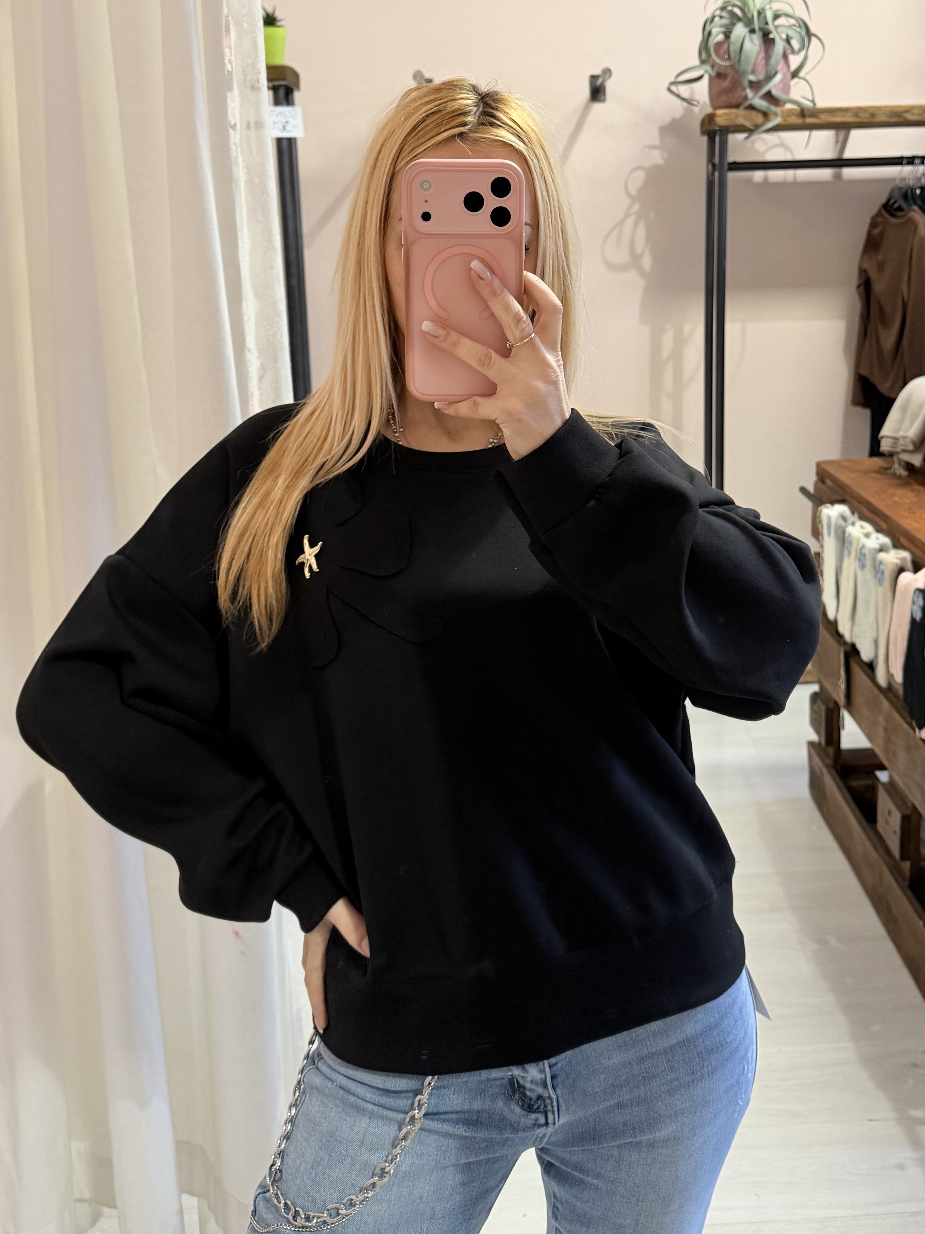 Una chicca questa felpina! con incluso un regalo, una spilla a forma di stella marina che si può togliere (oltre che per lavarla) per abbinarla su altri capi!