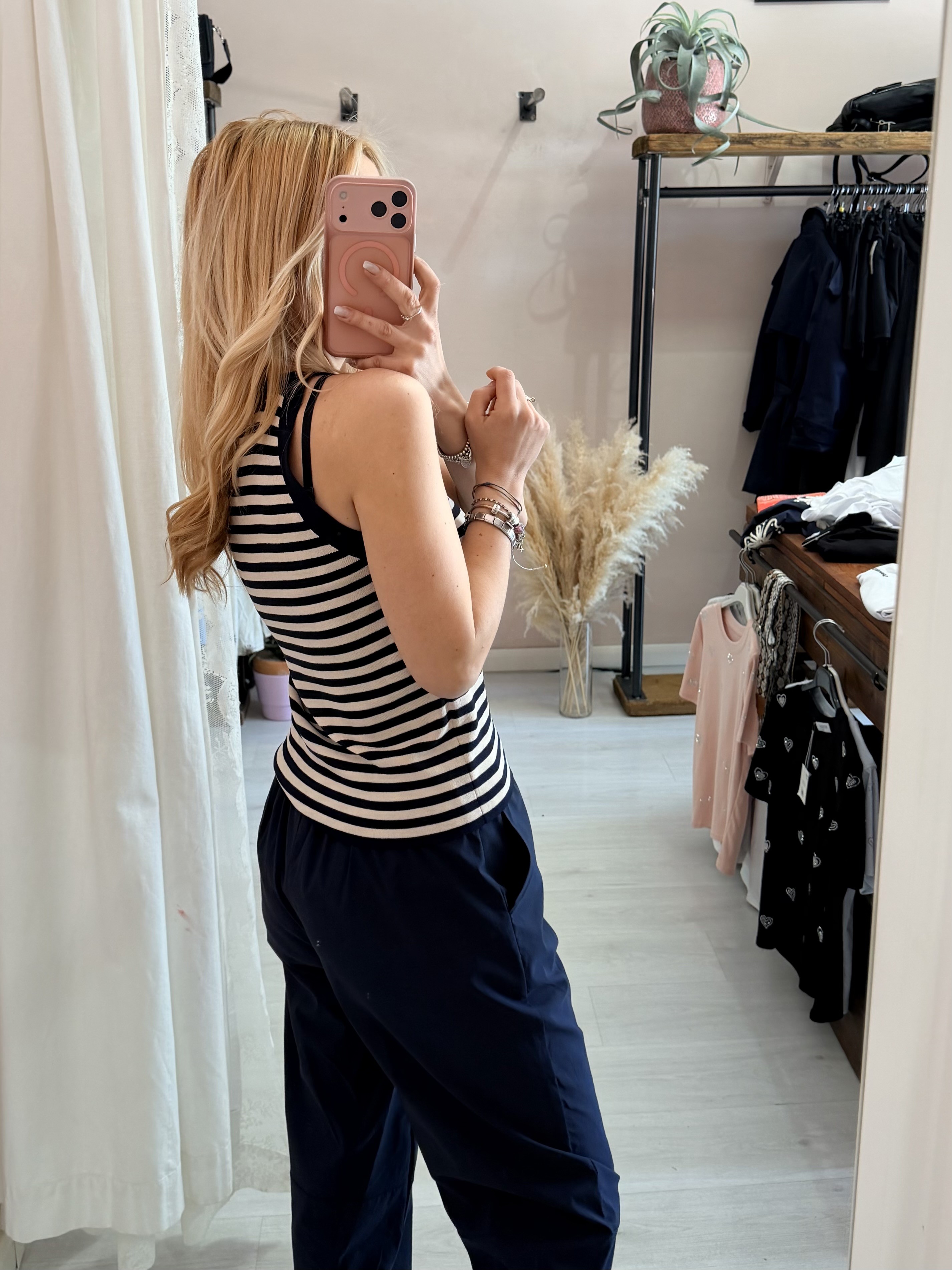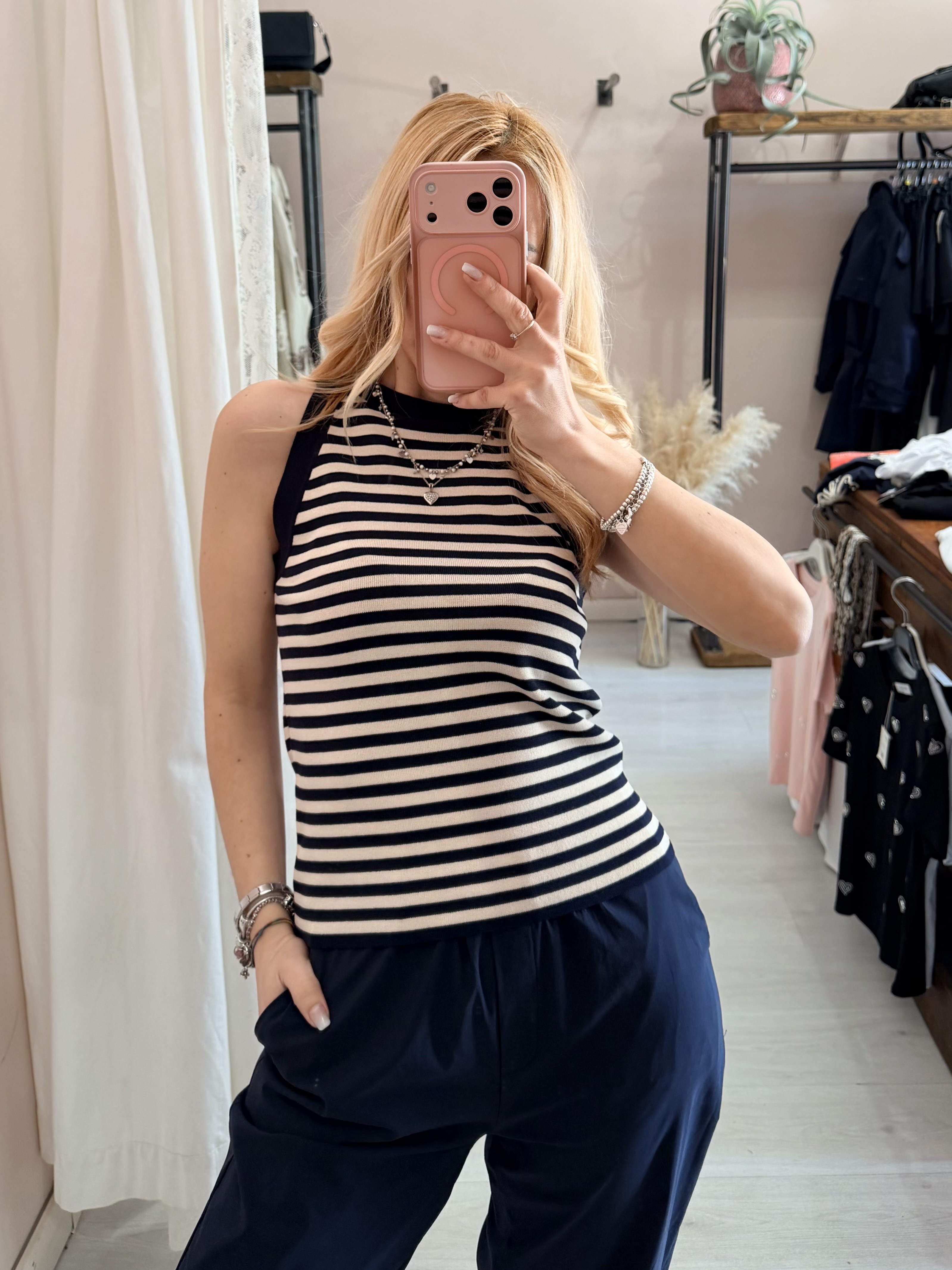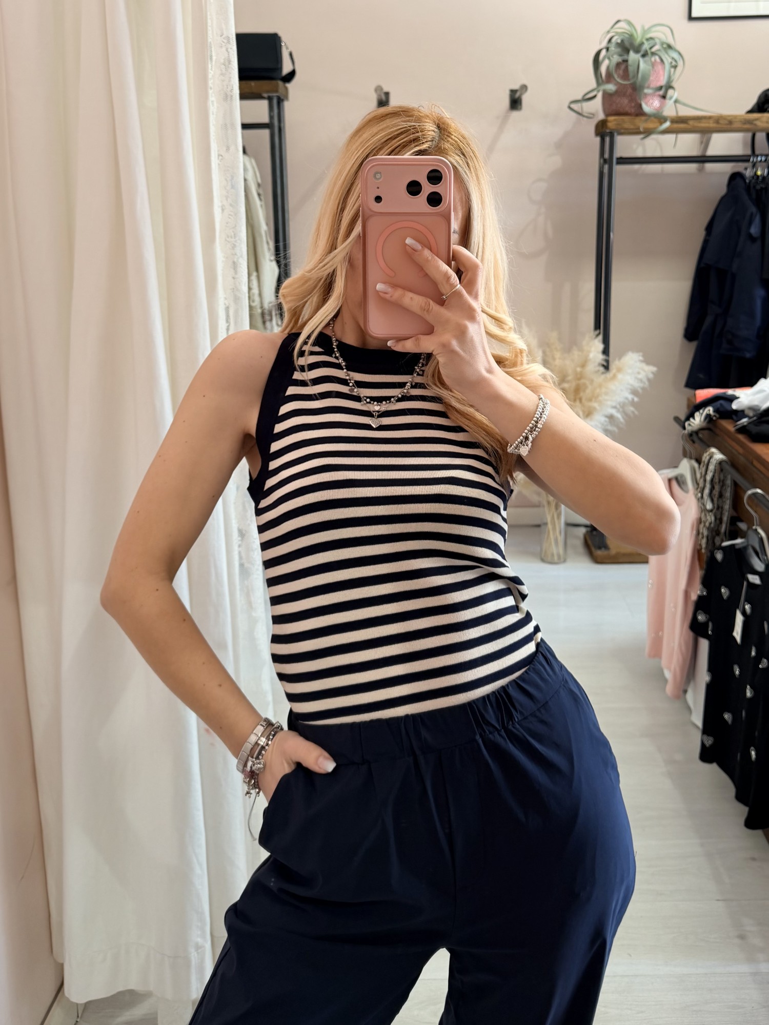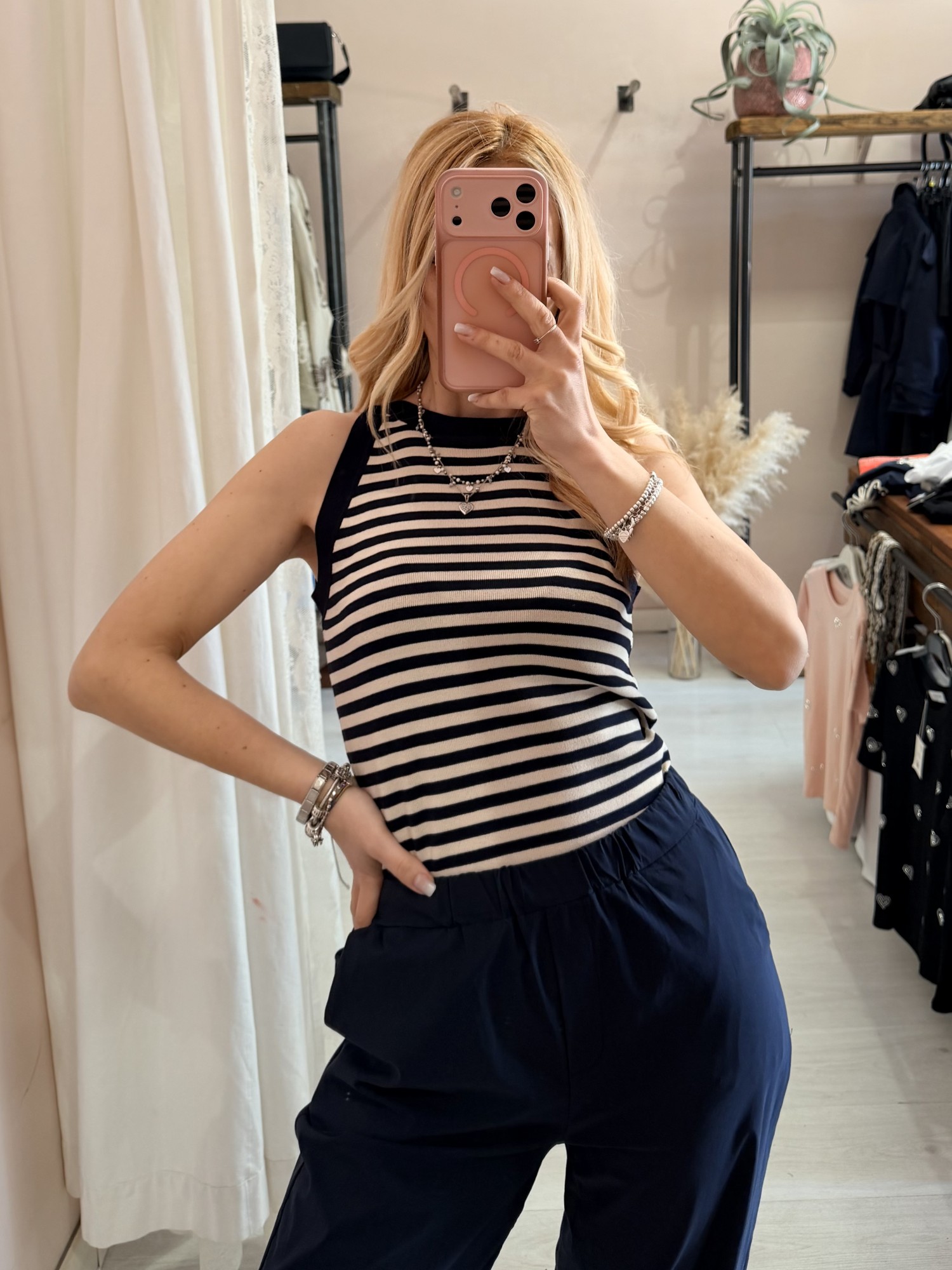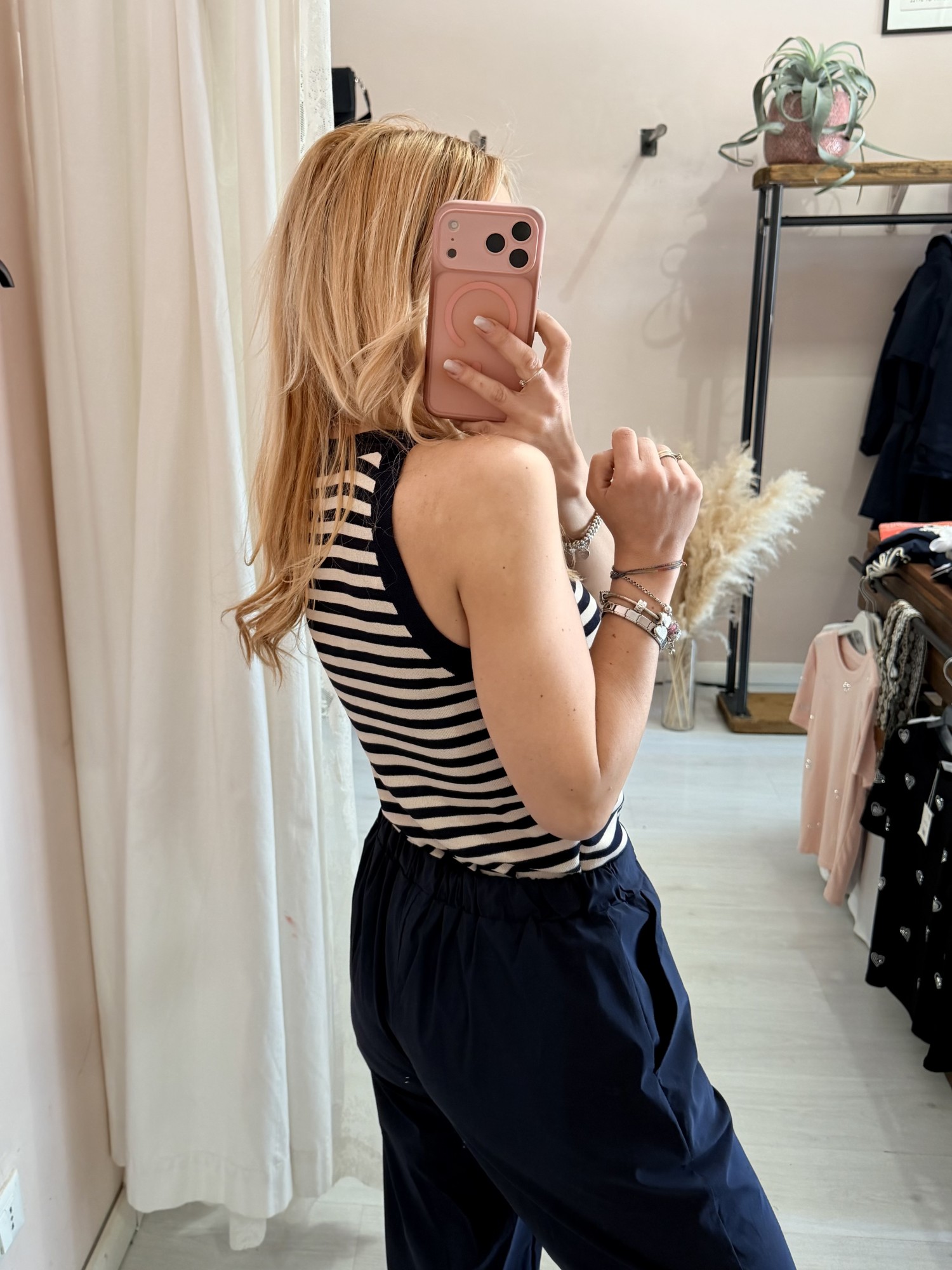 Queta canottierina è unica ed originale, a righe dal tessuto elasticizzato