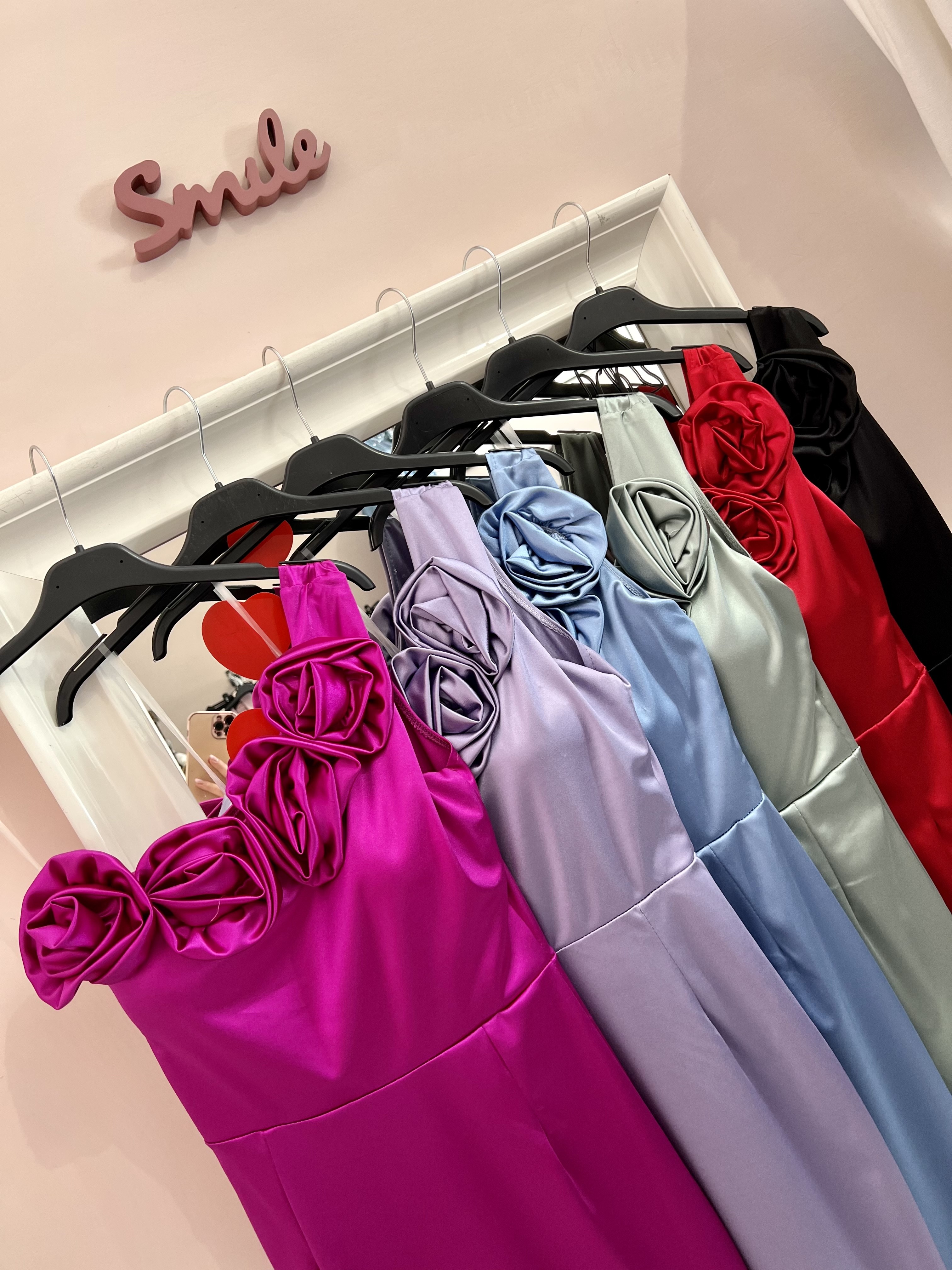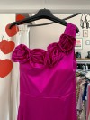 Vestito midi in raso monospalla