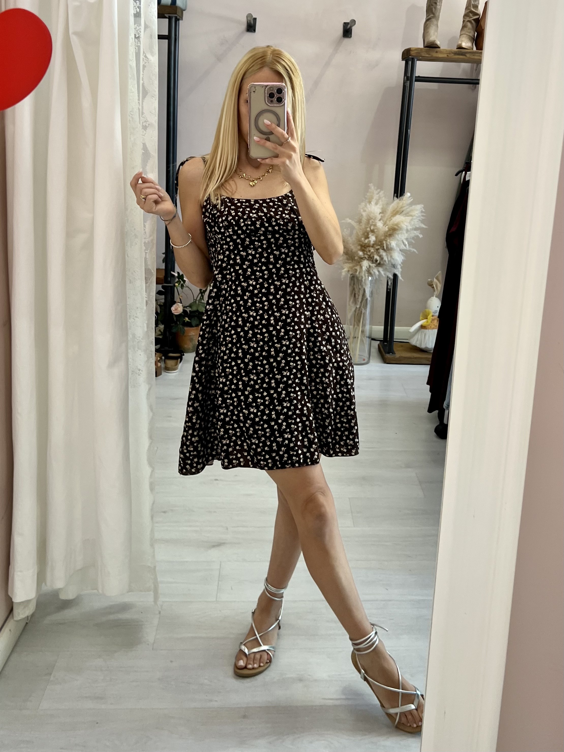 Vestito VENERE fiorellini marrone