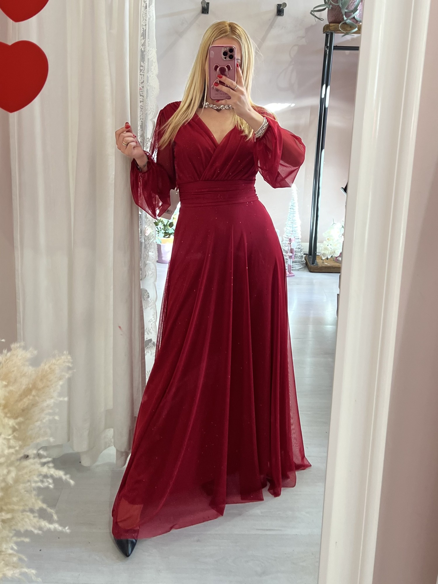 Vestito lungo in chiffon luccicante BORDEAUX