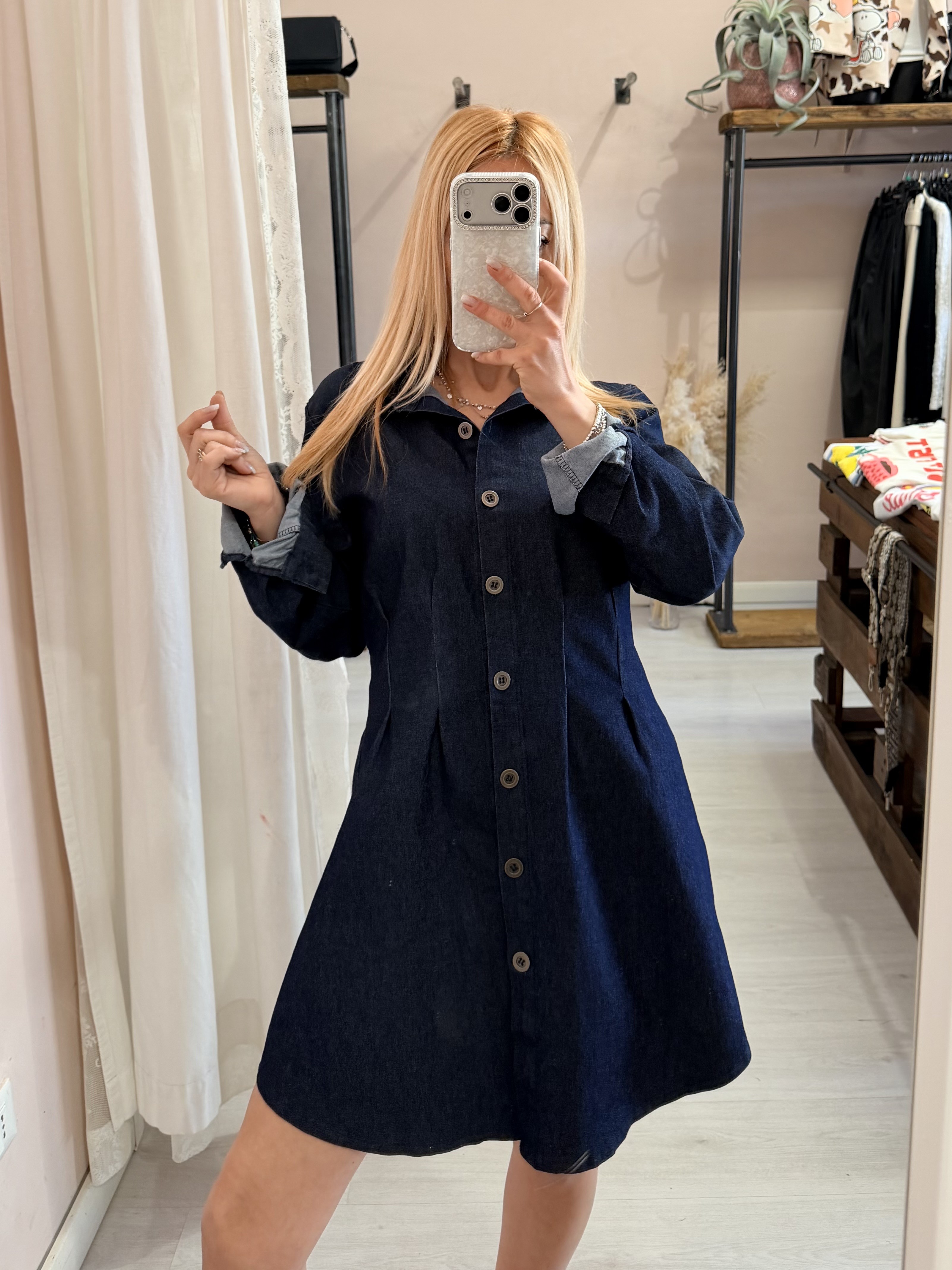 Vestito camicione simil jeans in cotone