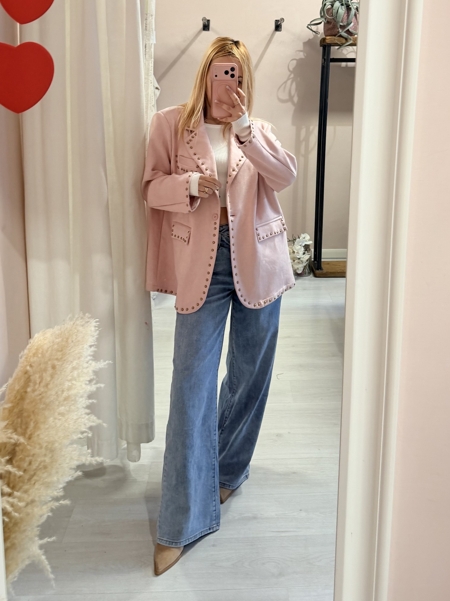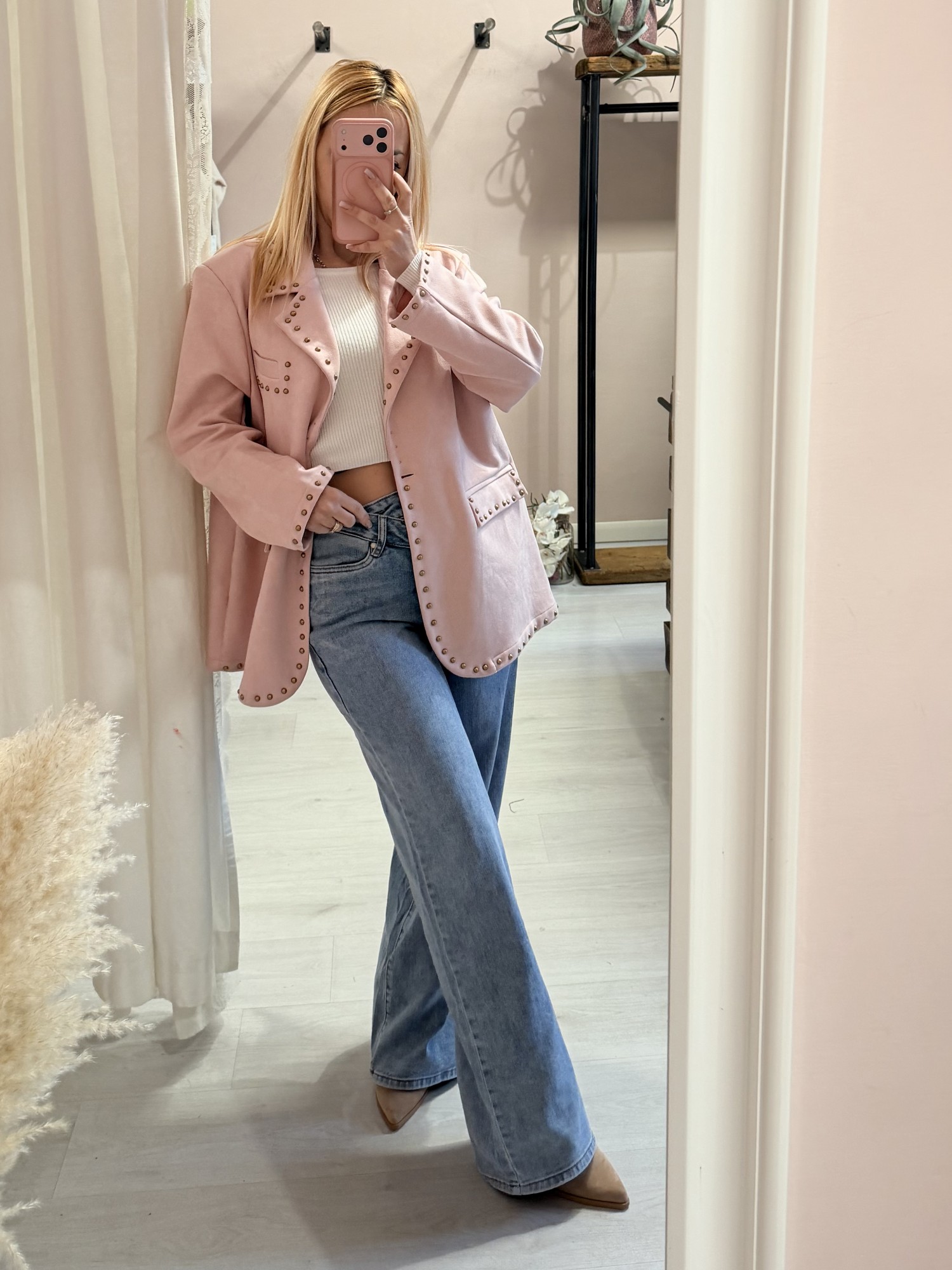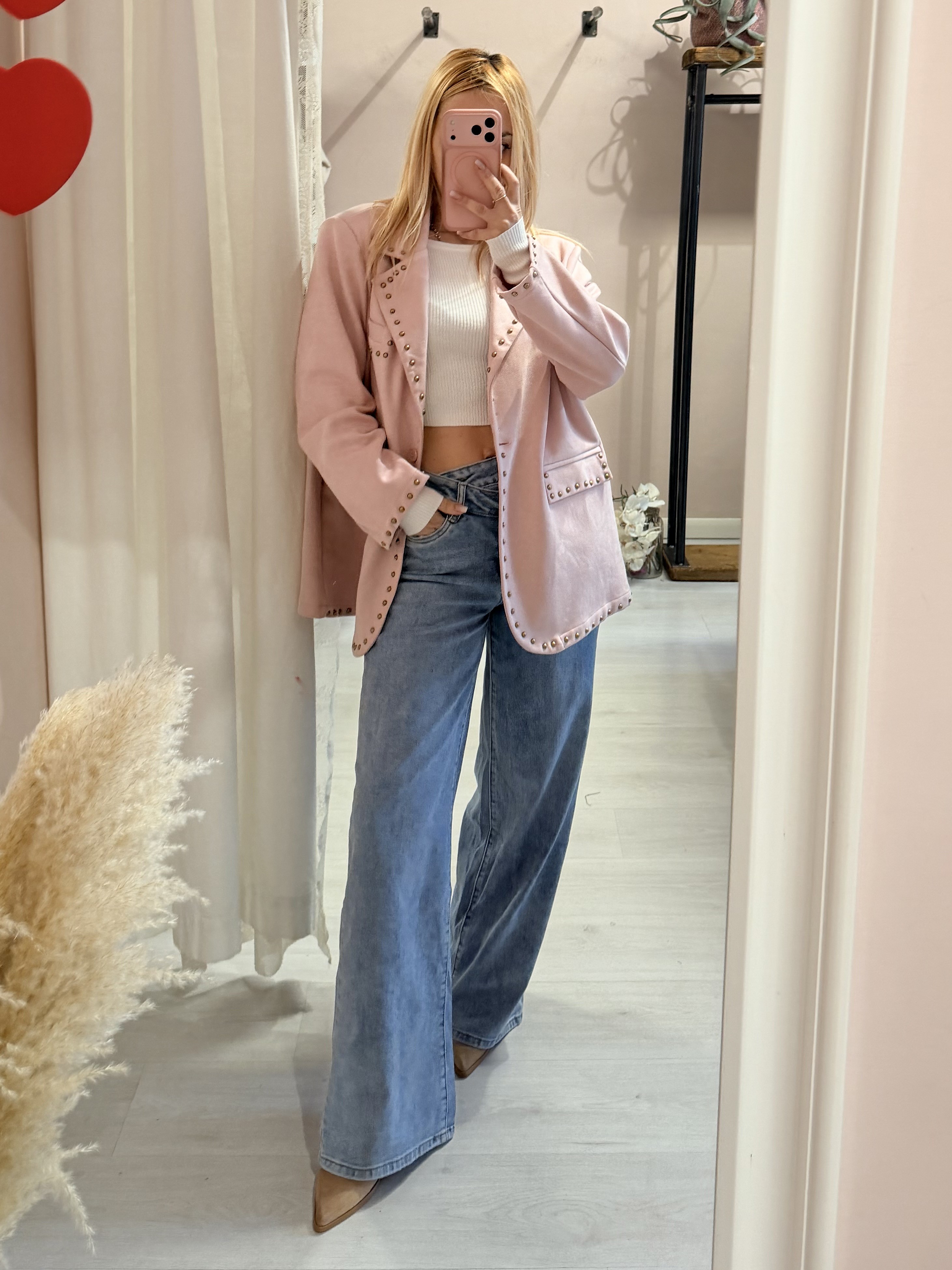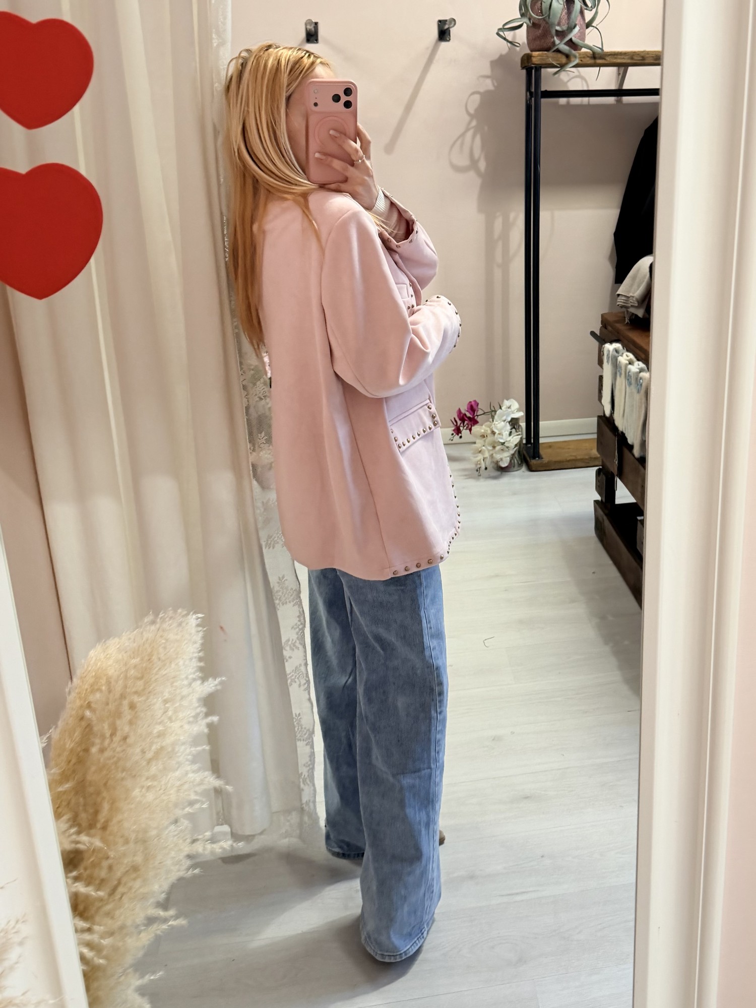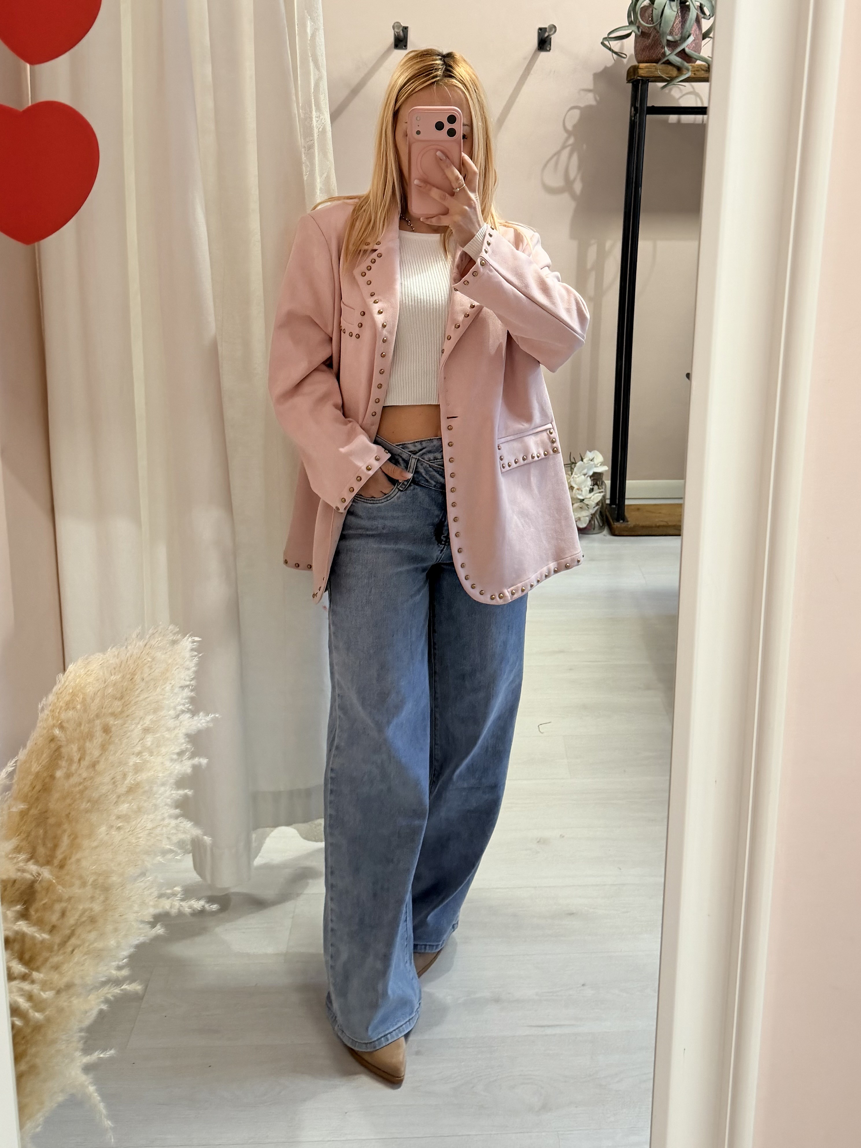 Giacca camoscino ROSA con borchiette