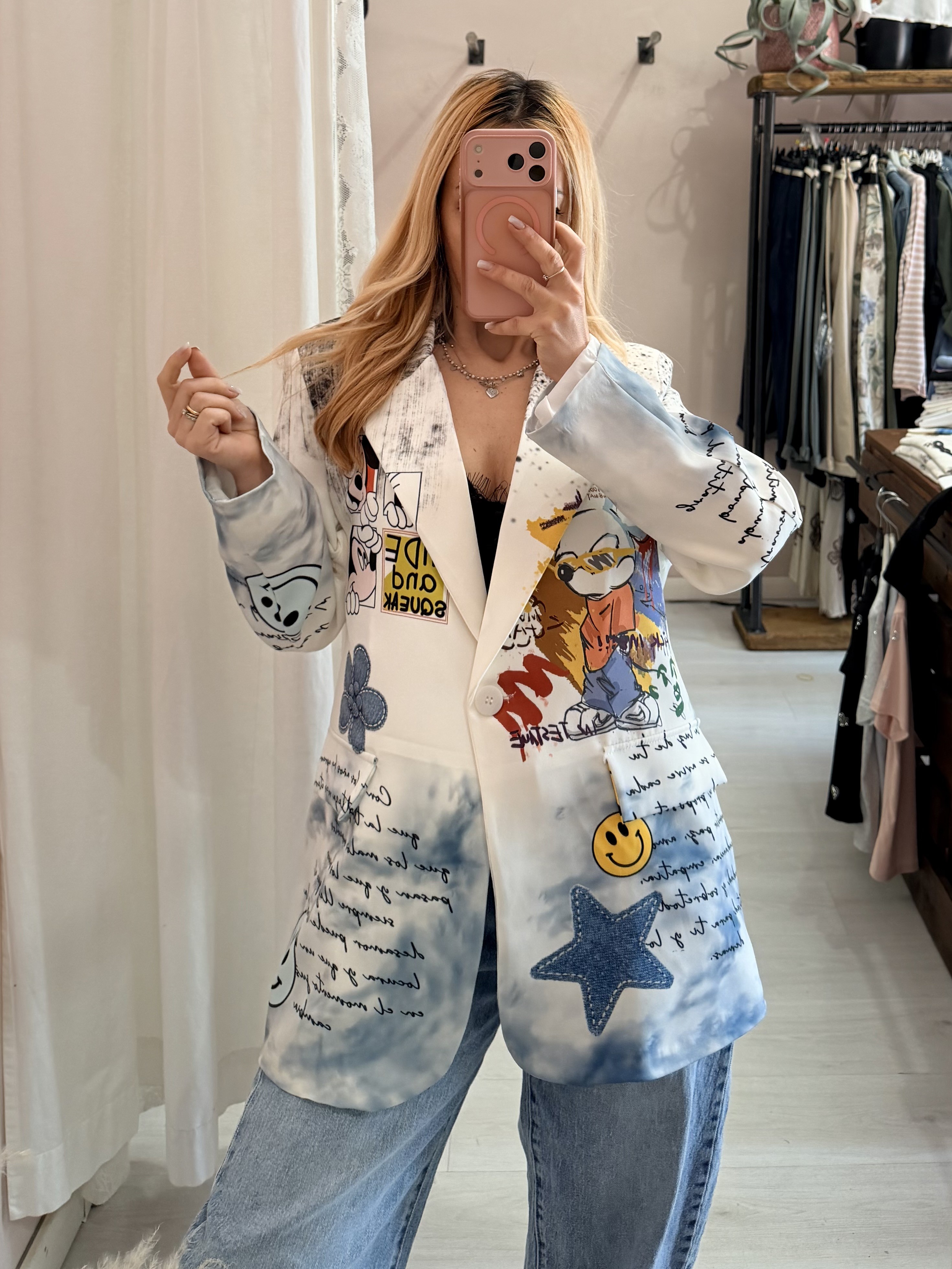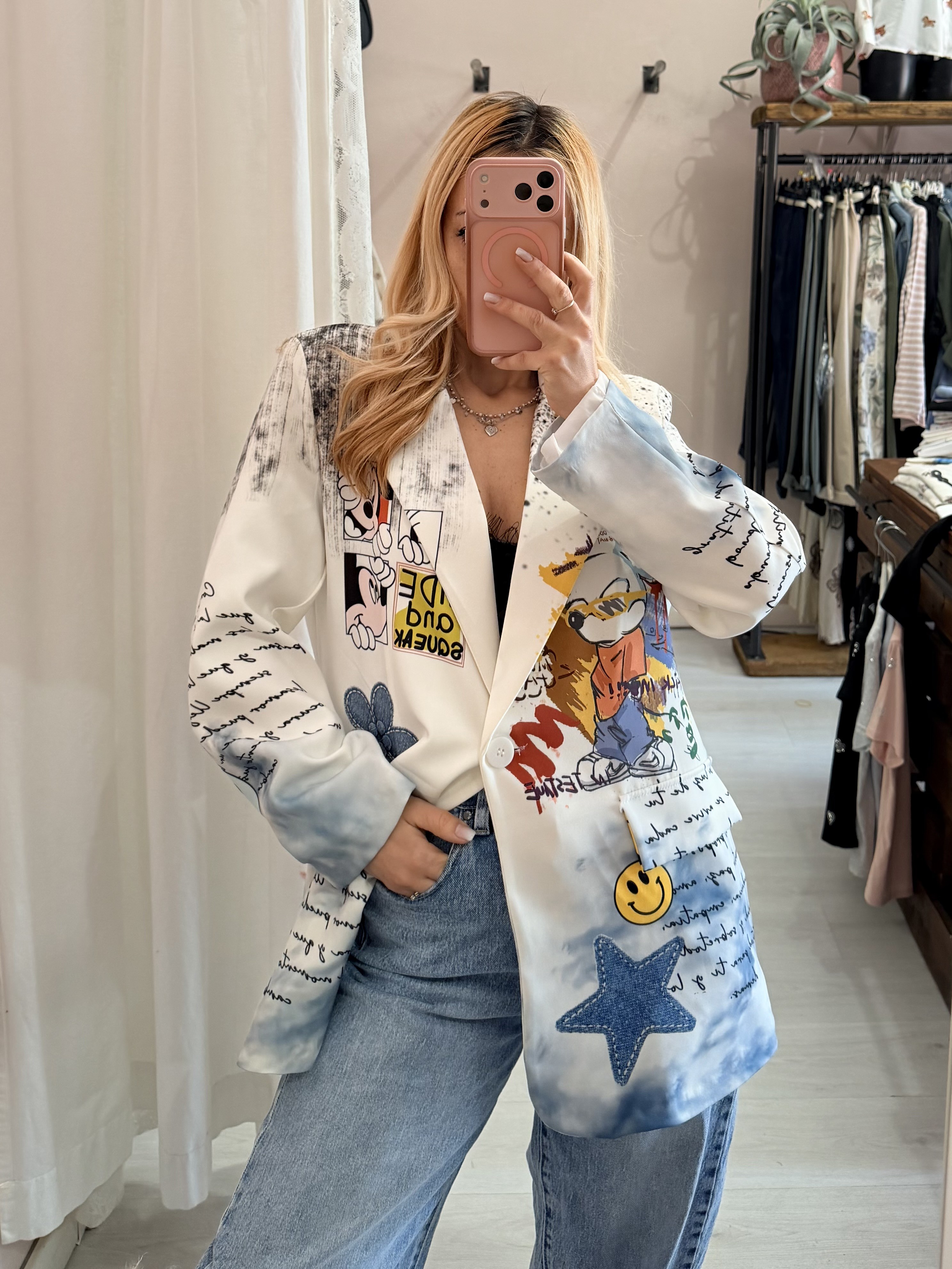 Bellissimo blazer particolare ed unico ! a fantasia co n i simpatici topolinI!
