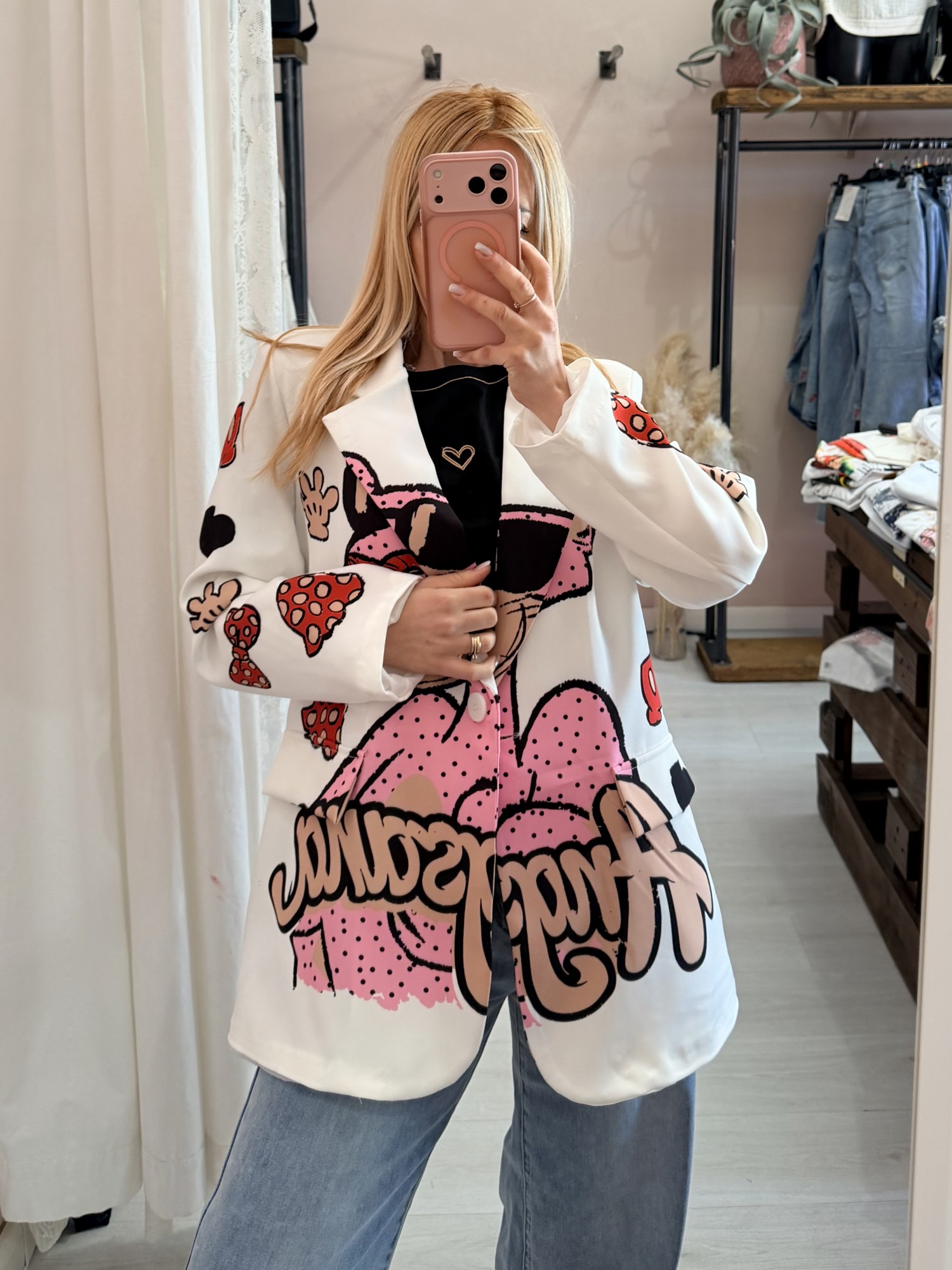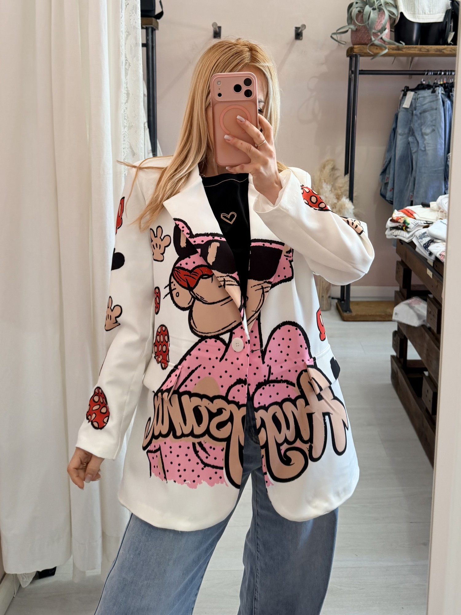 Bellissimo blazer particolare ed unico ! a fantasia co n i simpatici topolinI!