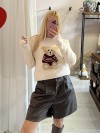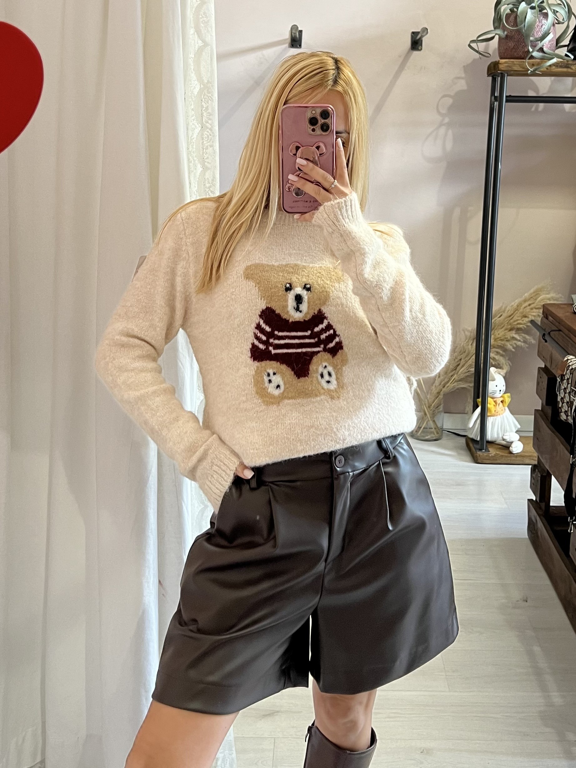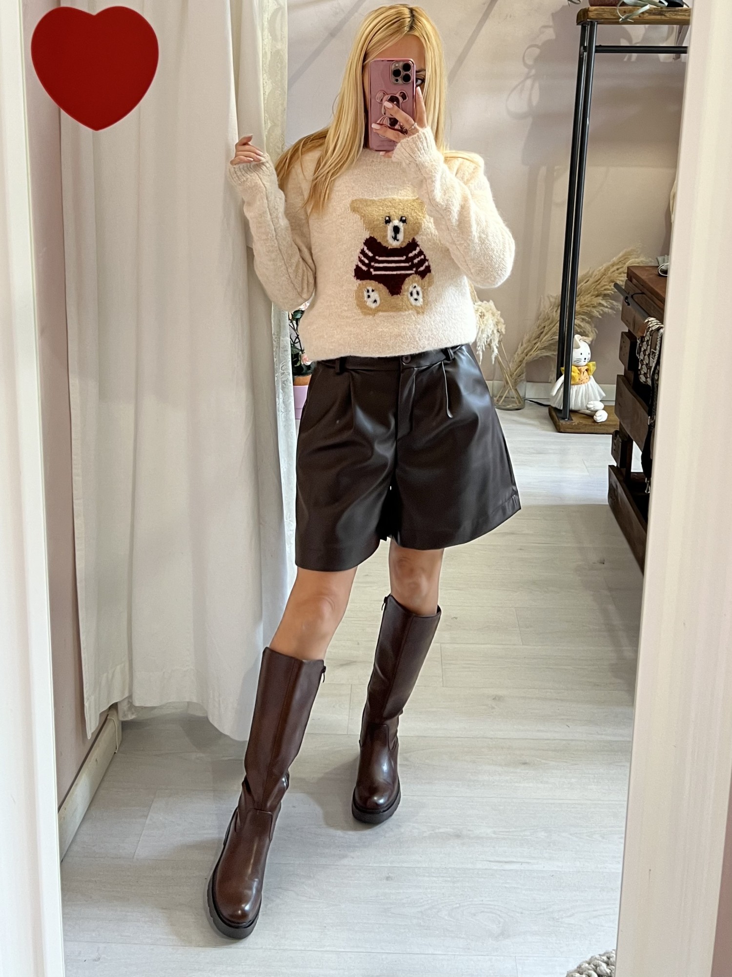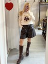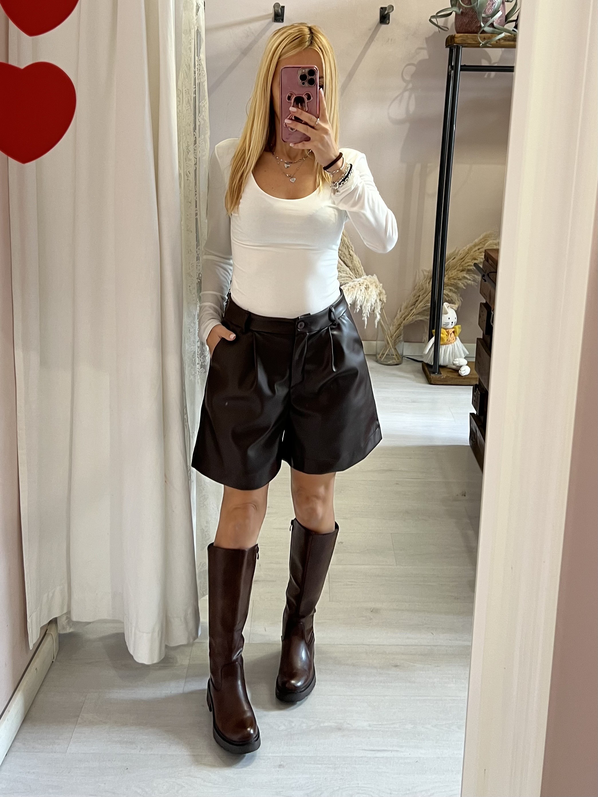 Pantaloncino in pelle a vita lata, chiusura con bottoncino e zip