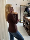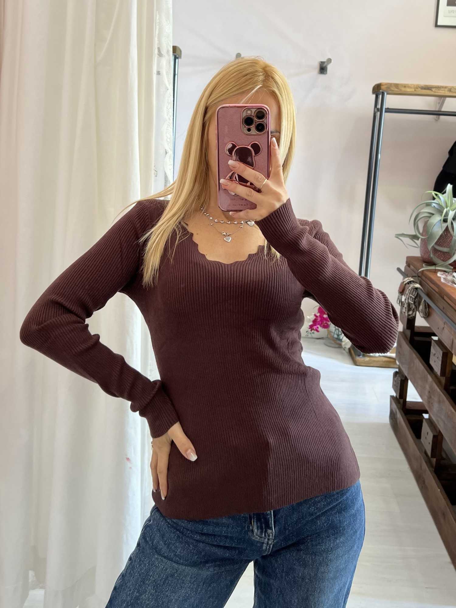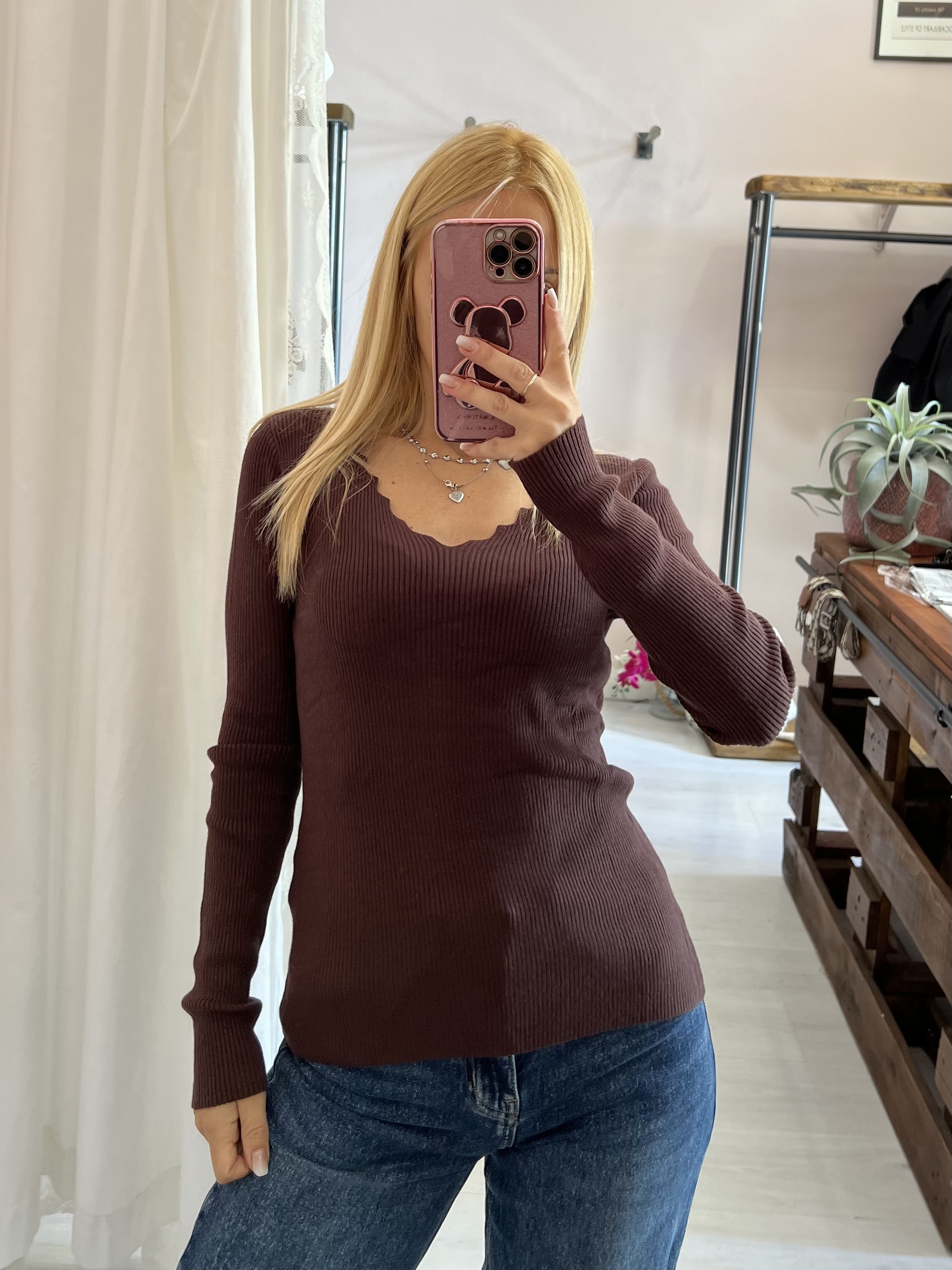 Maglioncino a costine con scollo a V ondulato