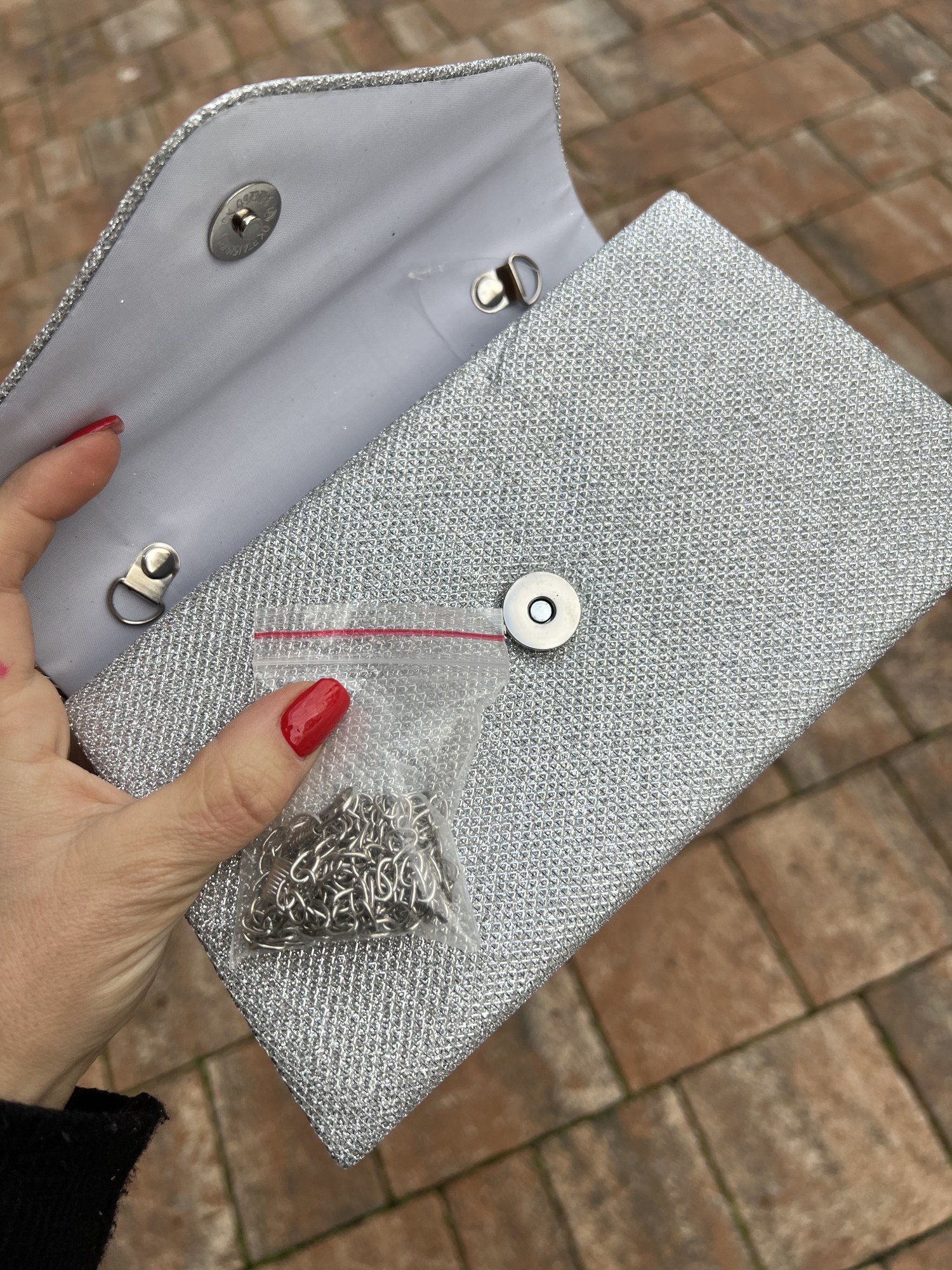 puoi indossarla a mano o tracolla CON CATENELLA
