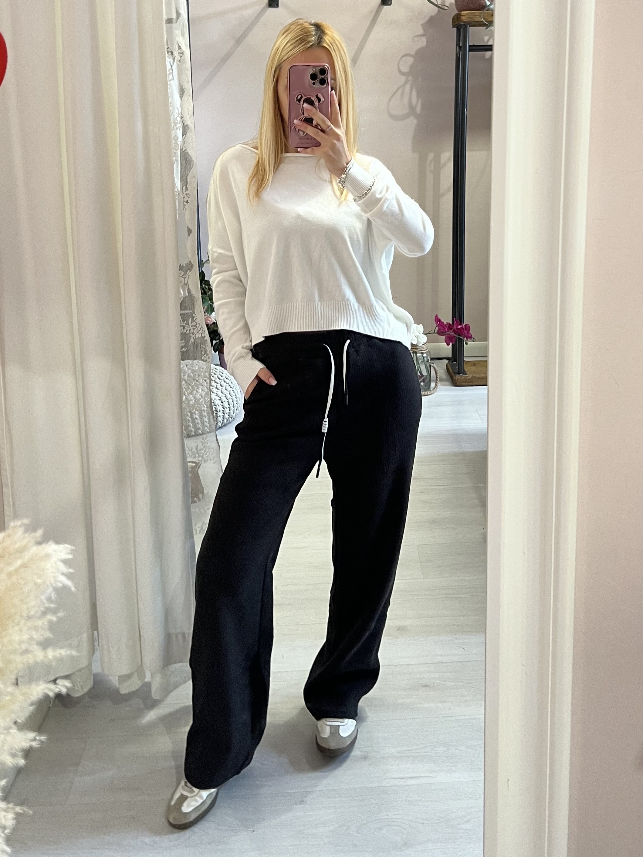 Elastico in vita con laccino regolabile - ha le tasche