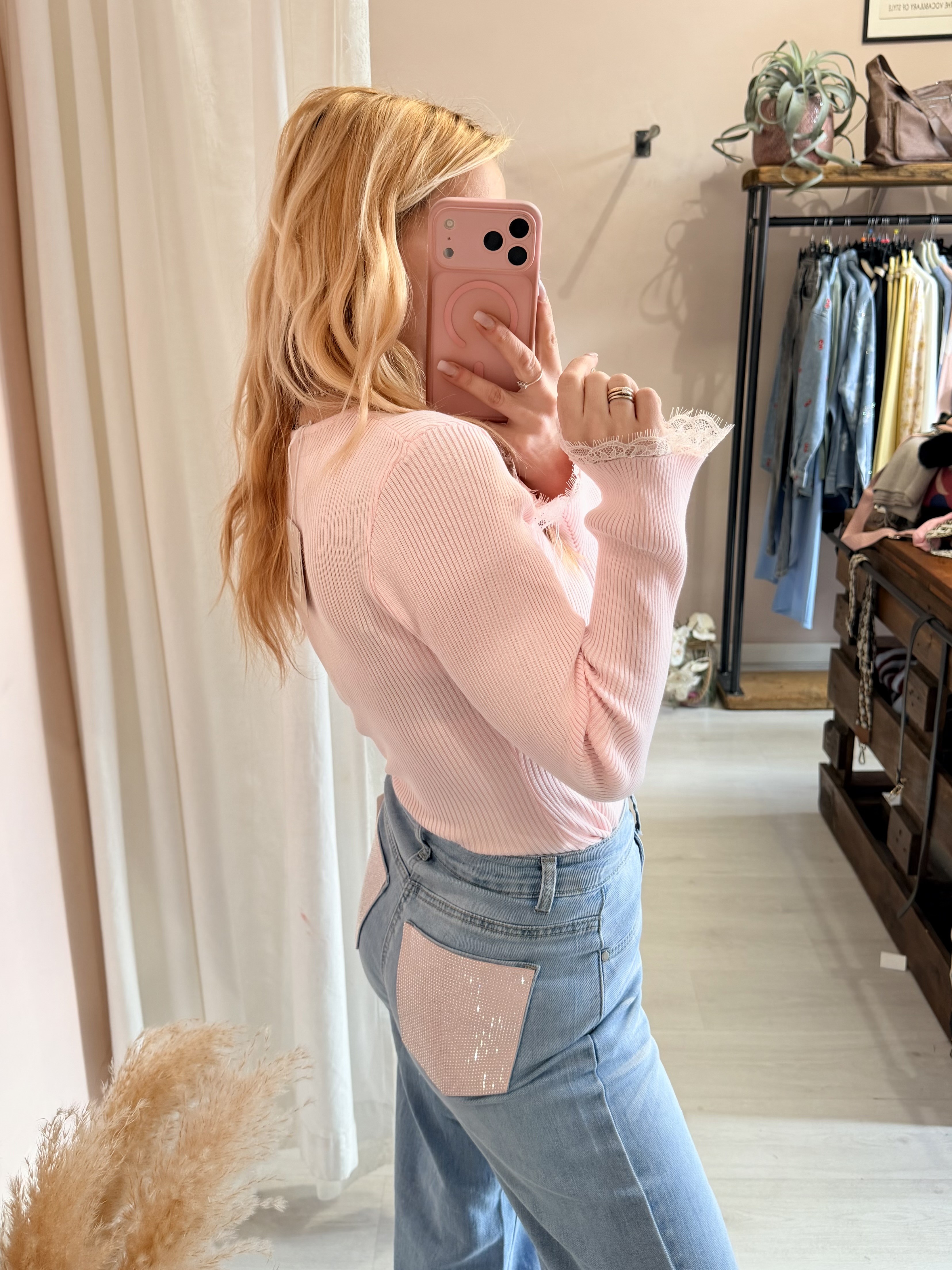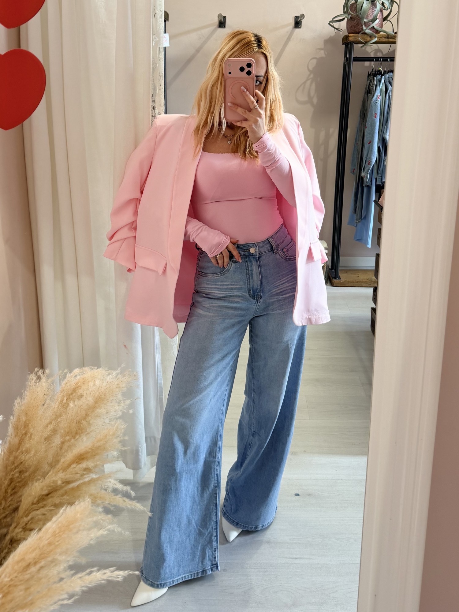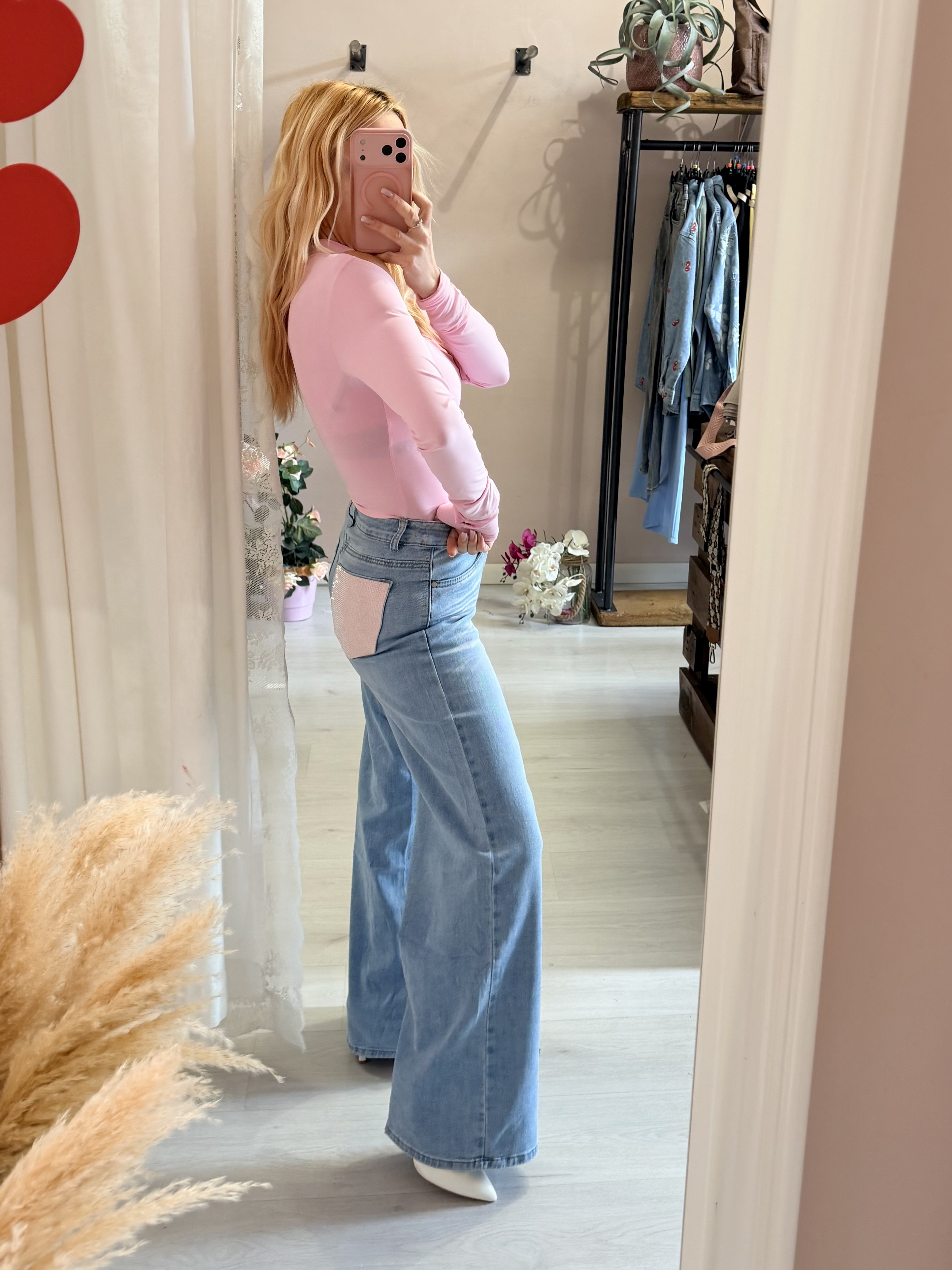 L’iconico denim si accende di luce: scopri i nostri Jeans Wide Leg con strass rosa.