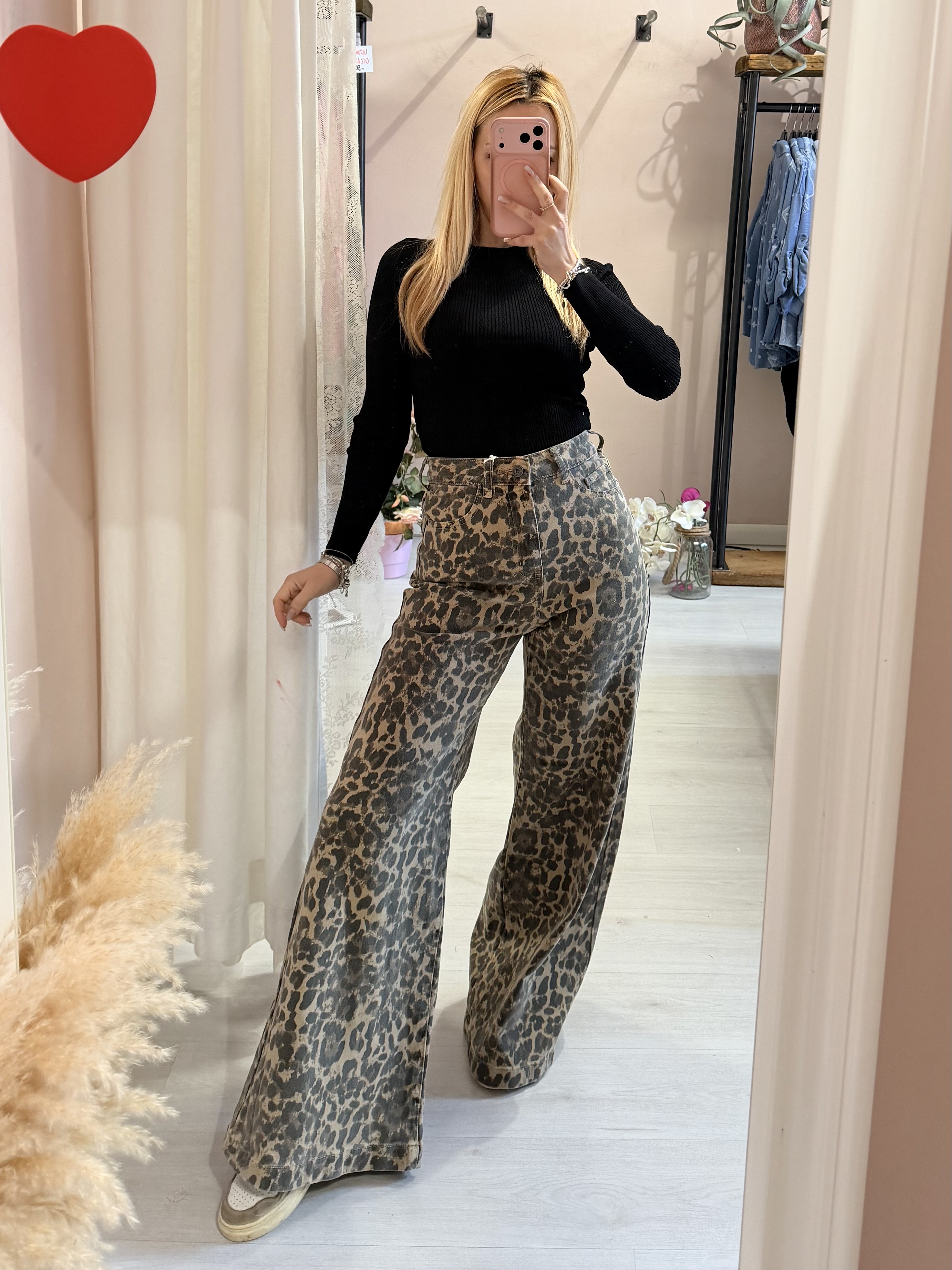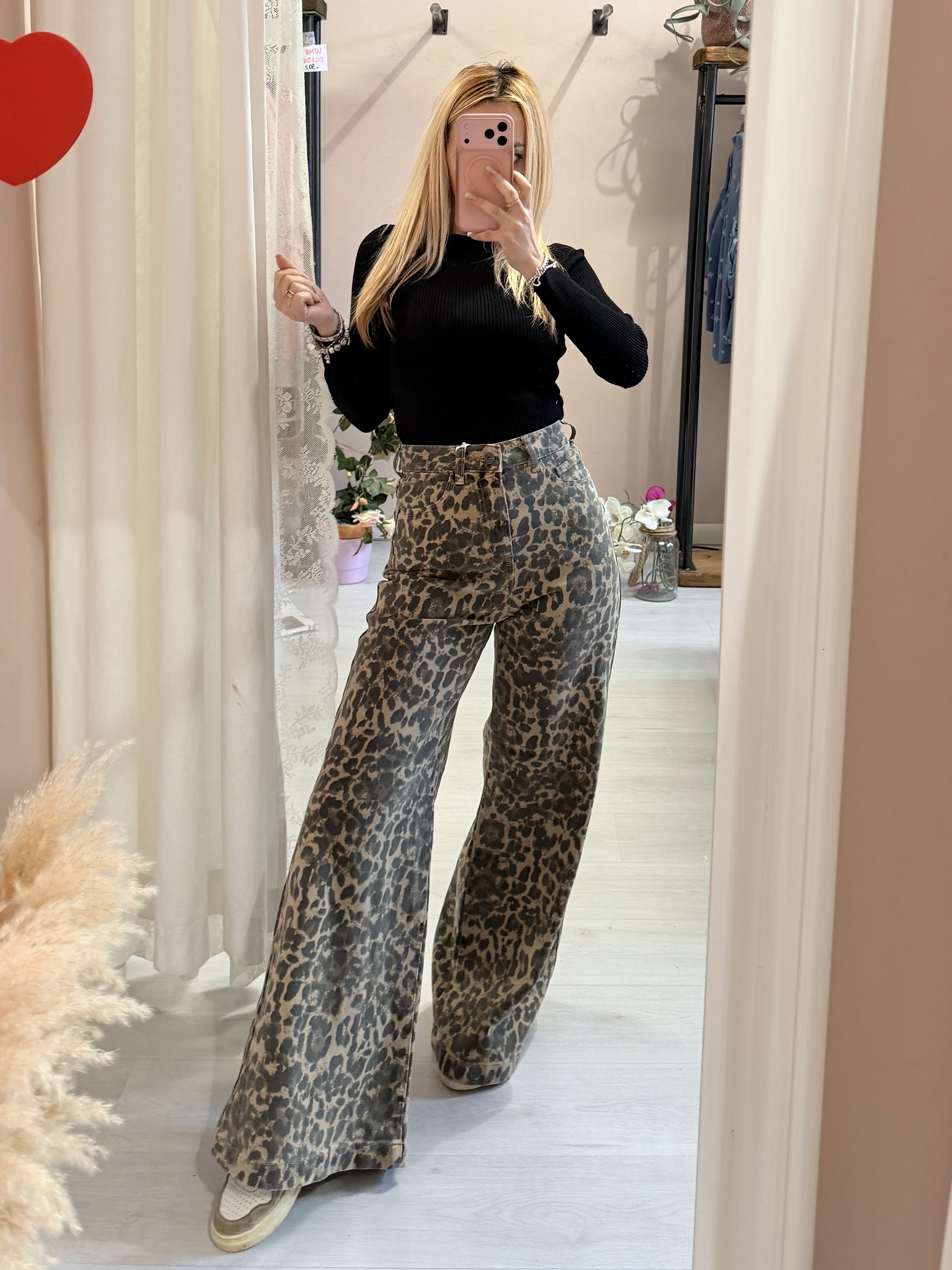 Jeans leopardati a palazzo