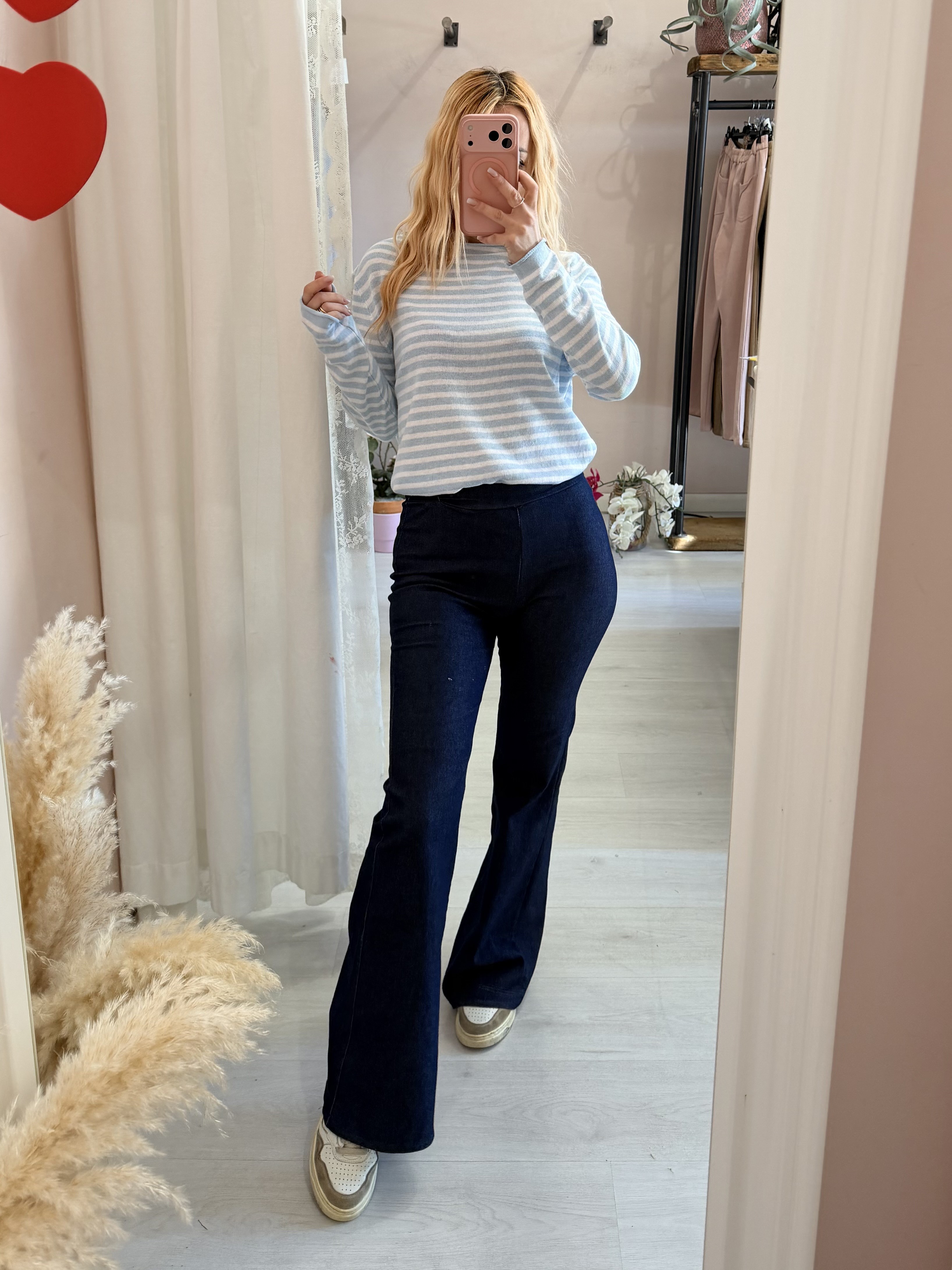 Pantaloni in tessuto tipo jeans leggero, super comodi e bellissimi! Senza bottoni ne cerniere hanno l'elastico in vita e sono elastici!