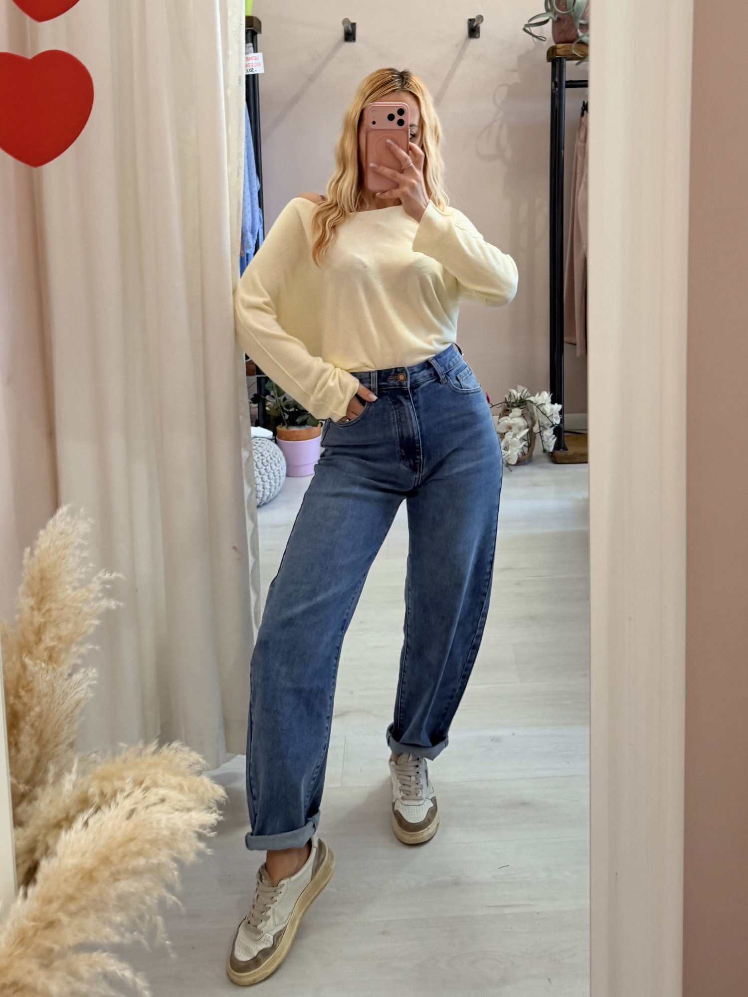 I jeans balloon sono un modello di tendenza caratterizzato da una vita alta, una vestibilità ampia su fianchi e cosce e un fondo che si restringe,