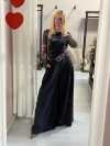 Maglia fantasia nera e marrone, in tessuto tulle con foderina in viscosa sotto